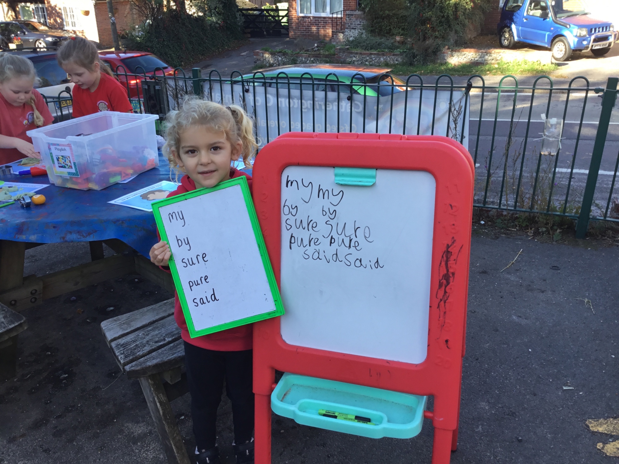 This afternoon, we had our first outdoor P.E lesson. We used balls and beanbags to practise our throwing and catching. 🏏