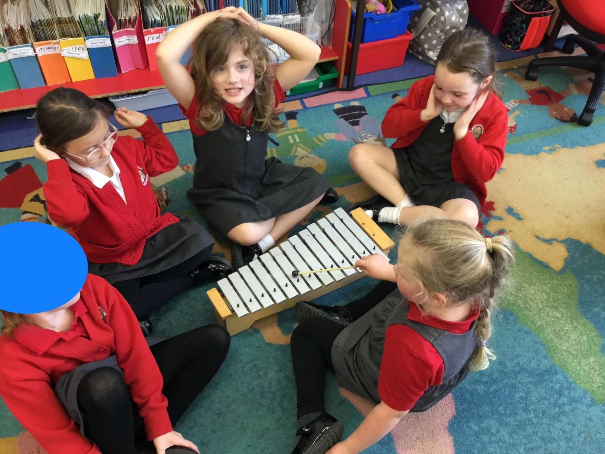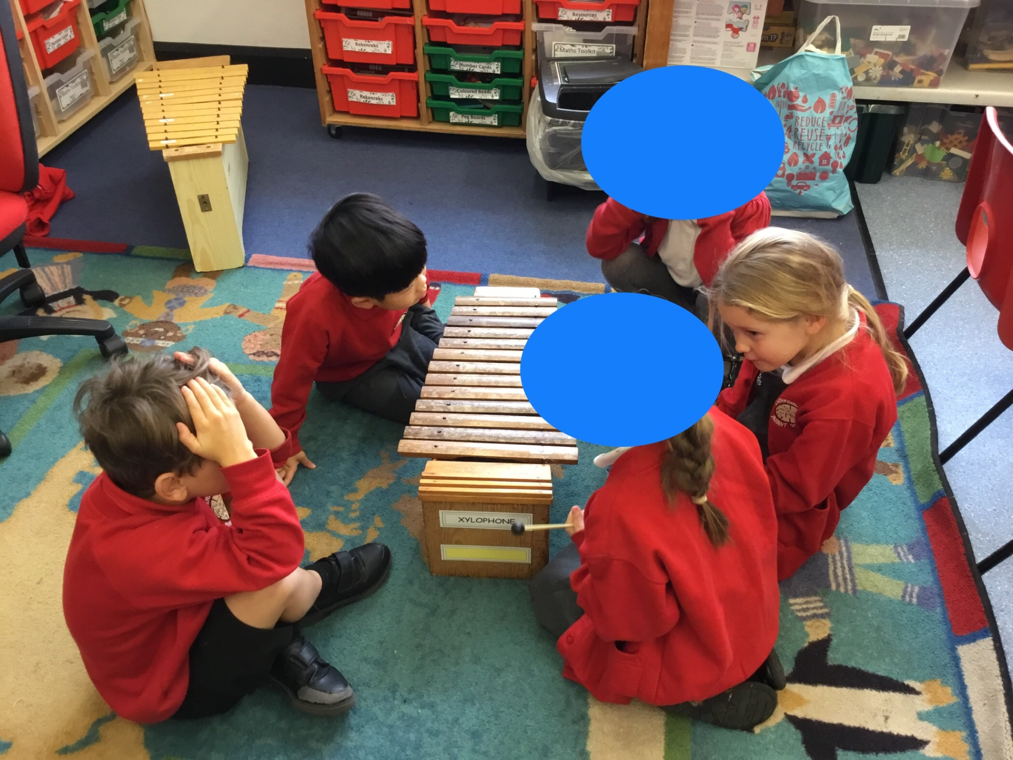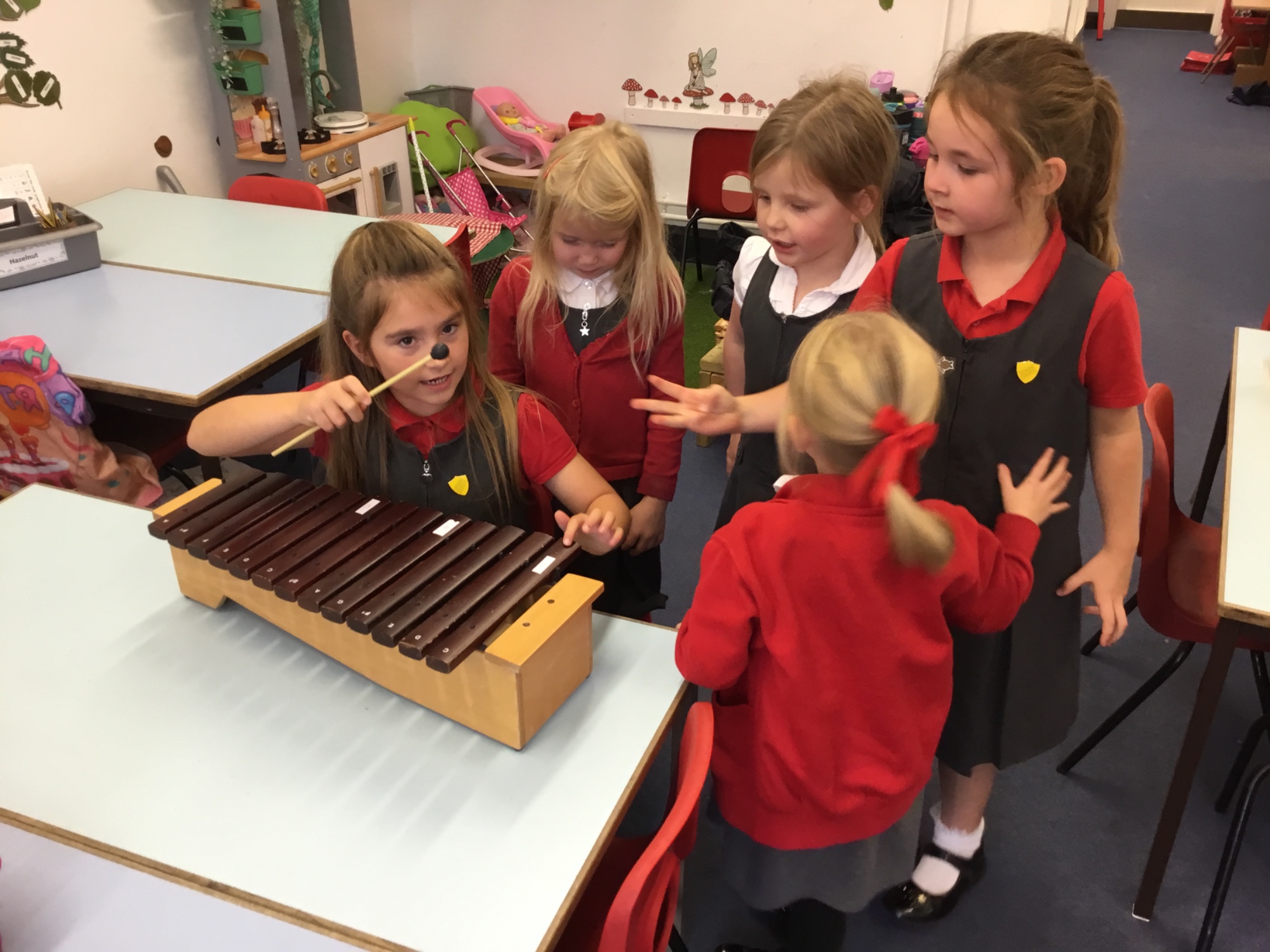 In music this week, Hazel class had lots of fun playing notes on the glockenspiels and xylophones. They were listening to low, middle and high sounds played using low C, middle G and high C. They then played a little game in small groups. They had to listen carefully to the notes played by one group member and put their hands on their head if they thought the notes was high C, on their tummies if the note was the middle G sound and on their toes if they thought it was the low C.