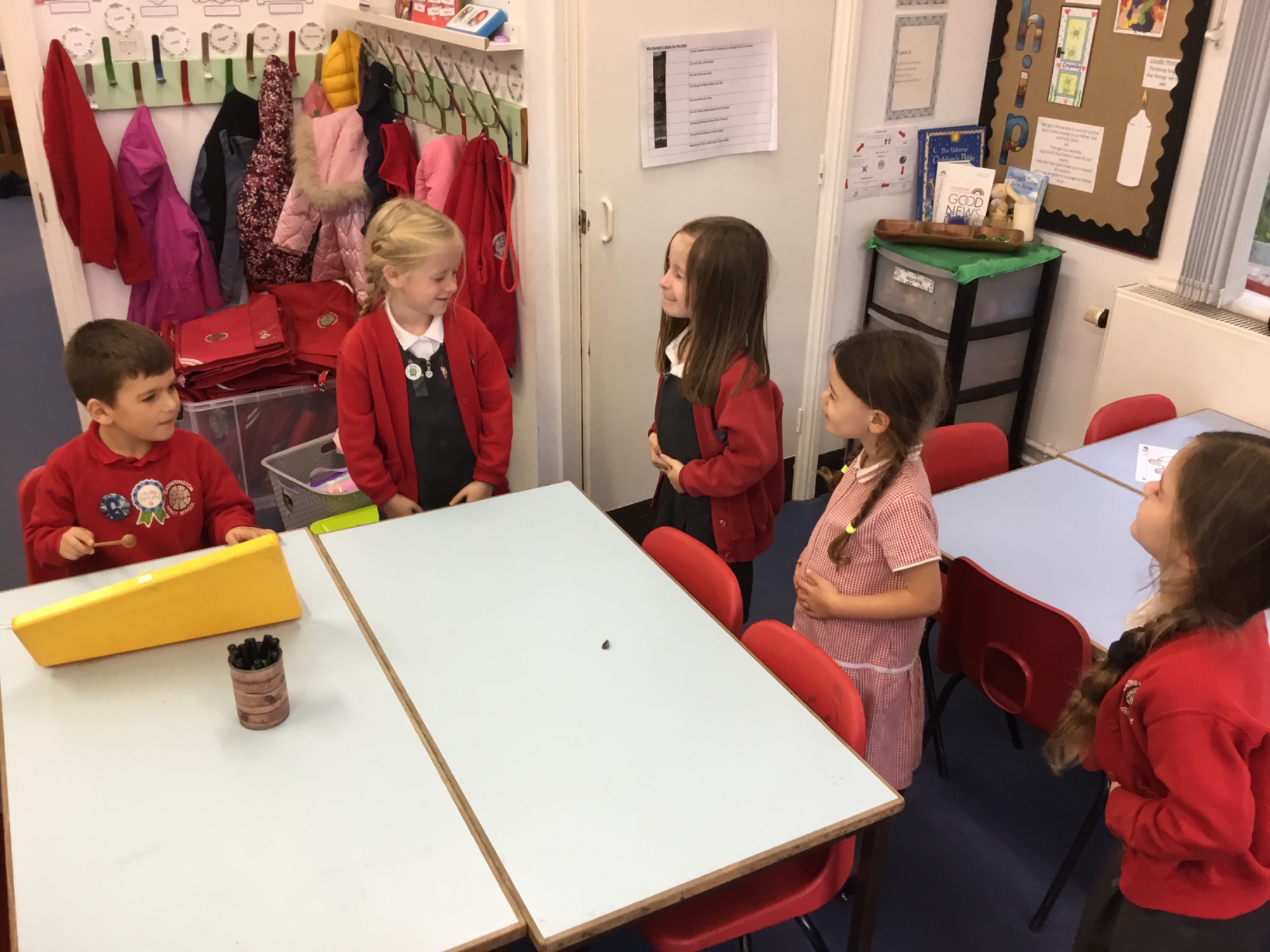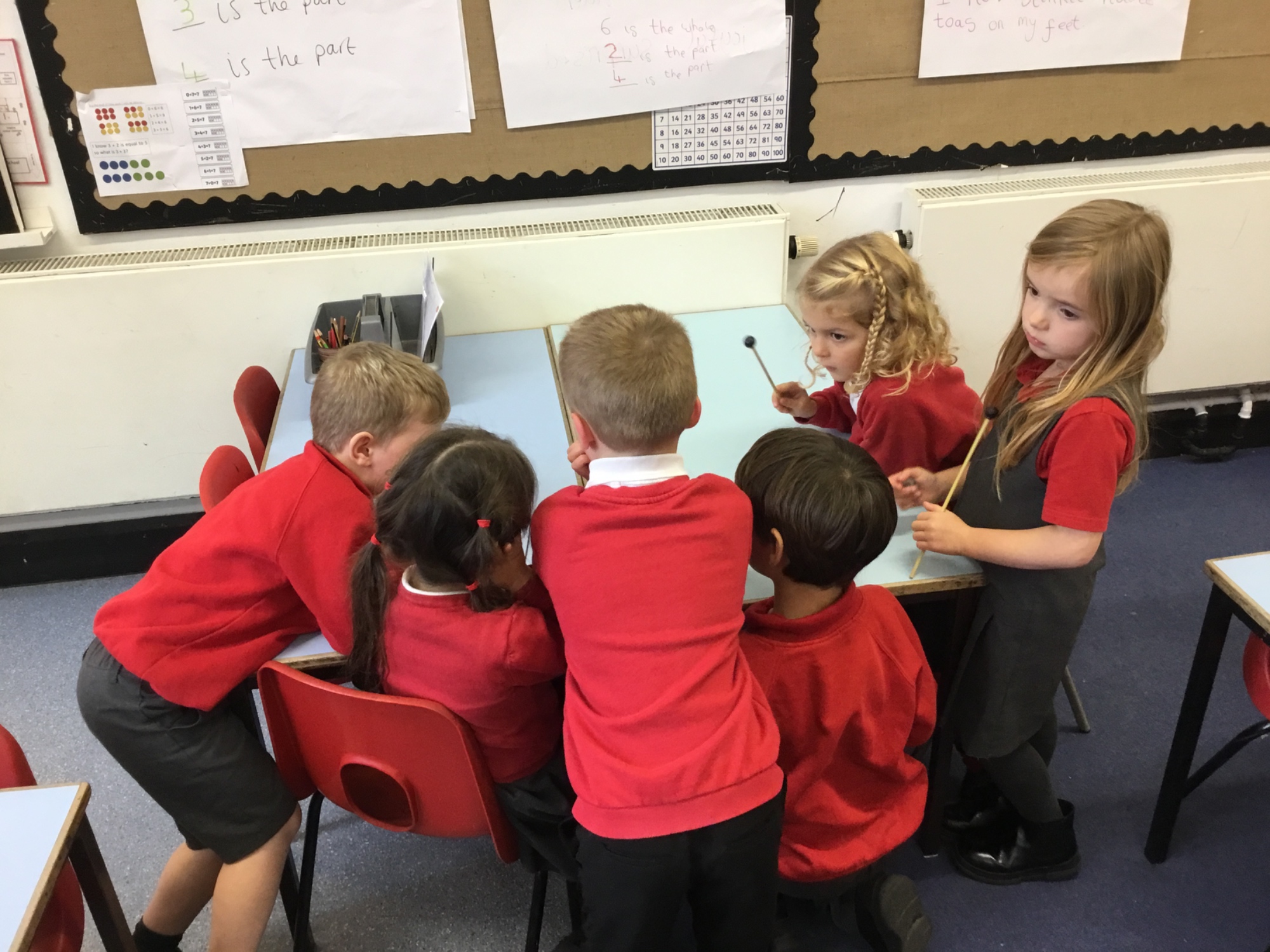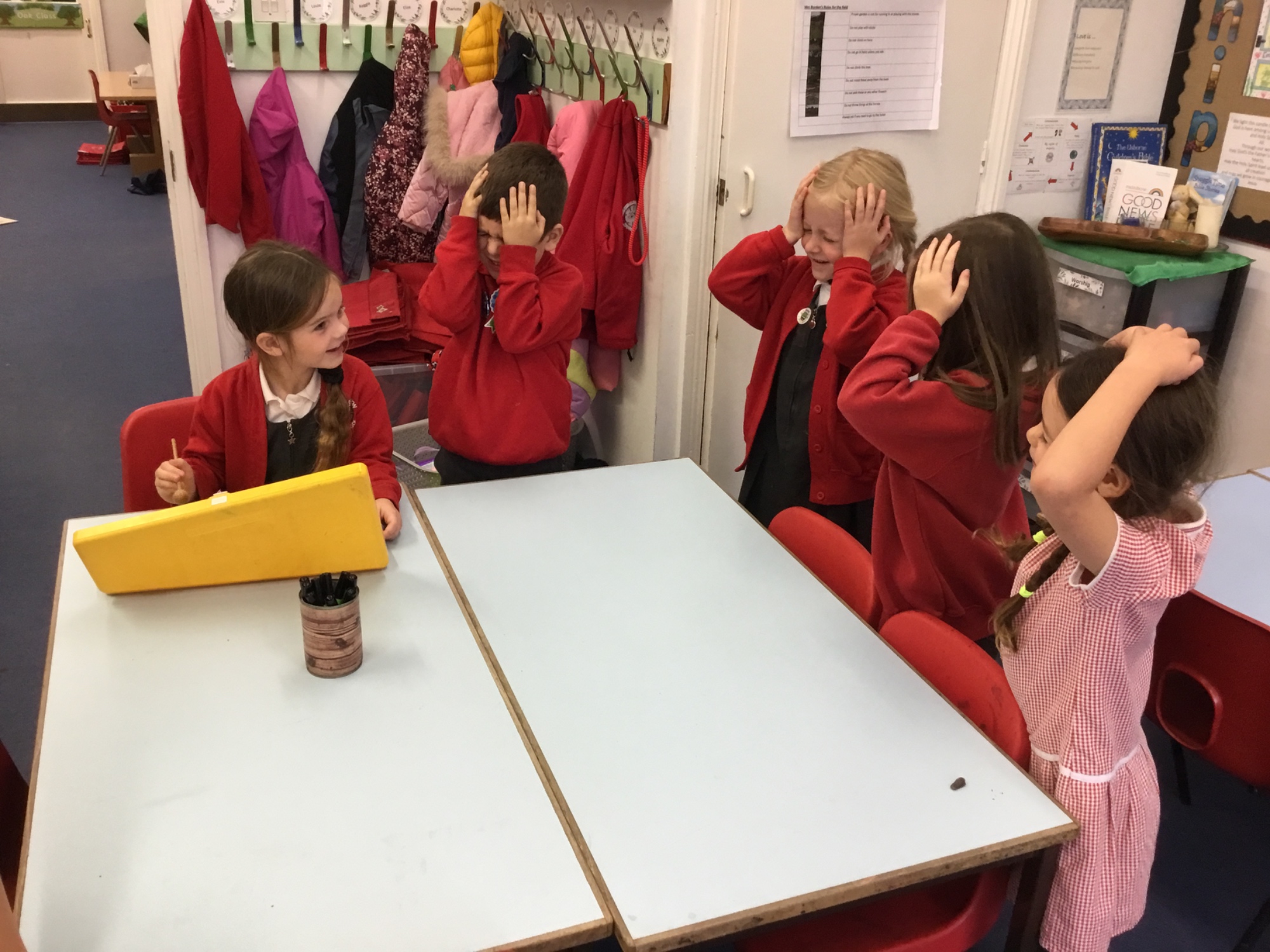 In music this week, Hazel class had lots of fun playing notes on the glockenspiels and xylophones. They were listening to low, middle and high sounds played using low C, middle G and high C. They then played a little game in small groups. They had to listen carefully to the notes played by one group member and put their hands on their head if they thought the notes was high C, on their tummies if the note was the middle G sound and on their toes if they thought it was the low C.
