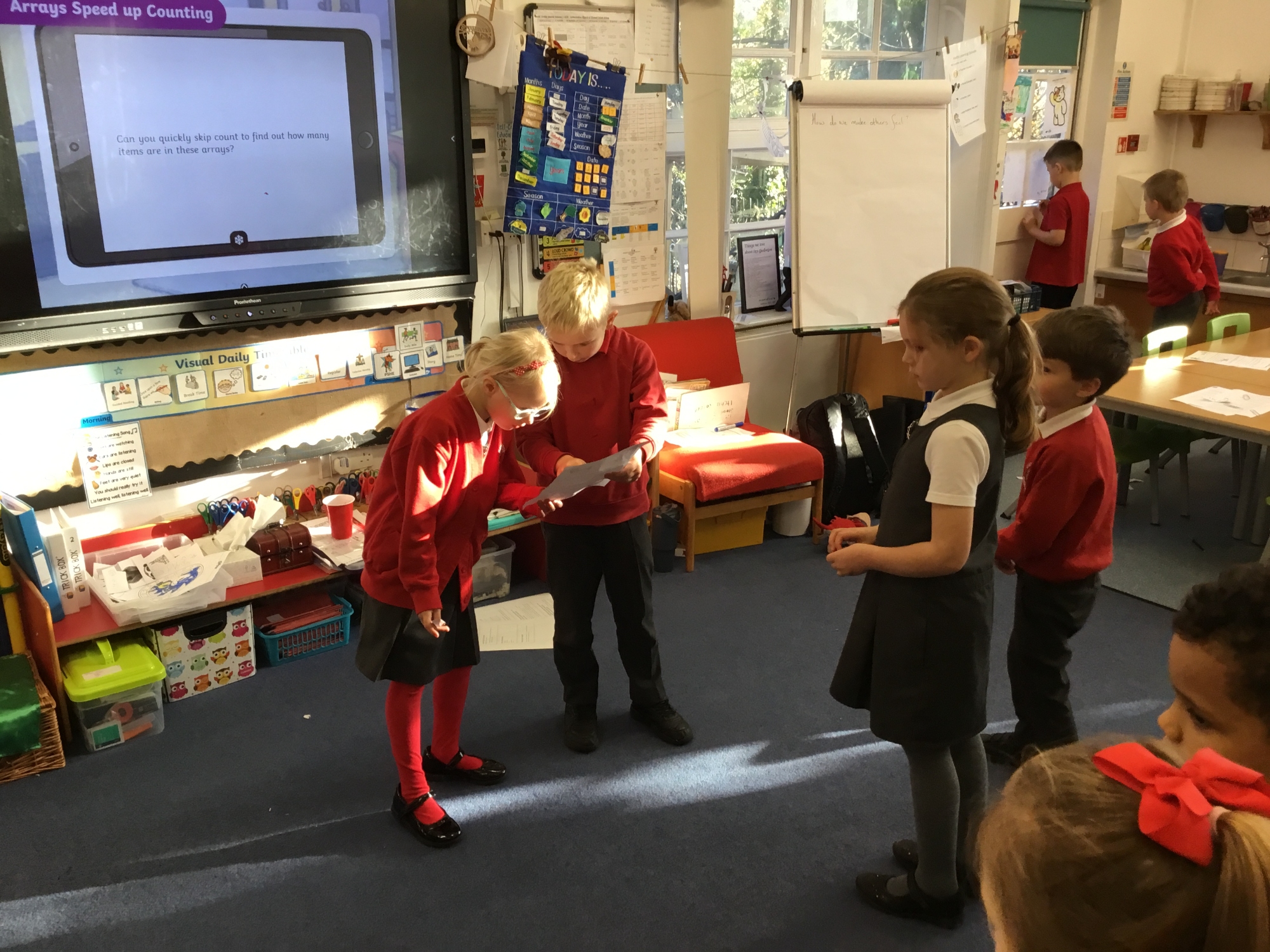 In maths this week we learnt about arrays. We started the week by looking at arrays in our everyday environment and built up to solving problems by creating our own arrays.