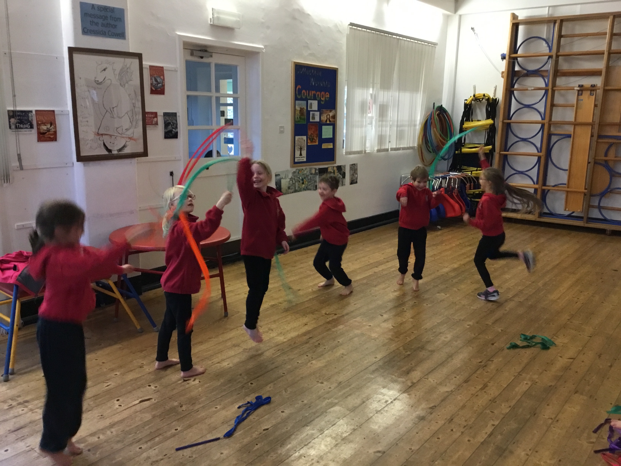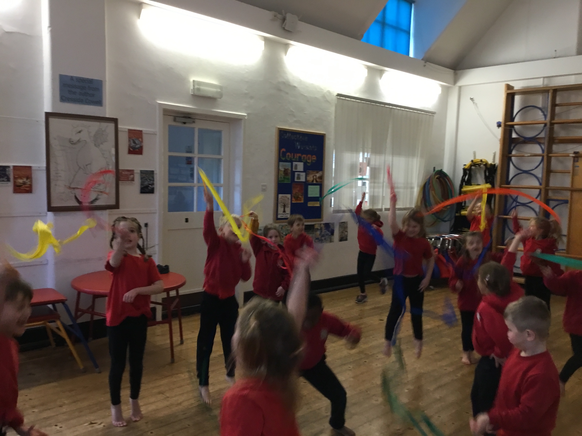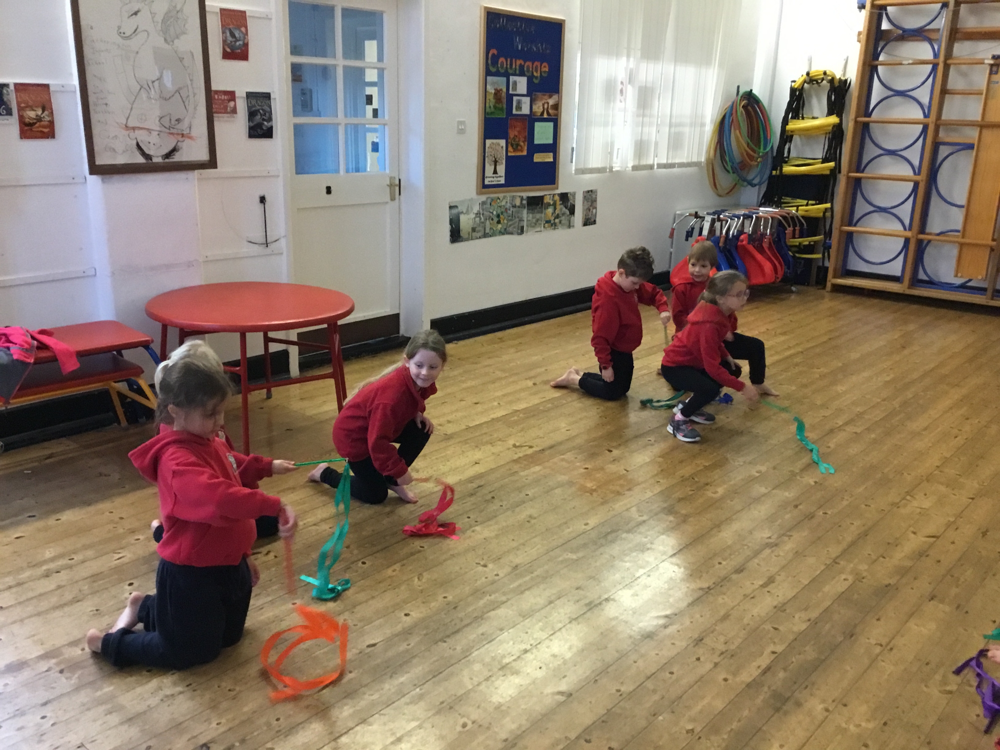 This week the children learnt the need to make their dance moves bigger when introducing the use of rhythmic ribbons. The children created their own dance movements to represent the fire and smoke from the Great Fire of London and worked together to create a choreographed dance with the ribbons.