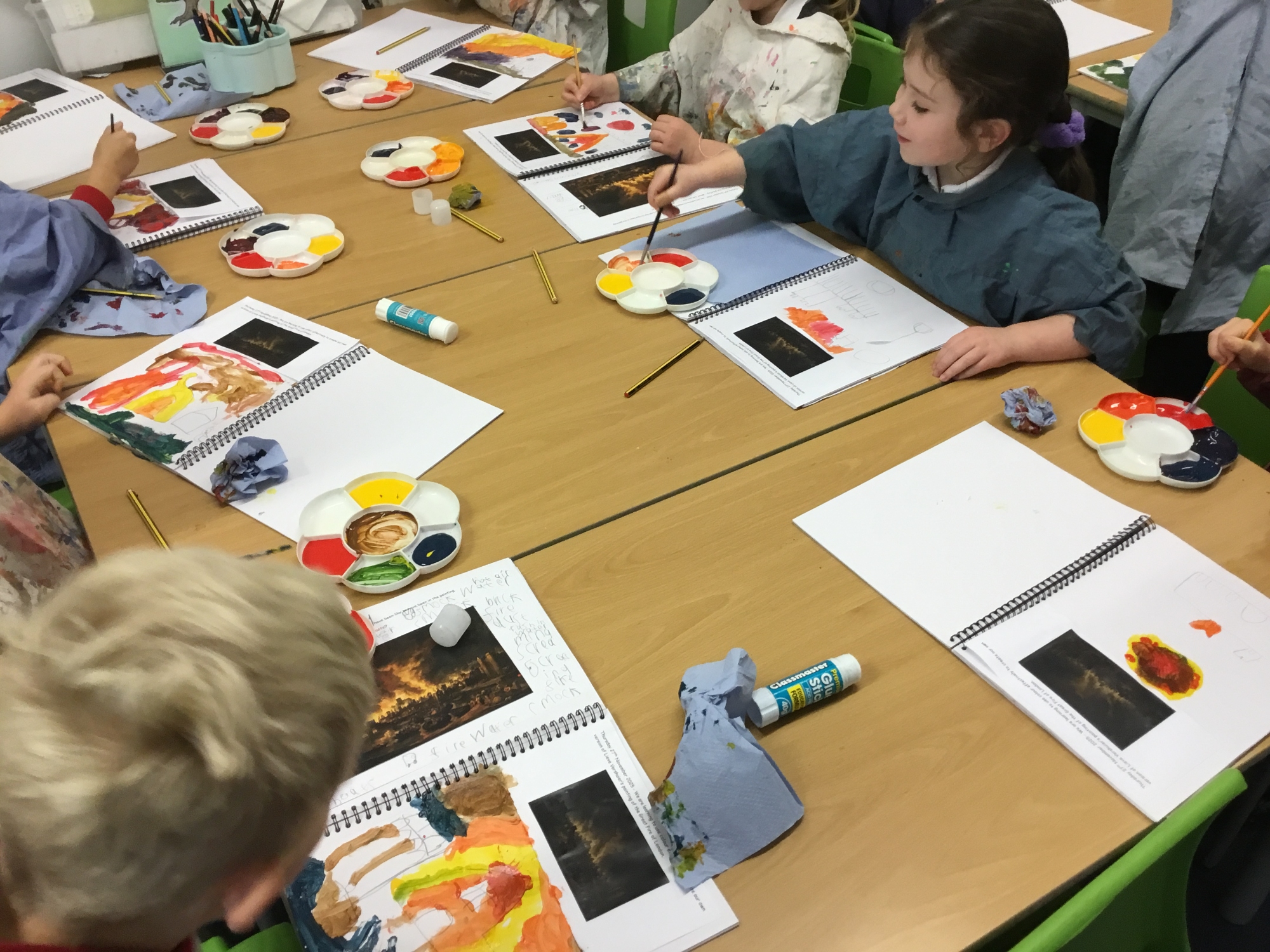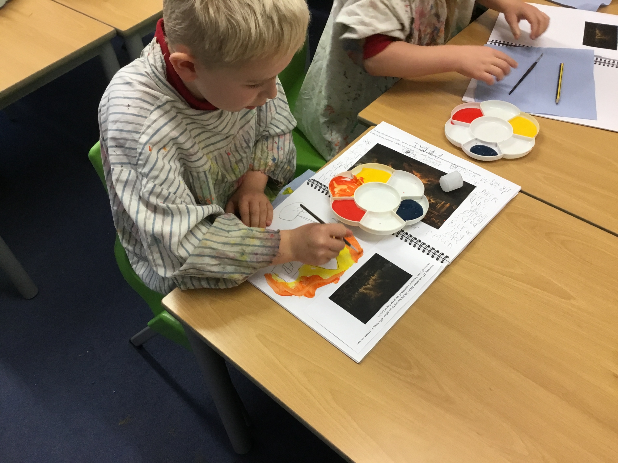 This week, the children used their knowledge of colour mixing to recreate their own versions of Lieve Verschuier's painting of The great Fire of London.