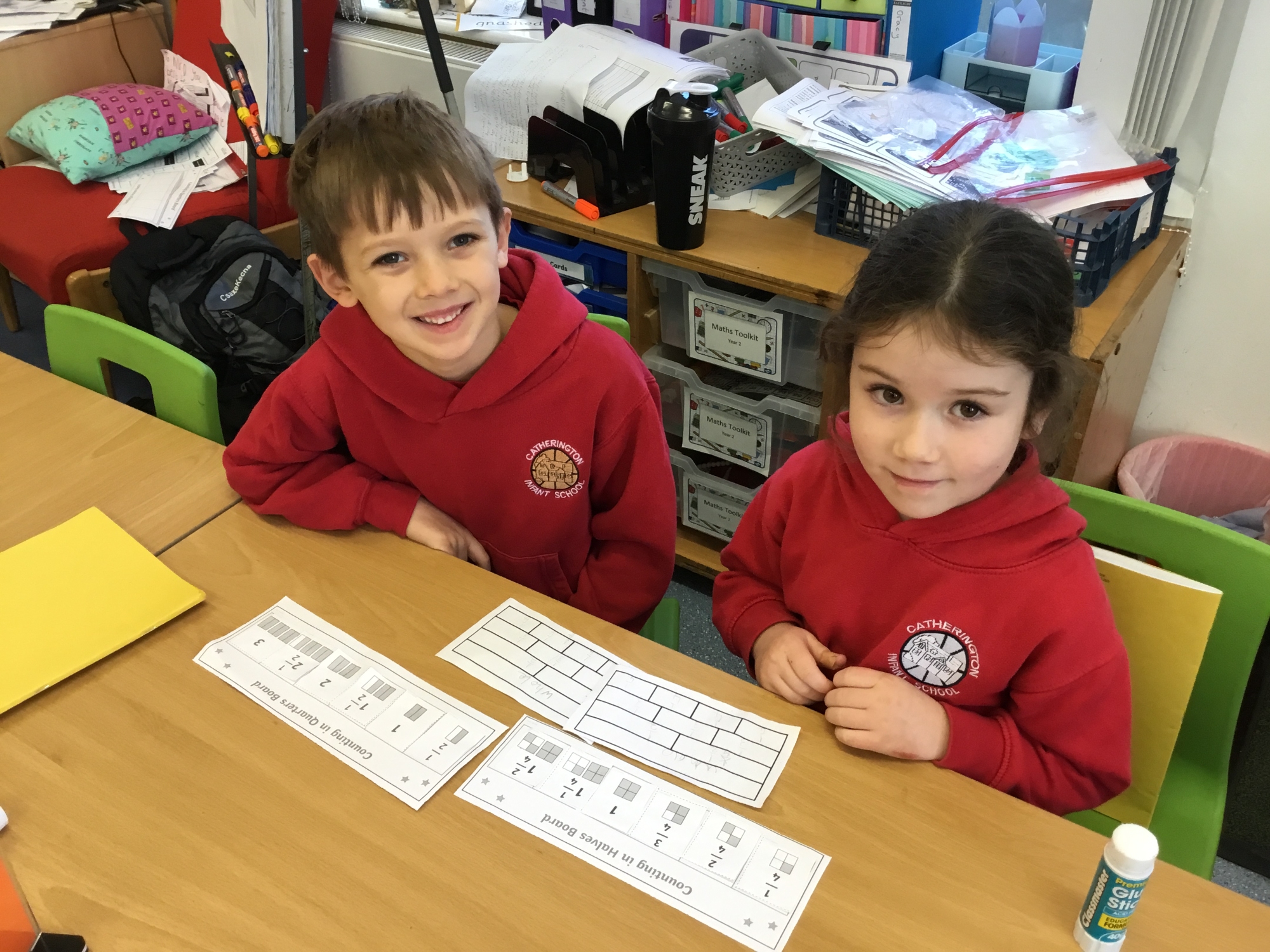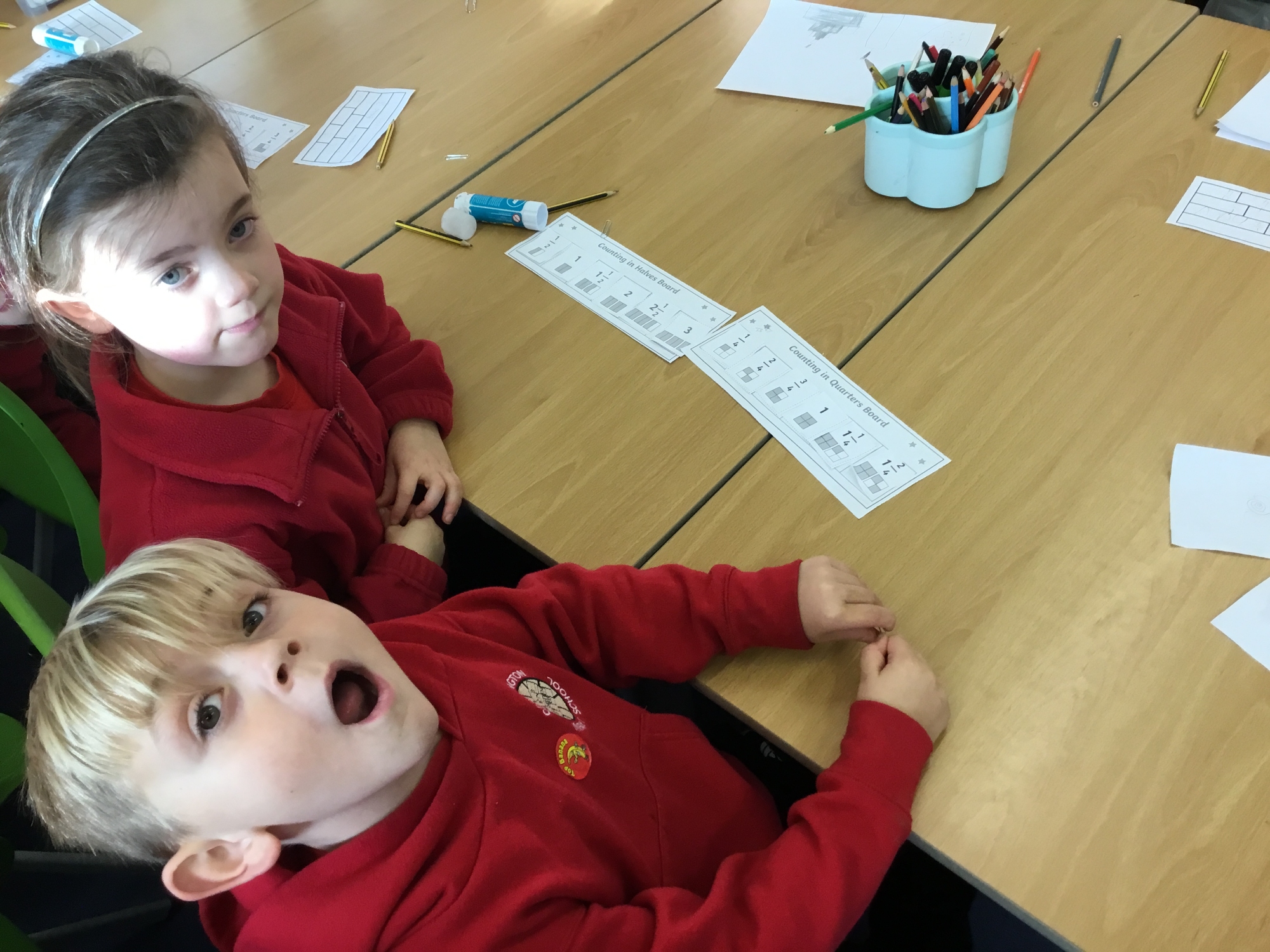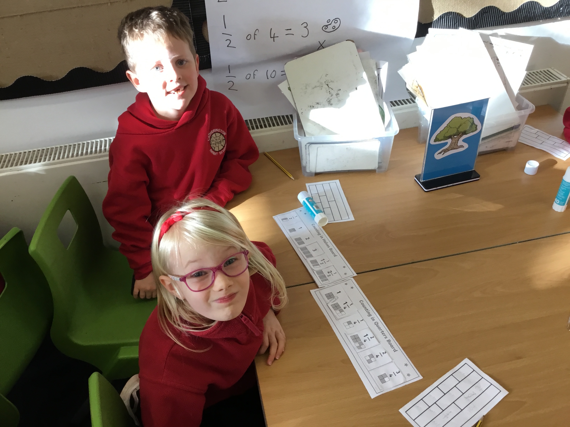This week in maths, we have been developing our knowledge of fractions by learning about lines of symmetry and dividing shapes into halves and quarters. At the end of the week, the children looked at how fractions relate to each other by counting in fractions.