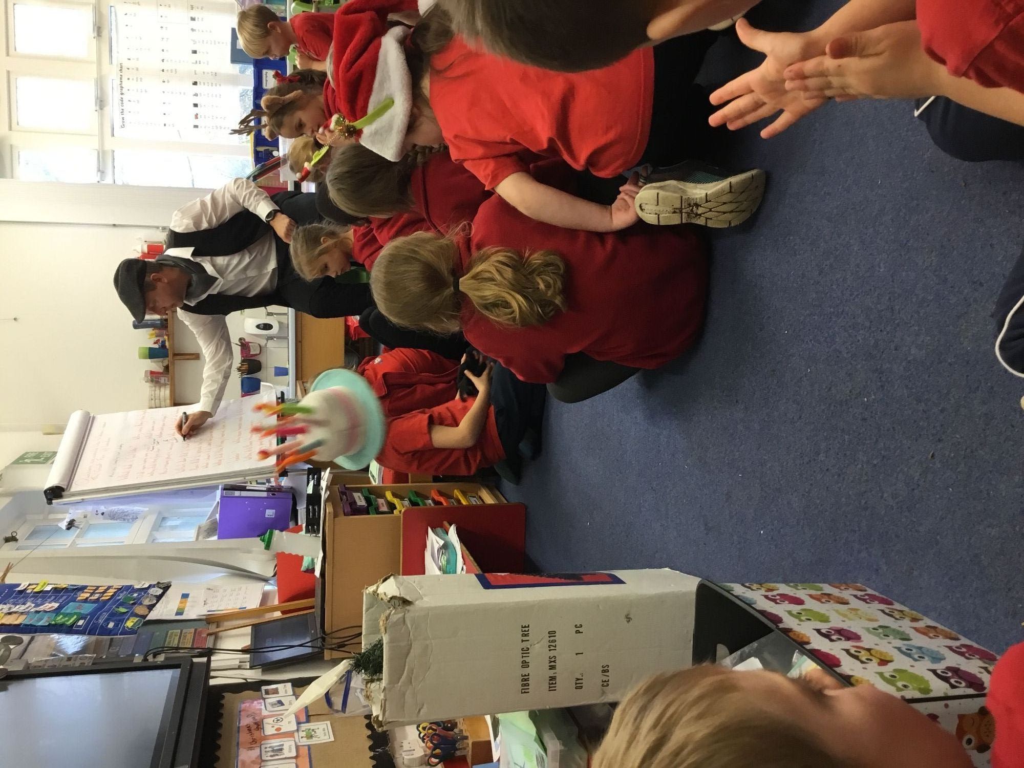 On Friday morning, we had a lovely surprise visit from Father Christmas, who asked us whether we had been good and what we would like to get for Christmas.