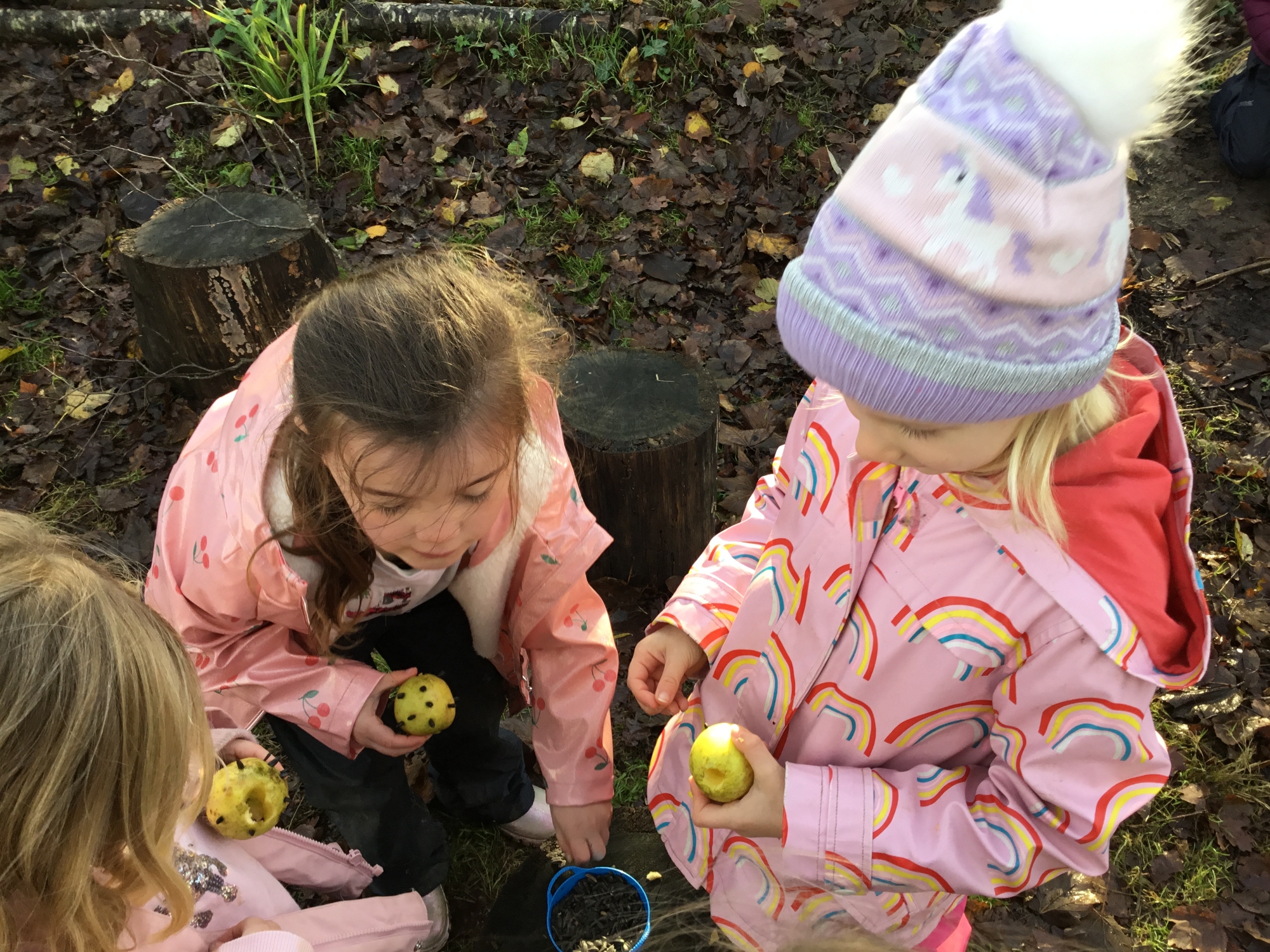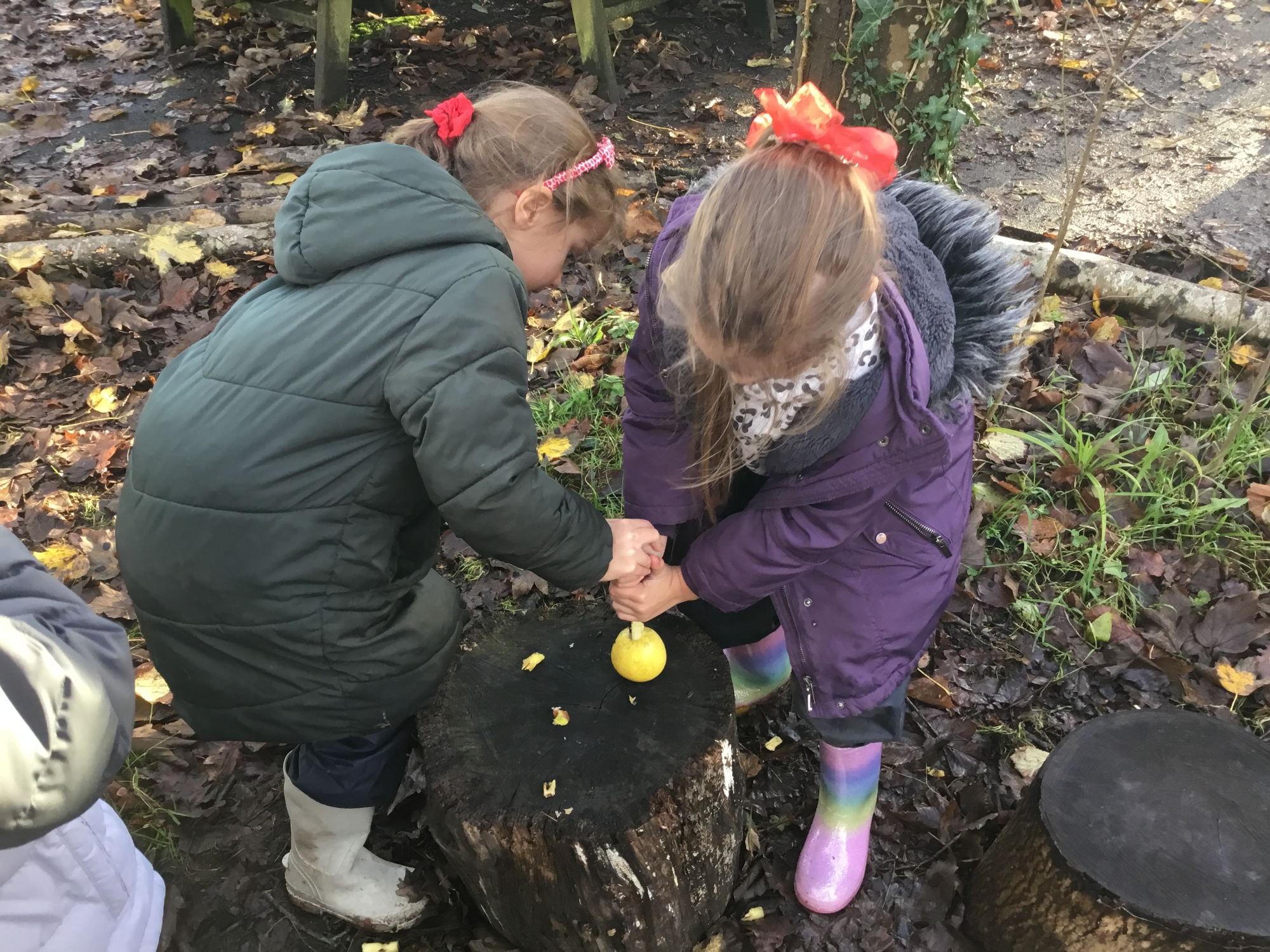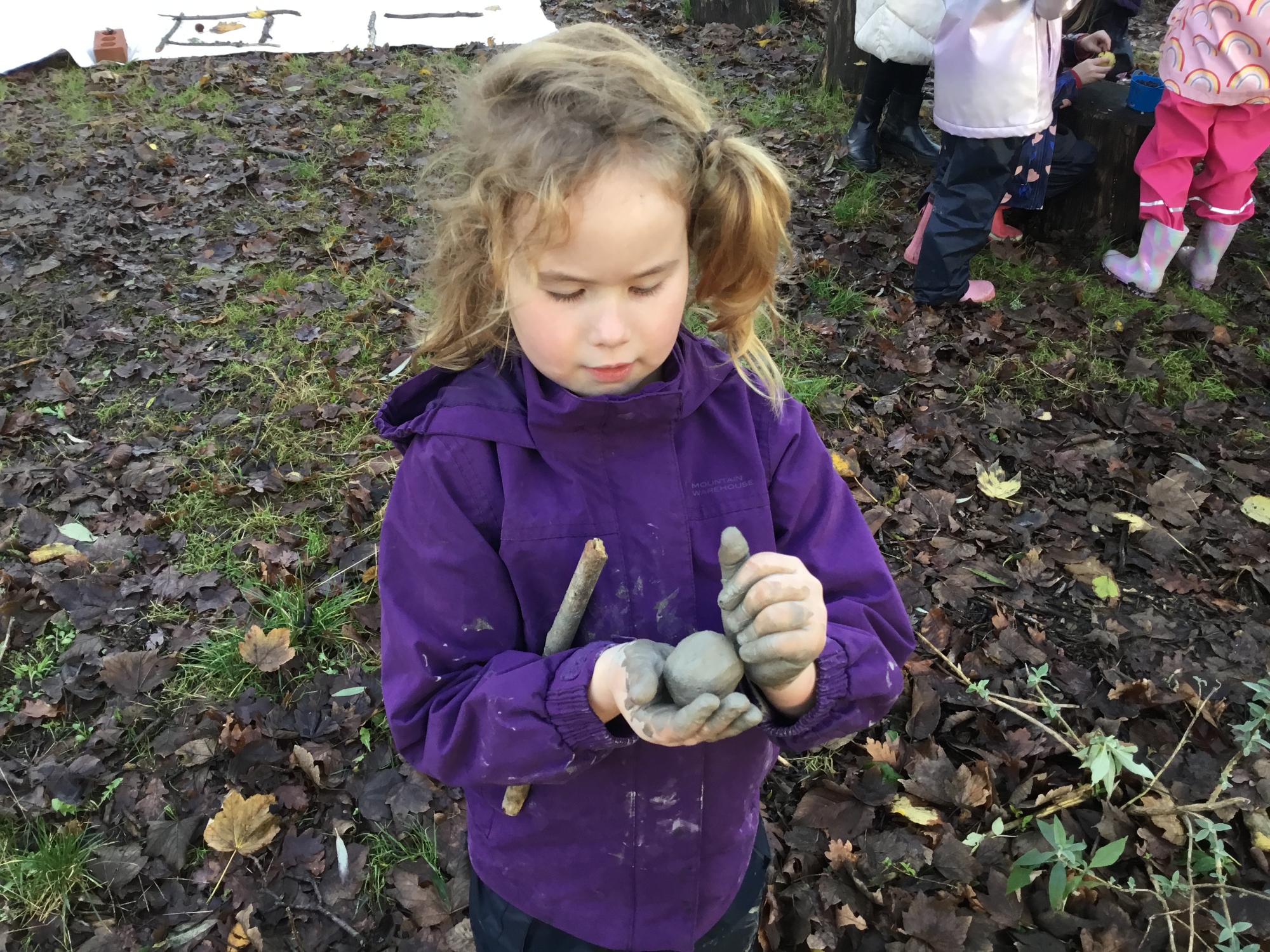 This week in forest school the children enjoyed being creative in the natural environment by making natural bird feeders, creating art portraits and their own obstacle courses.