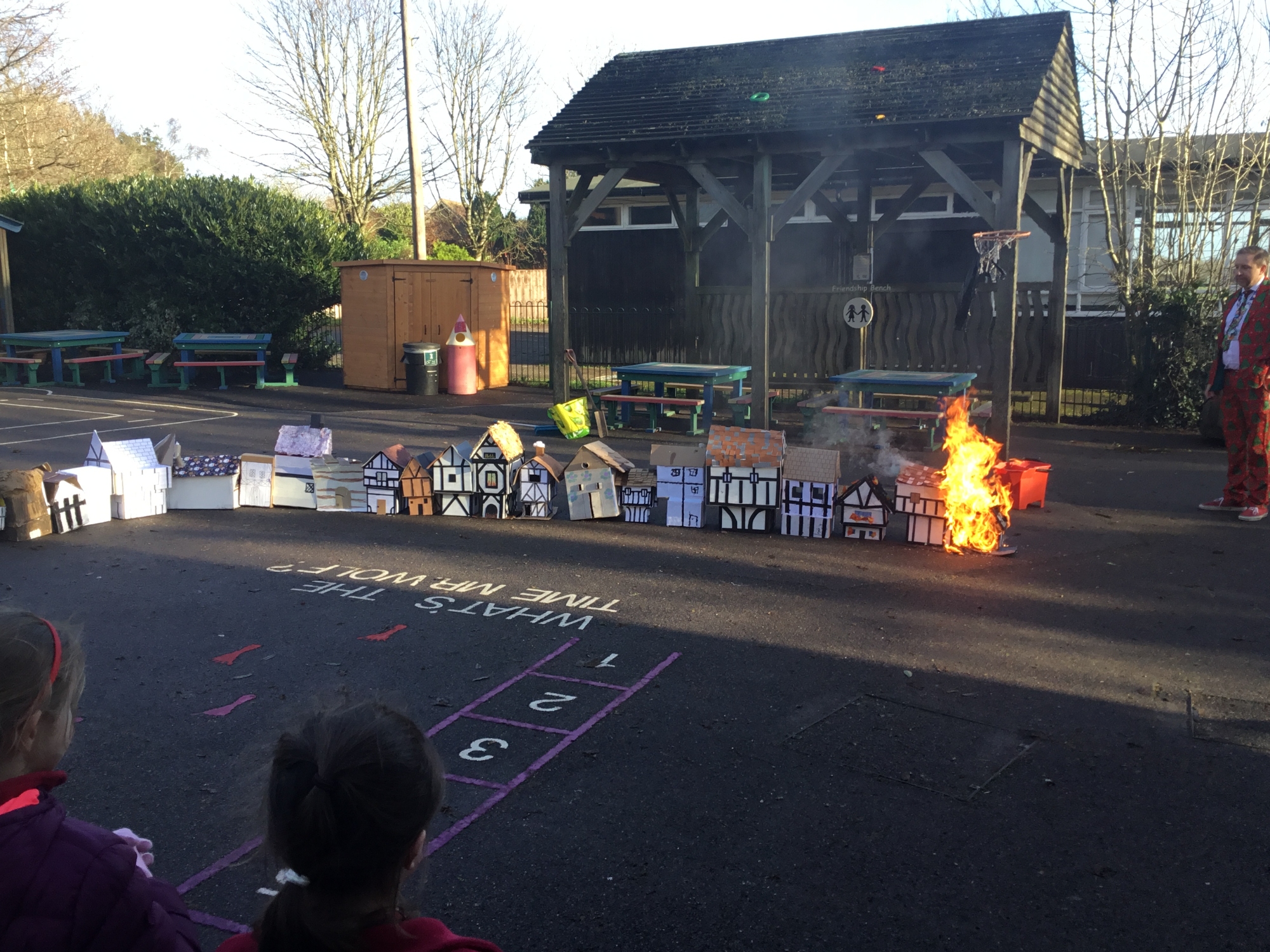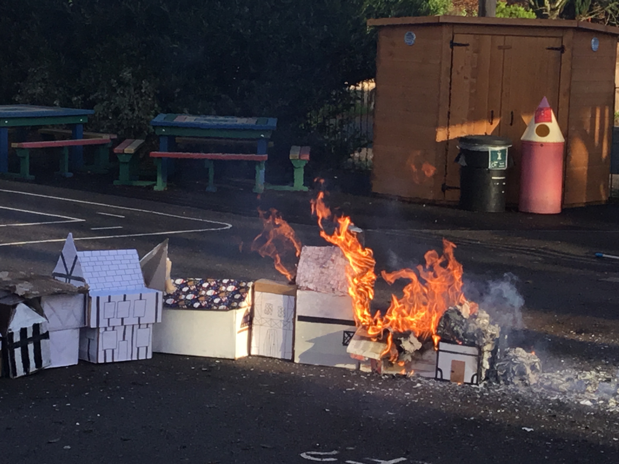 This week the children shared their amazing Tudor houses they made for the Great Fire of London. Thank you for supporting the children with this homework. We created a mini city for the rest of the school to walk round and admire before recreating the fire at the end of the week.