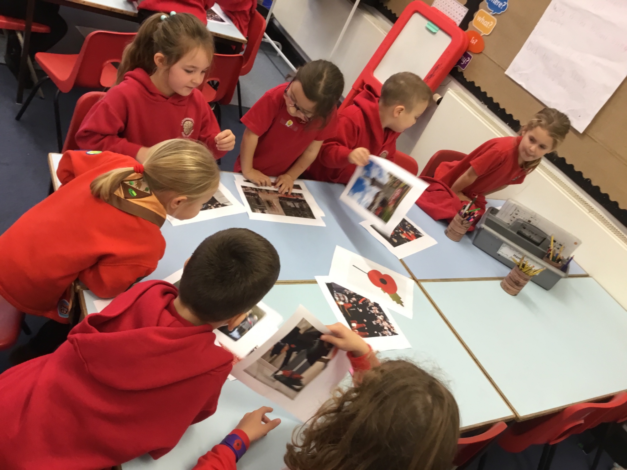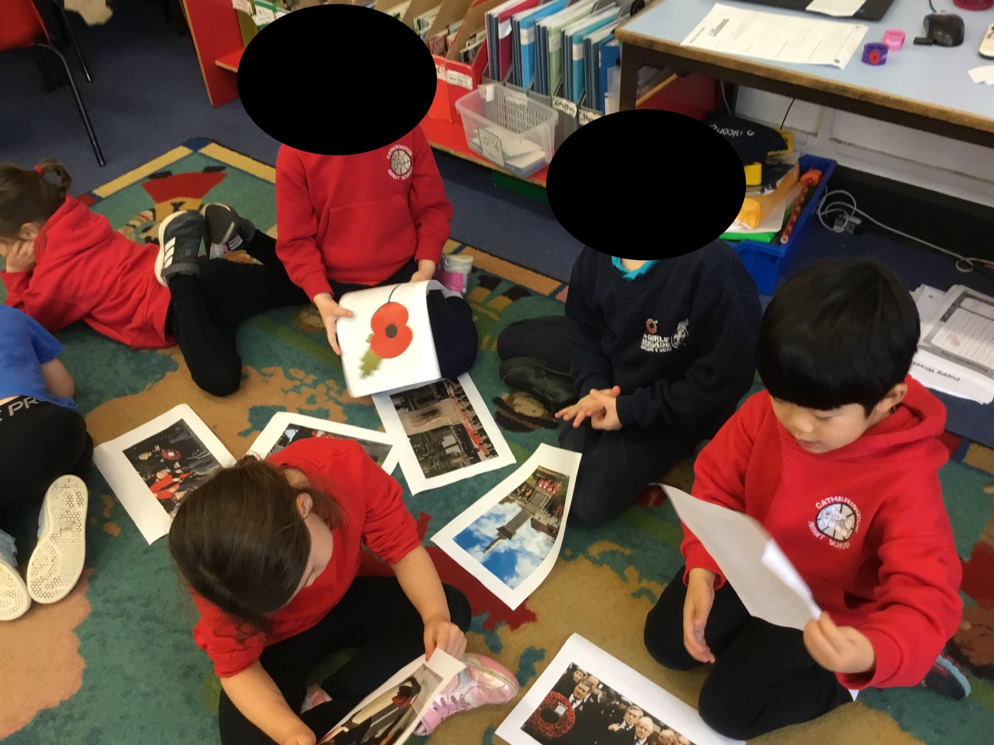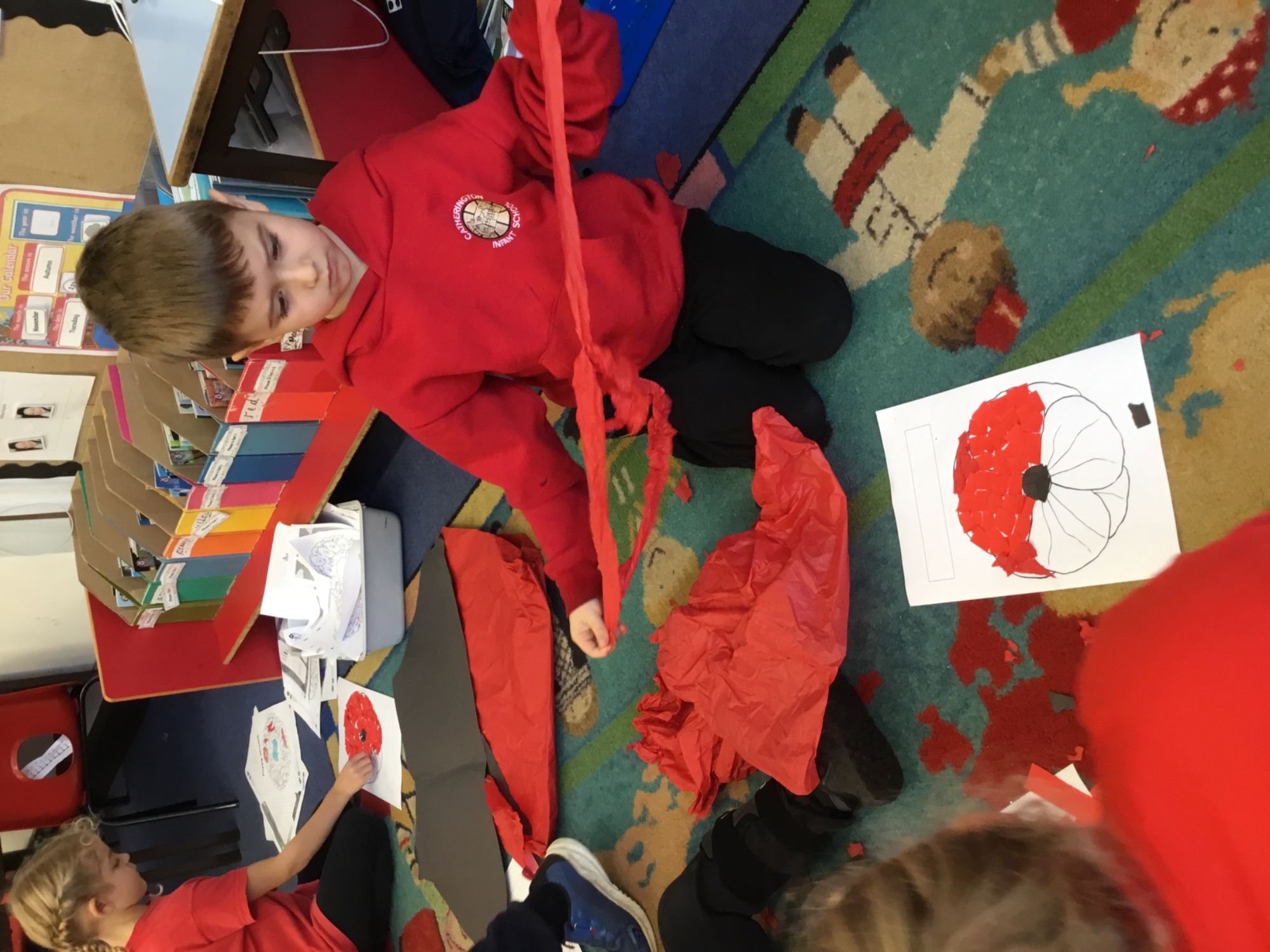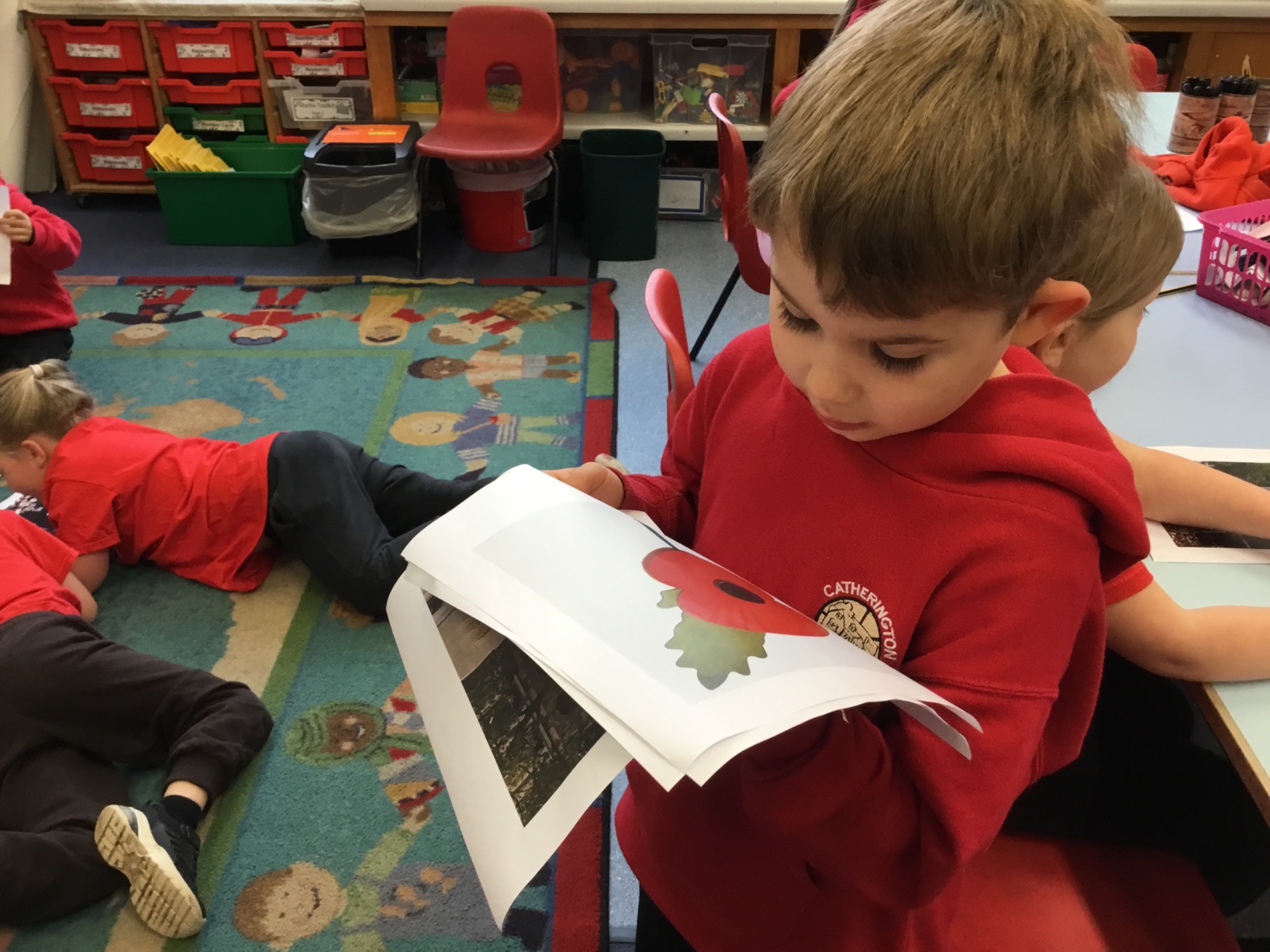 Remembrance day. Today we learnt about the people who have died in World War One who lived in Catherington. We learnt about how people show respect on Remembrance Sunday by wearing poppies, laying wreaths and donating to the Royal British legion. We reflected on the courage these men would have shown and how much love they had to keep us safe today. We looked at the names of the men who died and talked about the huge loss of life. After learning about the Lytch gate, we walked to the church to find the names and show our respects by remembering them. The children also painted some lovely cards and made some poppies using collage. At 11, we joined the rest of the school in a two minutes silence.