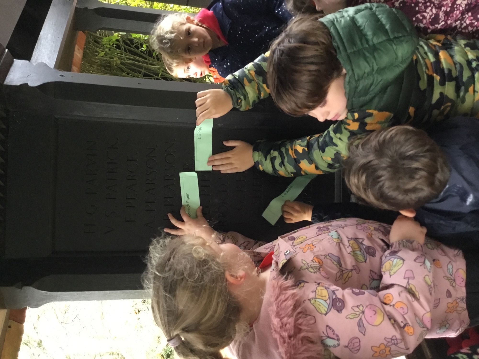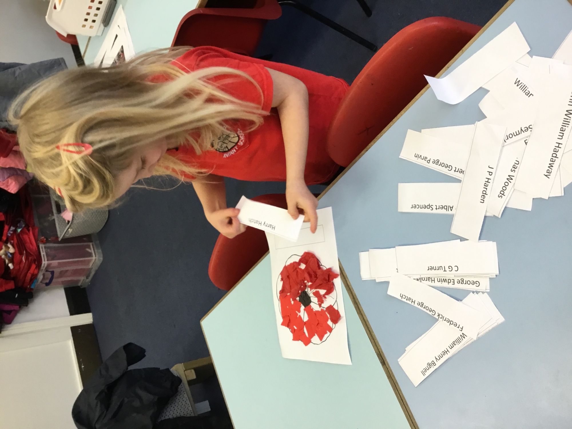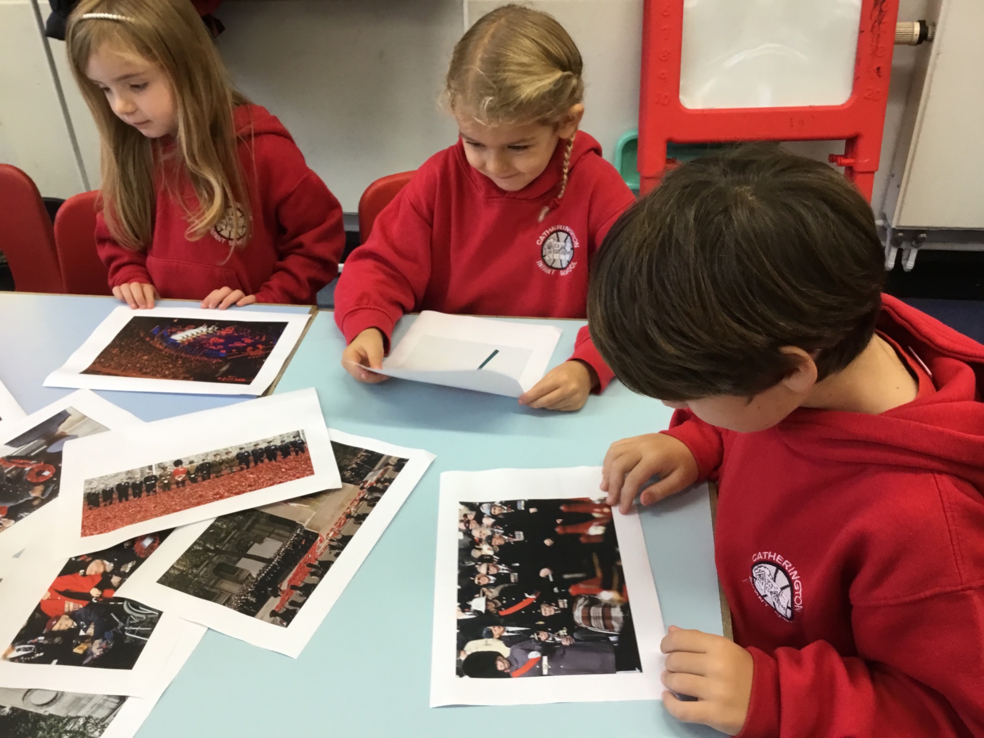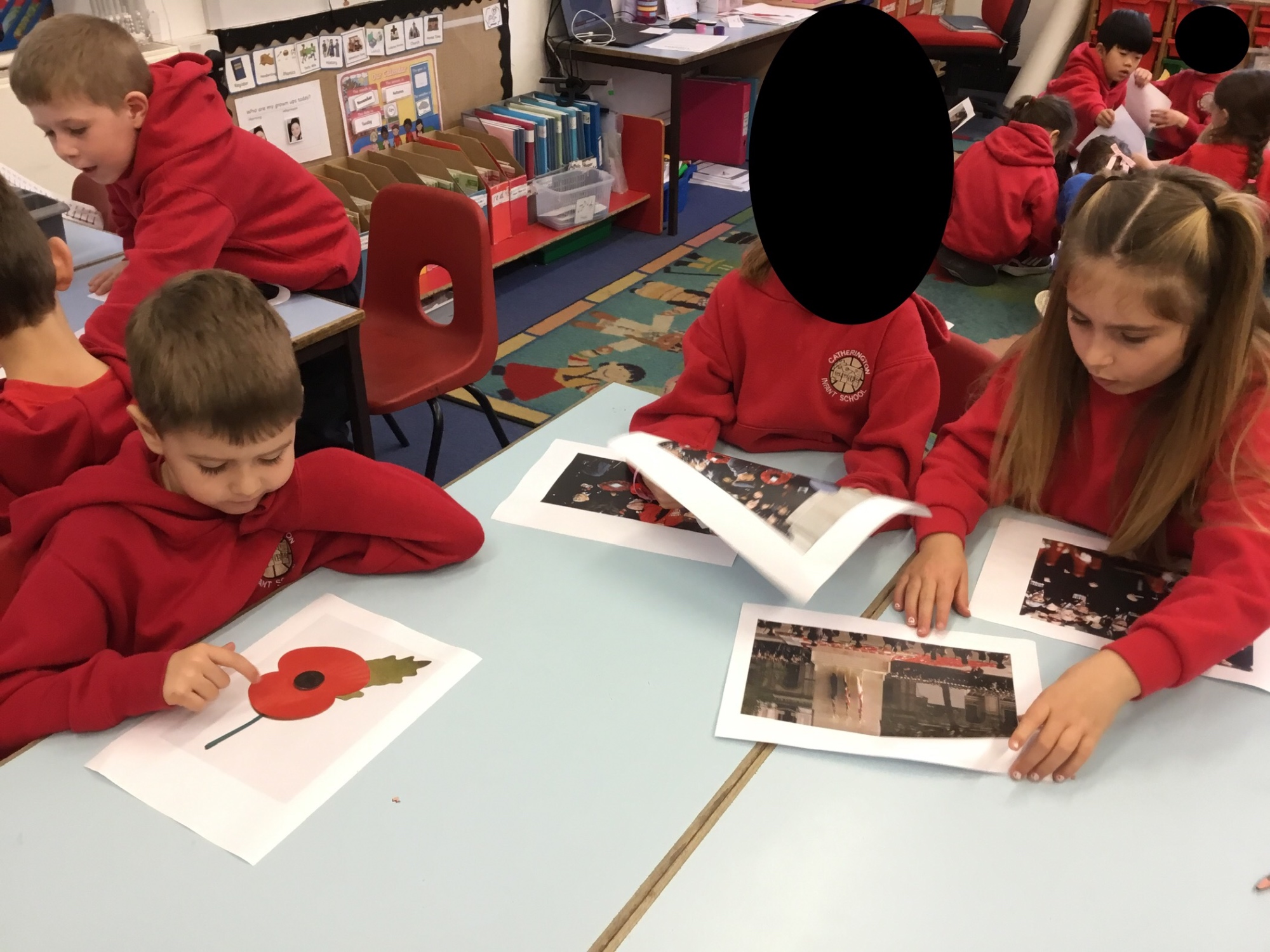 Remembrance day. Today we learnt about the people who have died in World War One who lived in Catherington. We learnt about how people show respect on Remembrance Sunday by wearing poppies, laying wreaths and donating to the Royal British legion. We reflected on the courage these men would have shown and how much love they had to keep us safe today. We looked at the names of the men who died and talked about the huge loss of life. After learning about the Lytch gate, we walked to the church to find the names and show our respects by remembering them. The children also painted some lovely cards and made some poppies using collage. At 11, we joined the rest of the school in a two minutes silence.