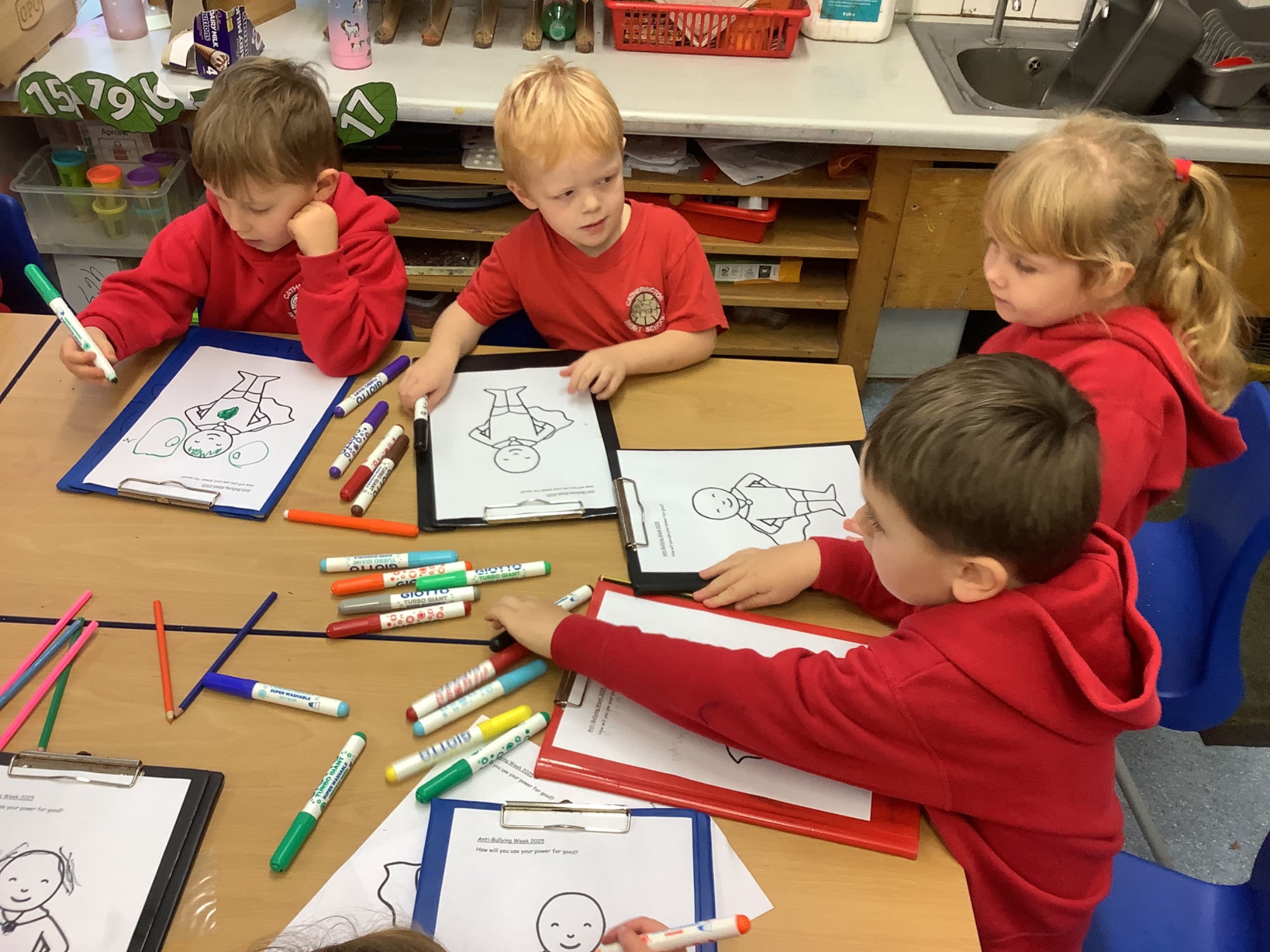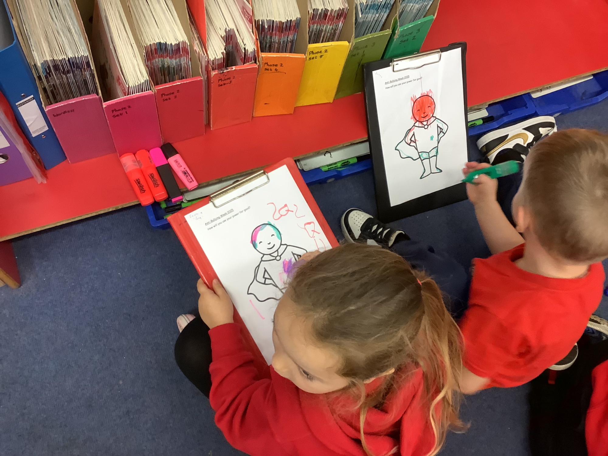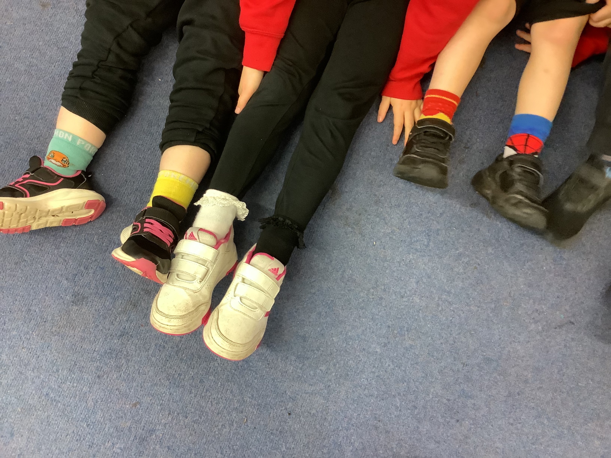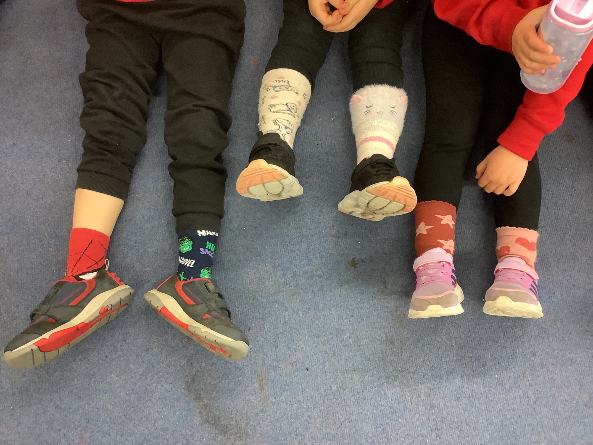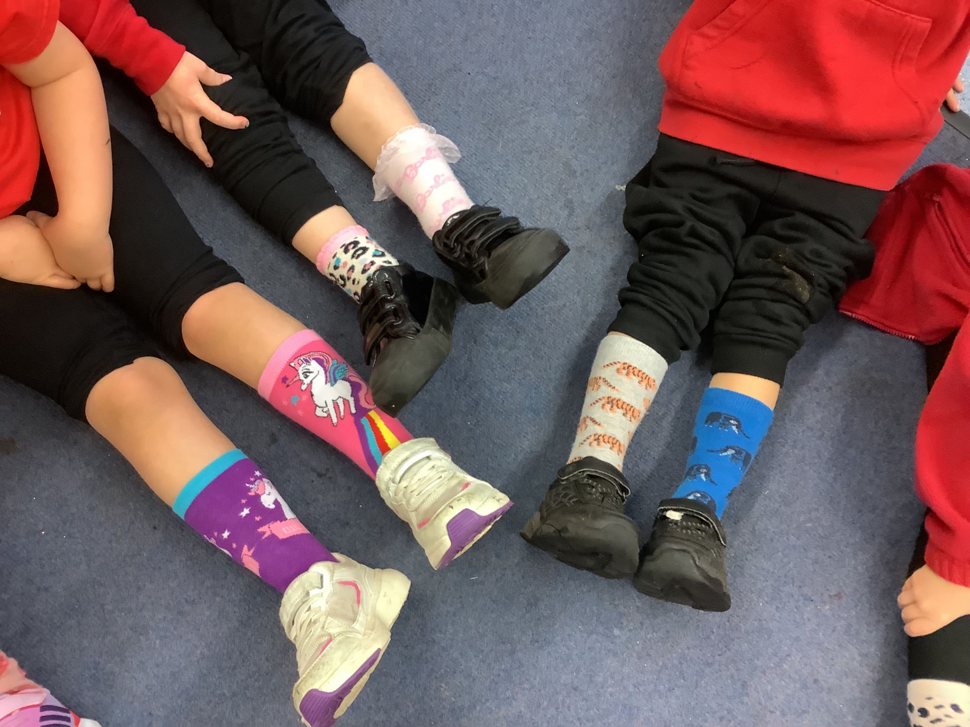 Monday - Anti-bullying Day. Today we thought about how to be kind to others. We reflected on how similar and different we all are and celebrated differences by wearing odd socks. We learned how important it is to speak up if we see someone being unkind and thought about what our superpowers are (listening, being loving, telling adults when we need help).