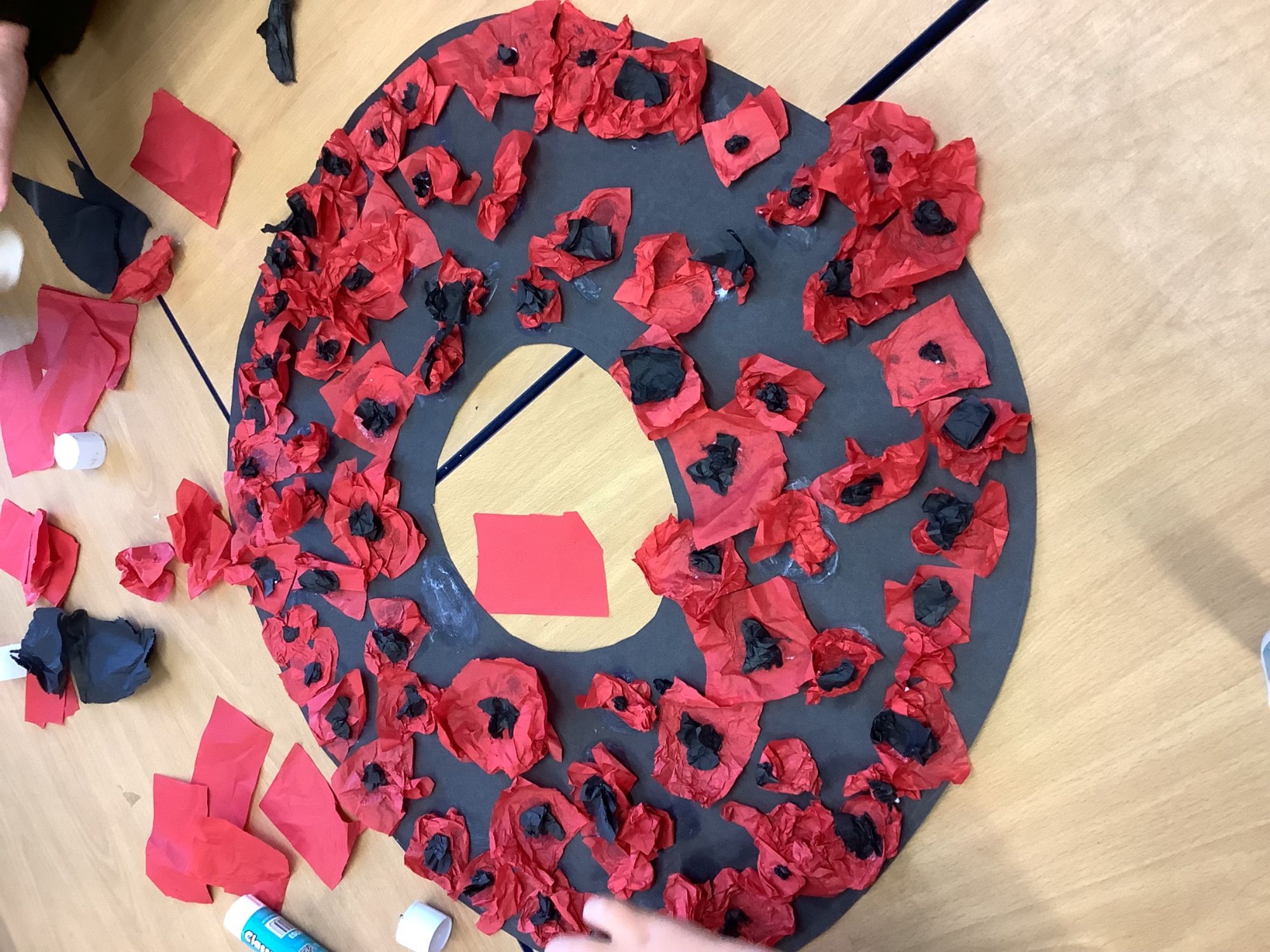 Tuesday - Remembrance Day. We found out why this day is such an important day and why it happens at the same time every year. We made poppy field pictures and a poppy wreath, which we laid at the local memorial on Friday.