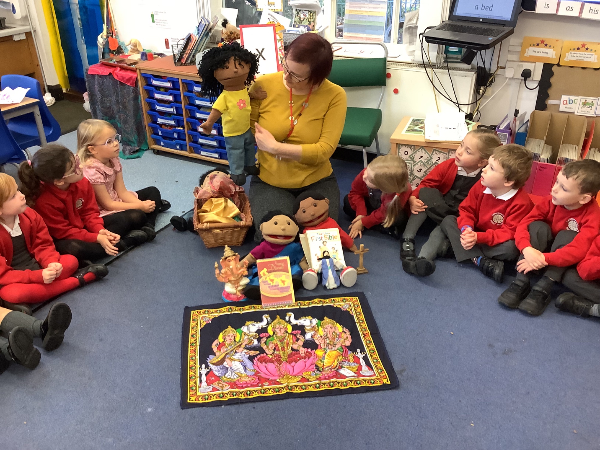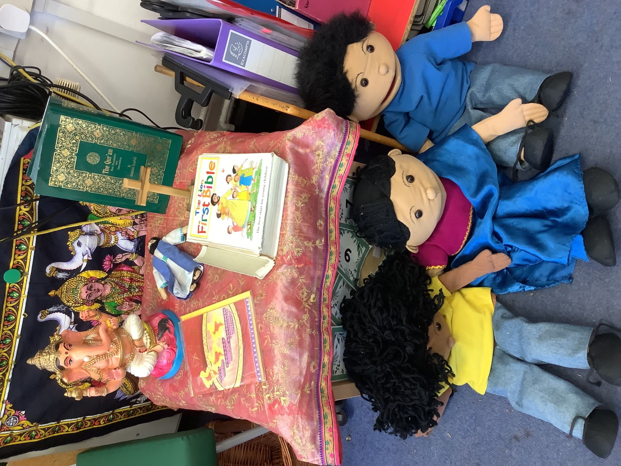 Wednesday - Interfaith Day. We spent some time learning about different peoples' beliefs and reflected on how wonderful it is to live in a world full of so much variety. We met some special characters who all have different faiths and explored some of their most special possessions.
