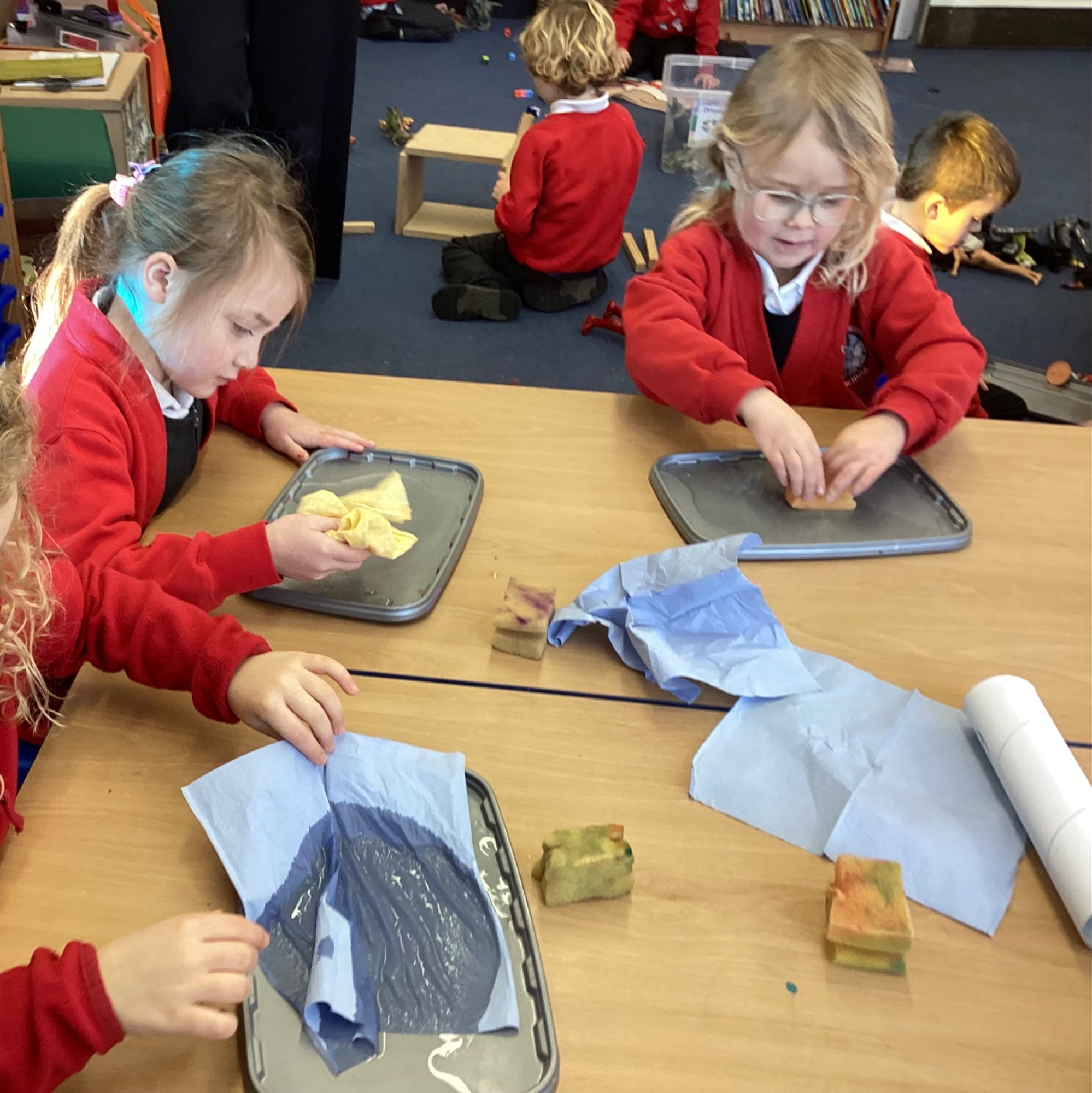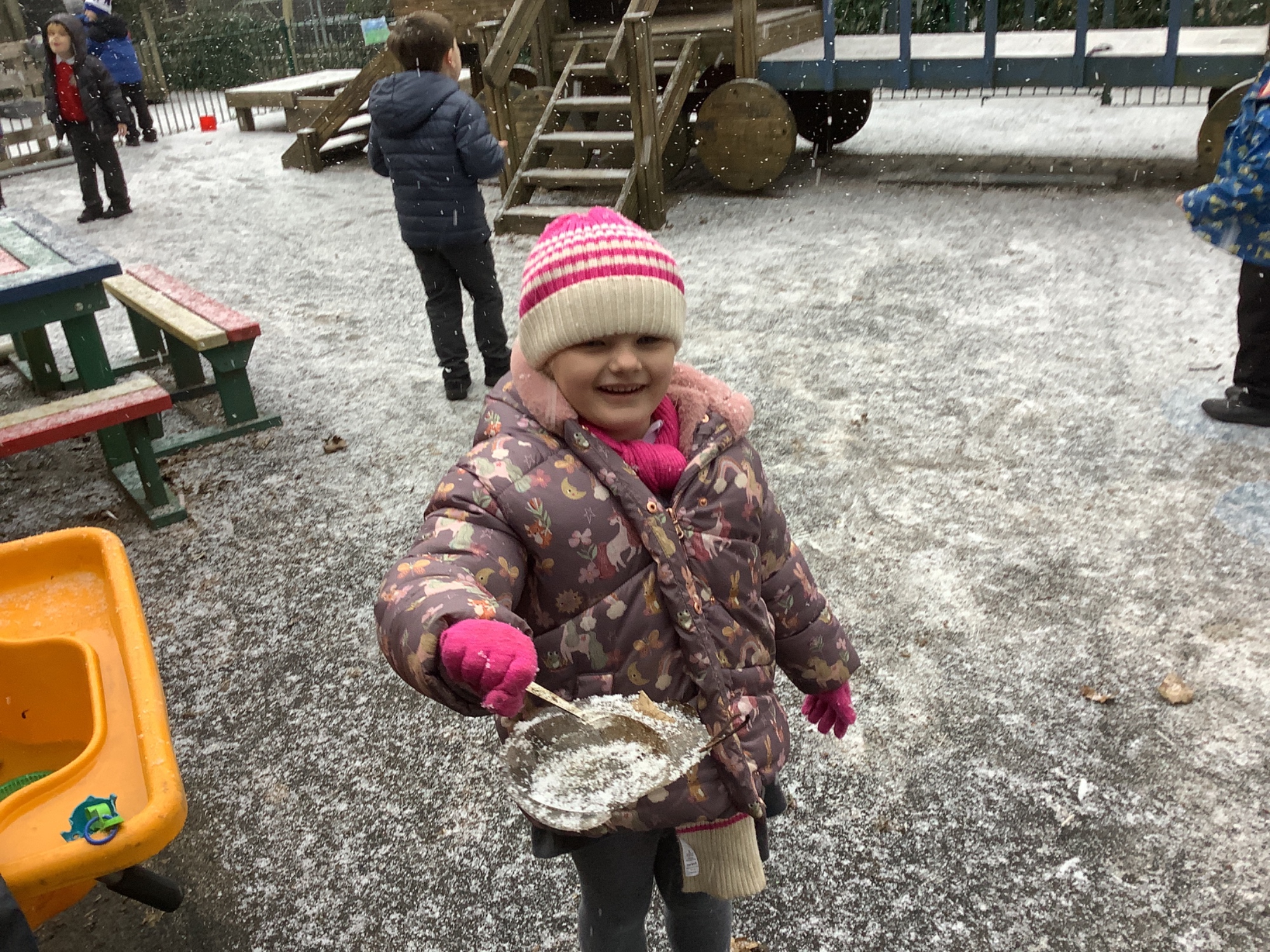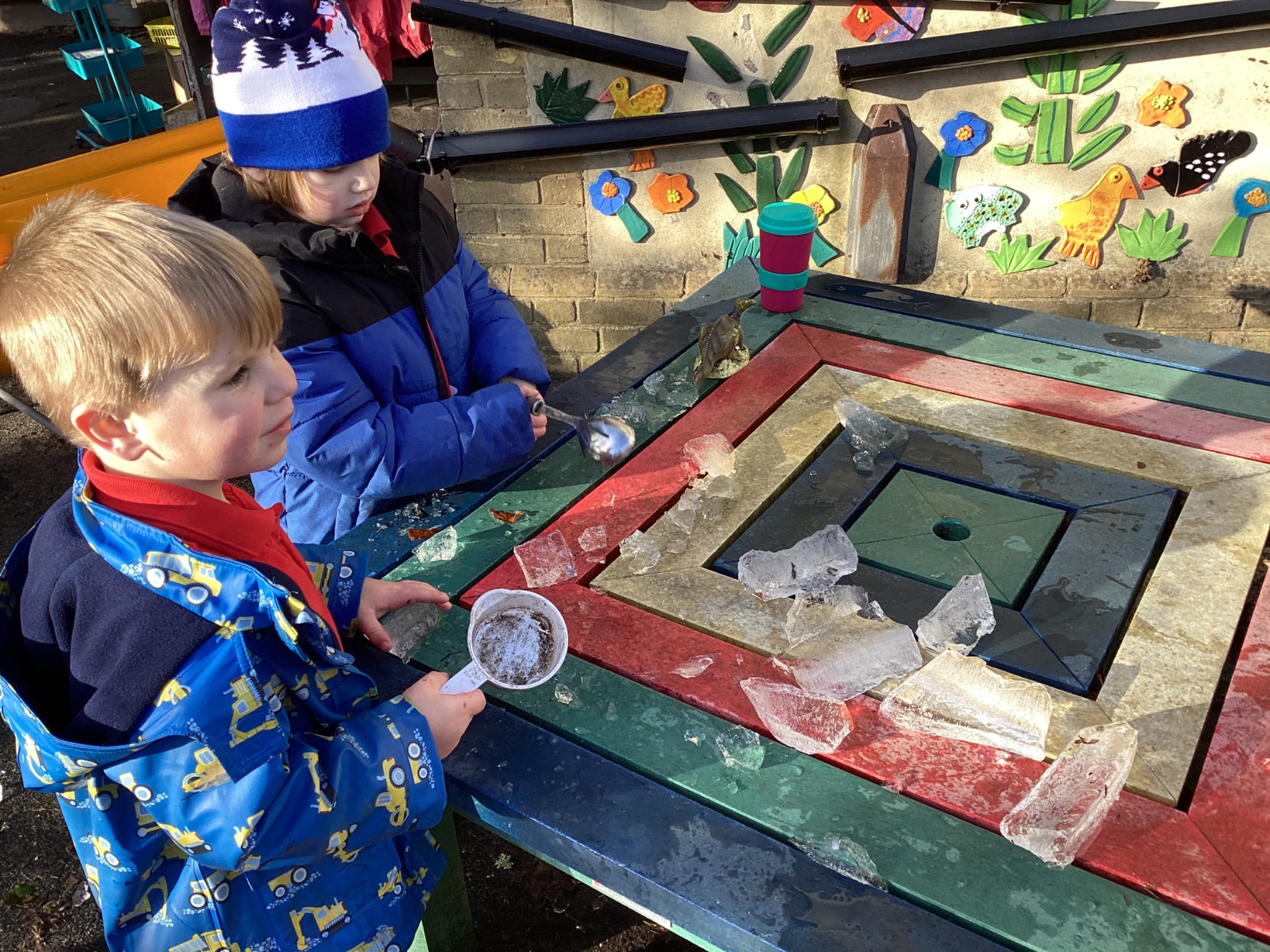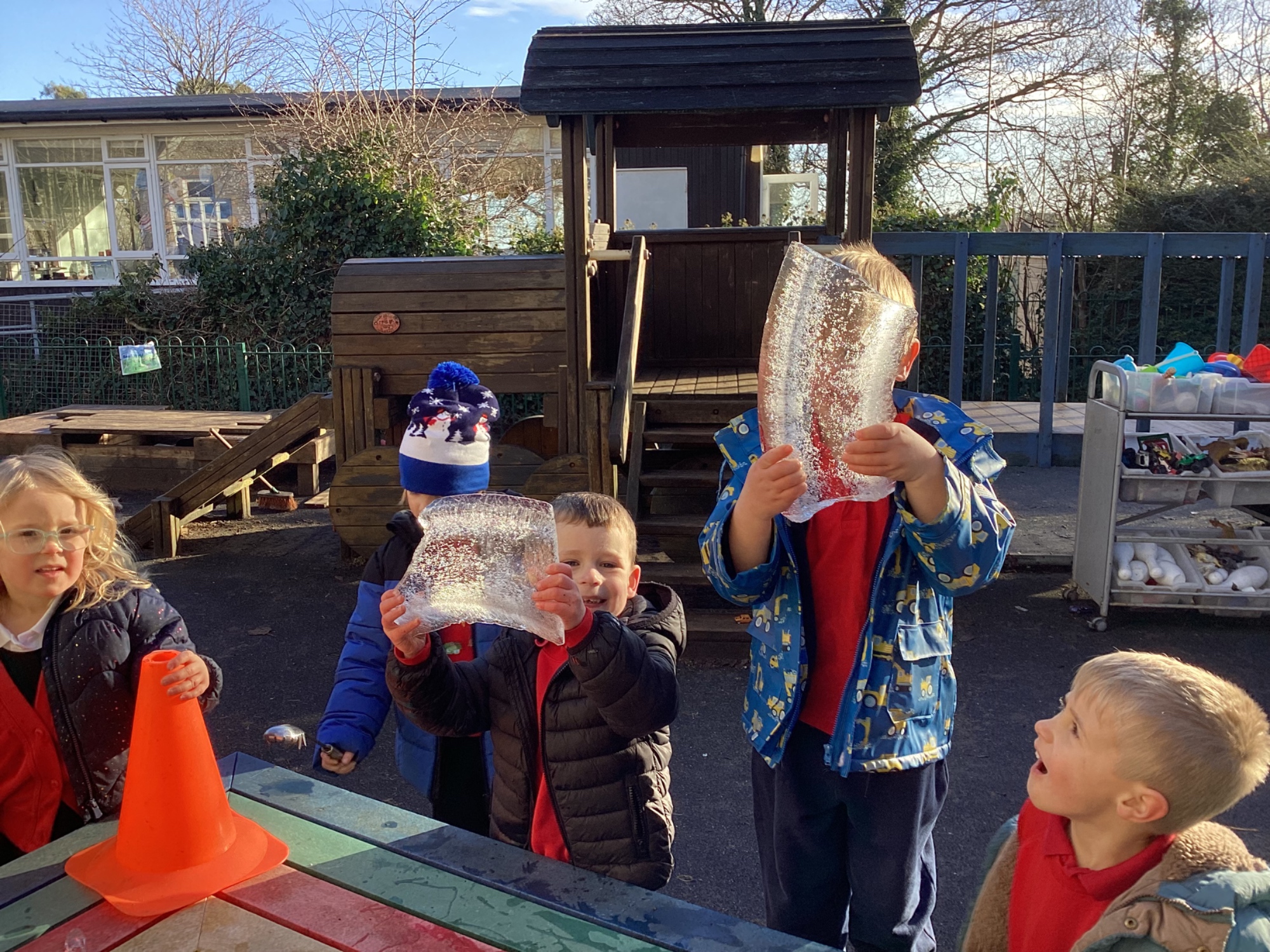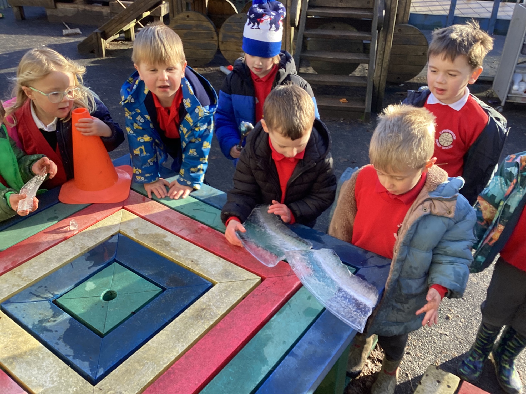 We were very lucky to see lots of ice and even some snow at the start of the week. We collected ice and enjoyed seeing what happened when we hit it, dropped it and held it in our warm hands.