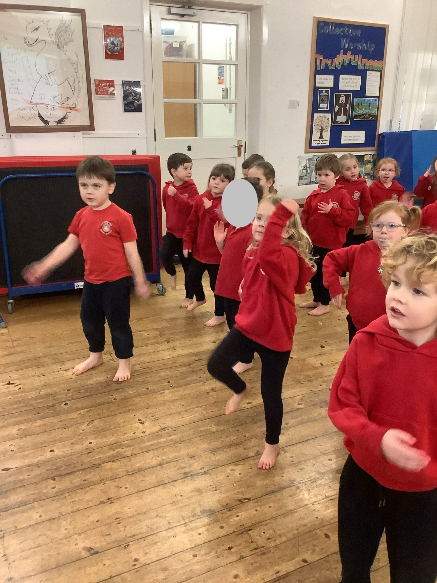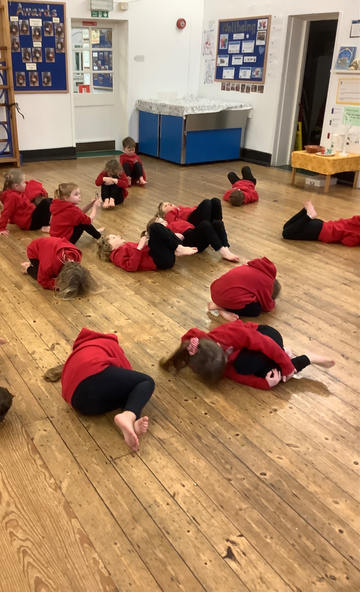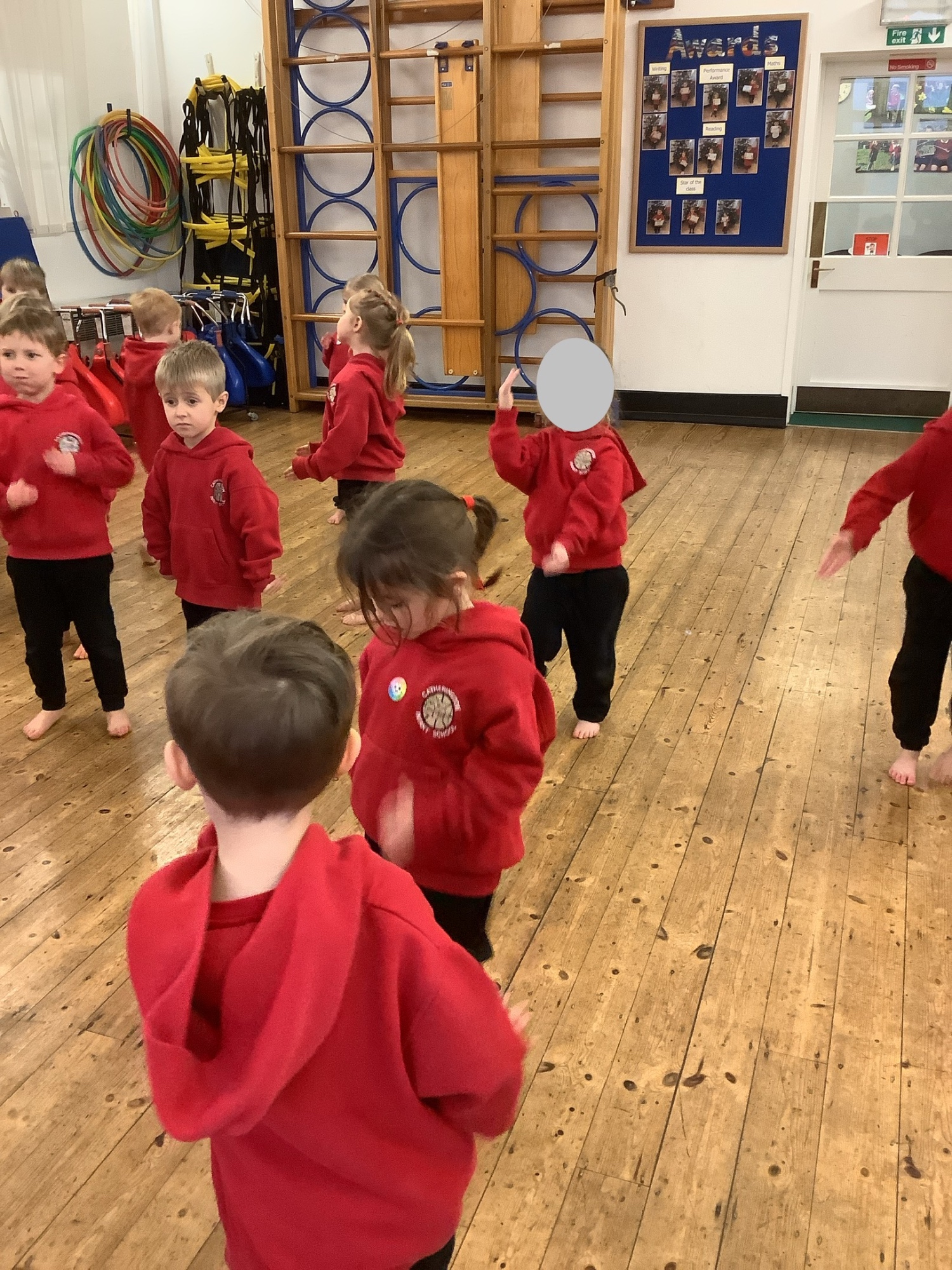 In PE we made a new dance routine using movements we thought Mr Strong might make with his square body. It was fun to compare our jelly movements to our strong movements - they were very different!