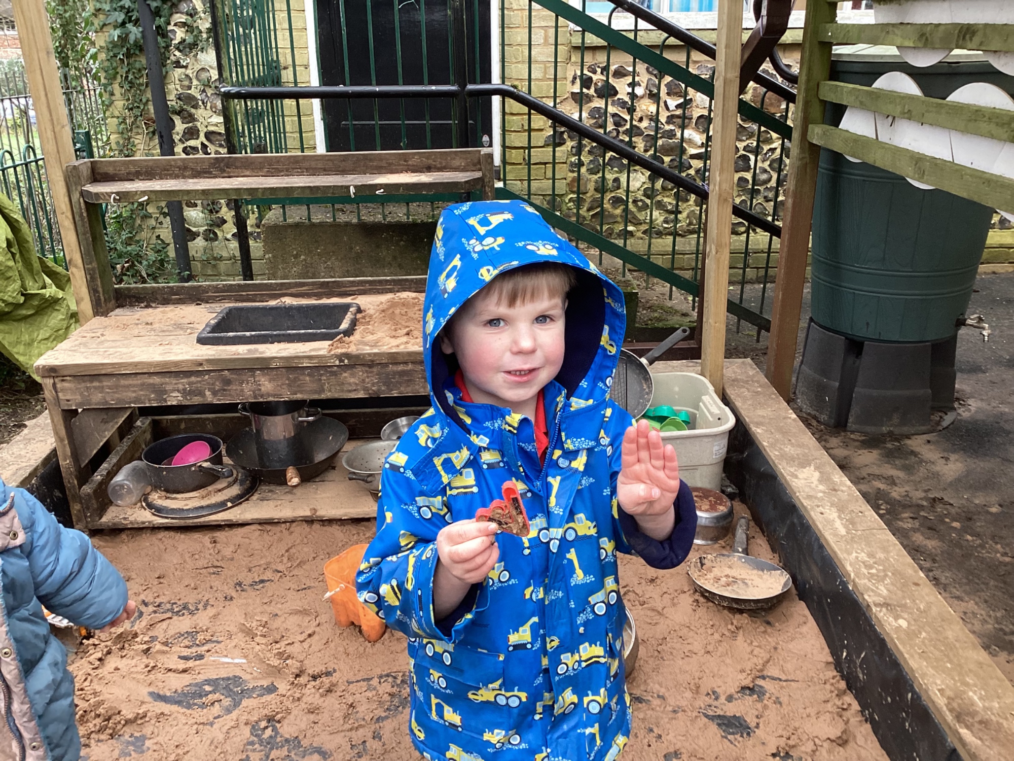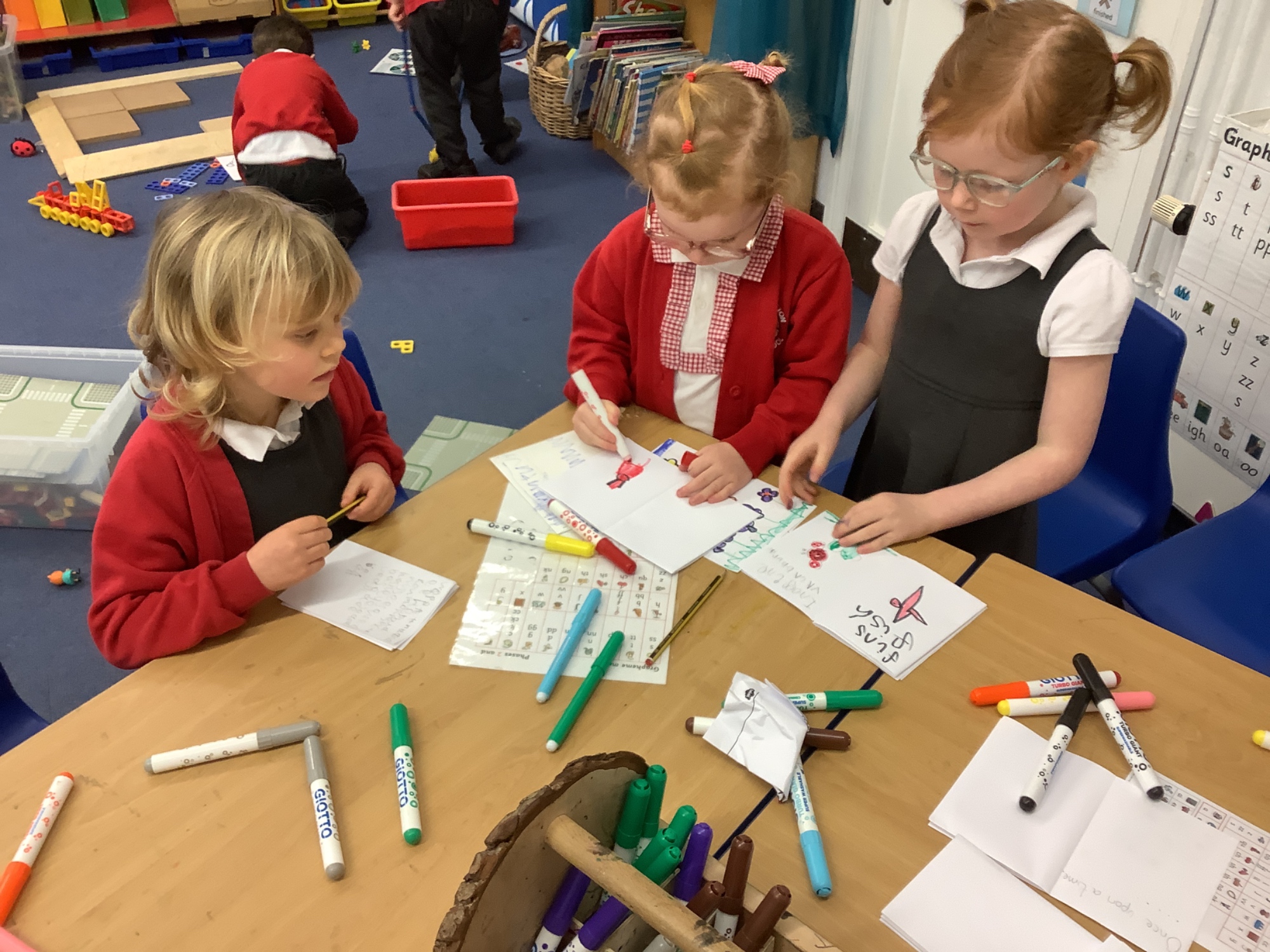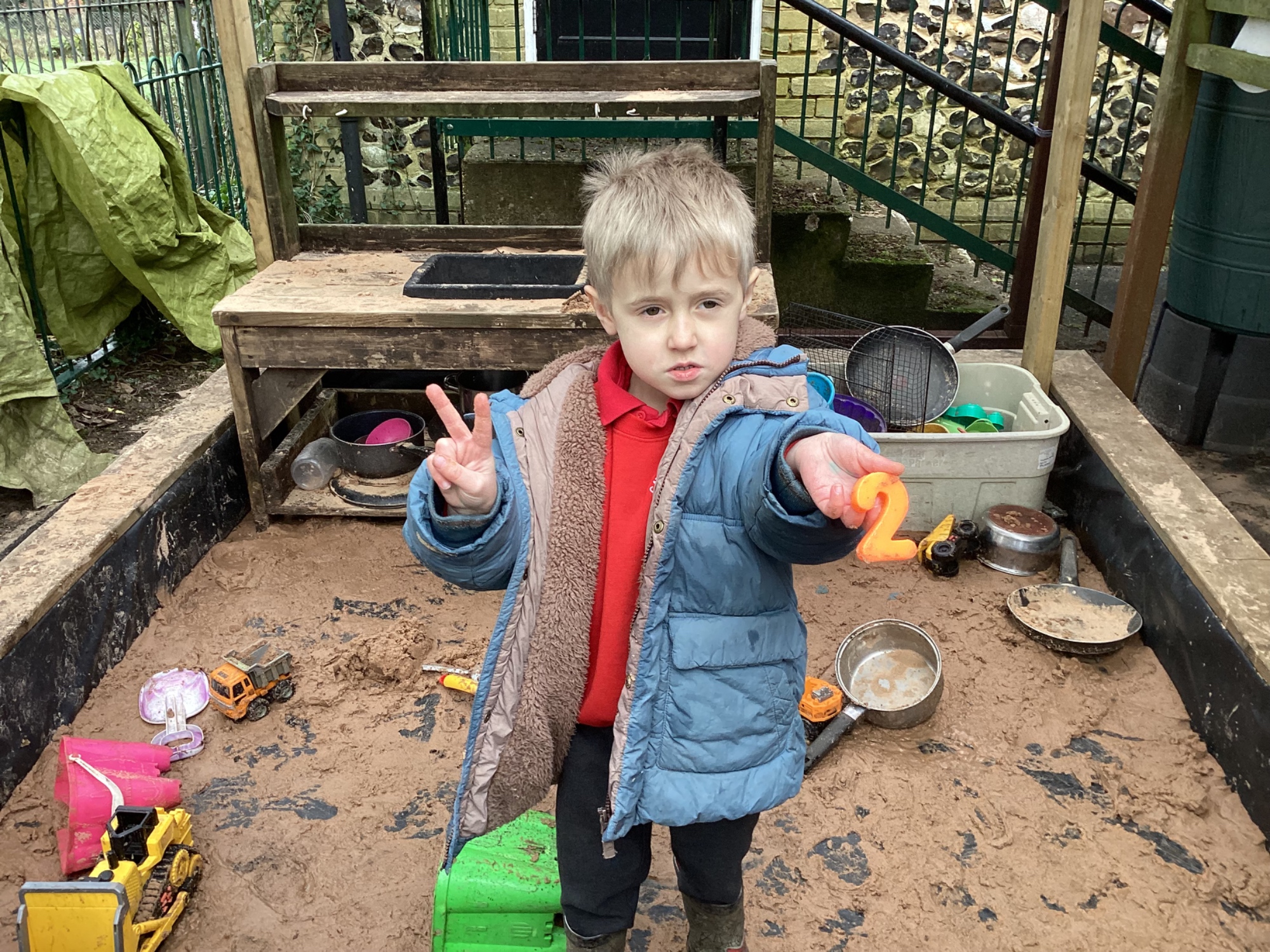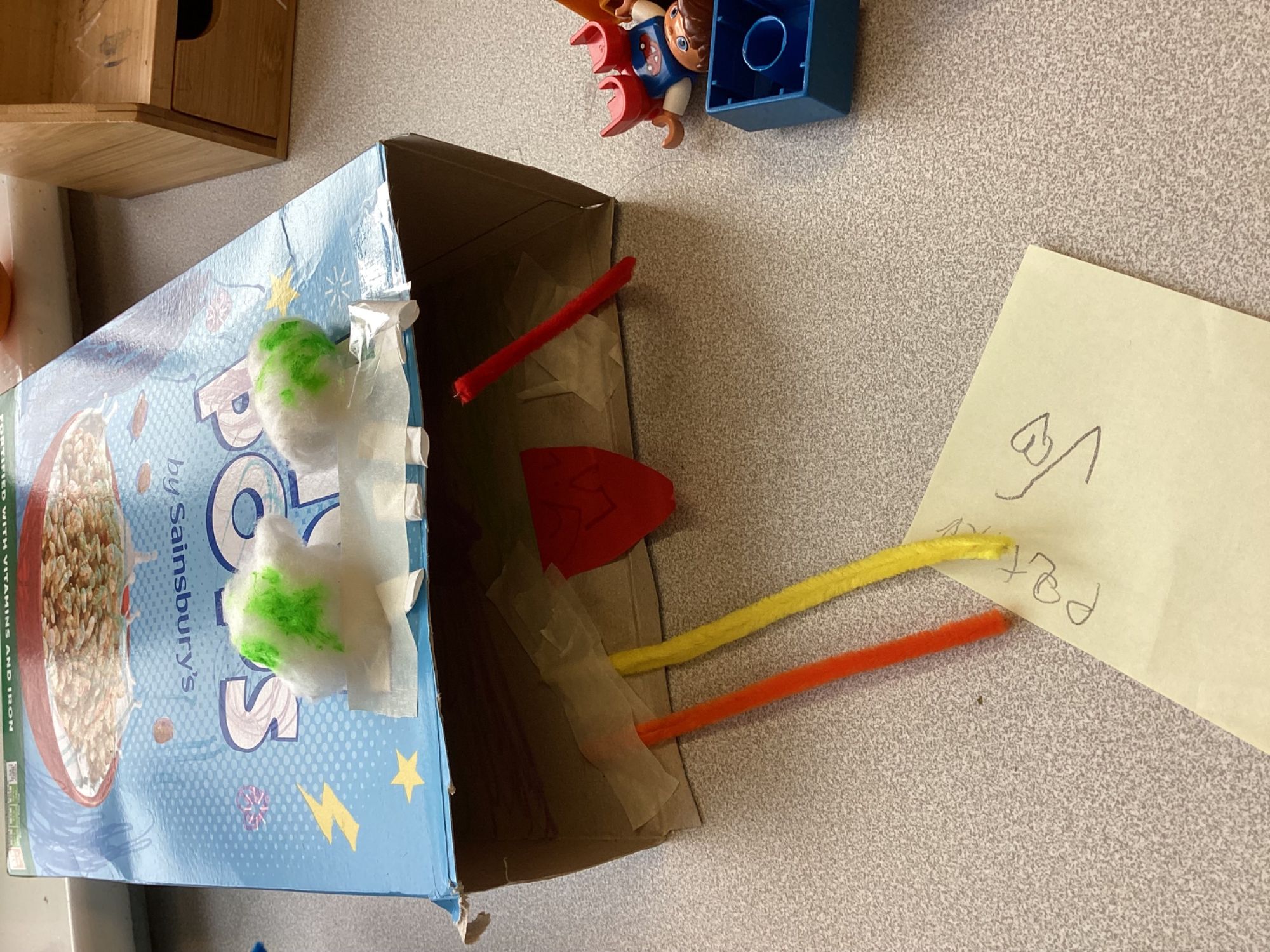 Other activities we enjoyed this week were: making dragons with junk modelling materials, writing stories and digging for numerals in sand.