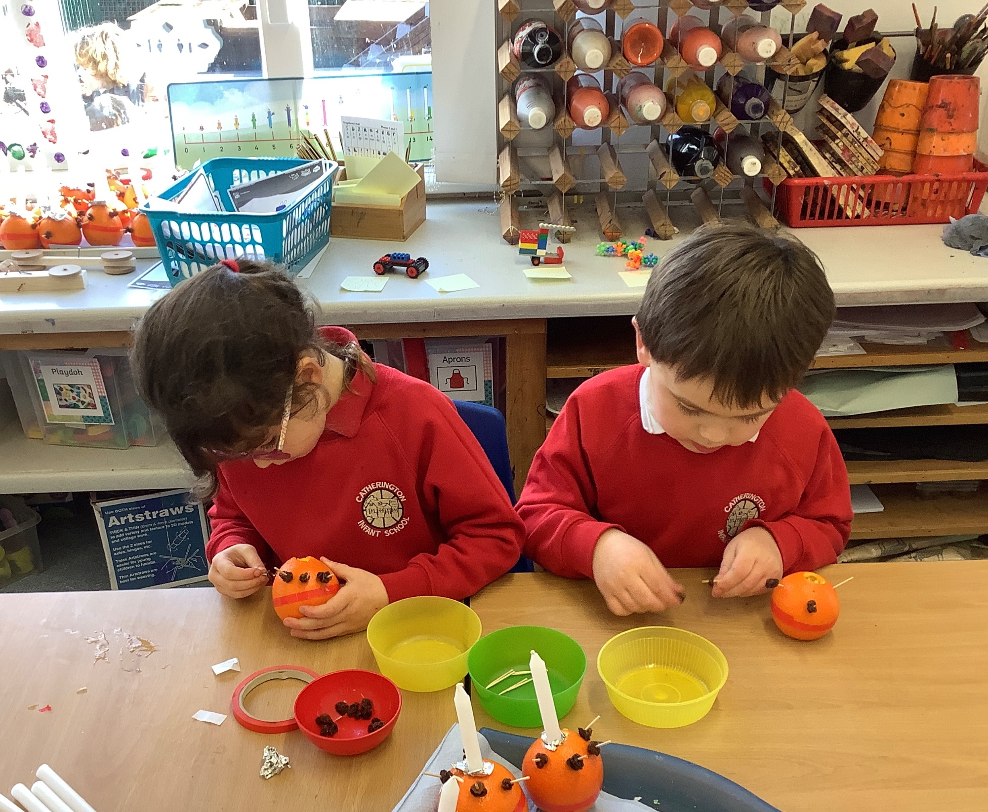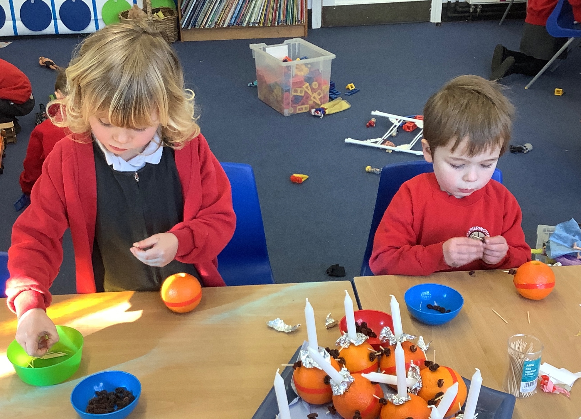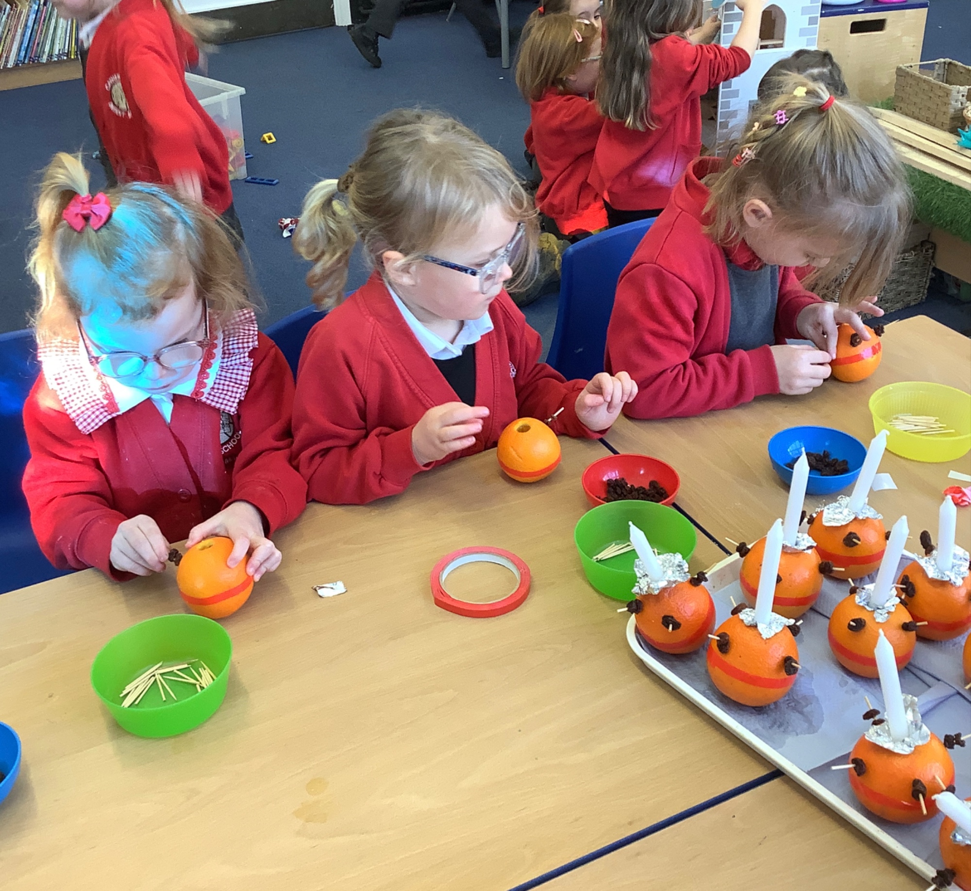 On Wednesday we learned about Christingle. We made our own Christingles using oranges, candles, raisins and a red ribbon, then took them to the church to enjoy a special service.