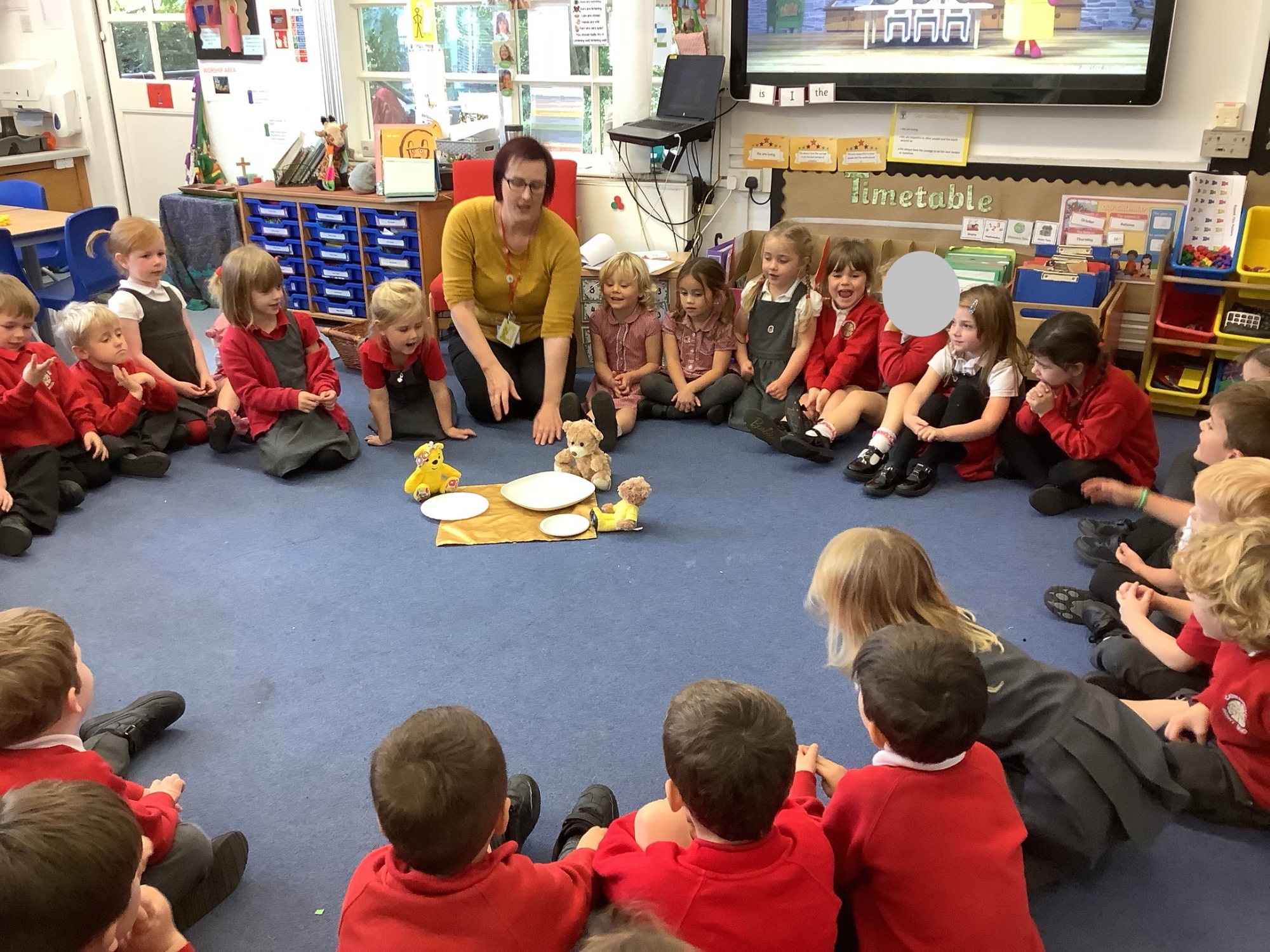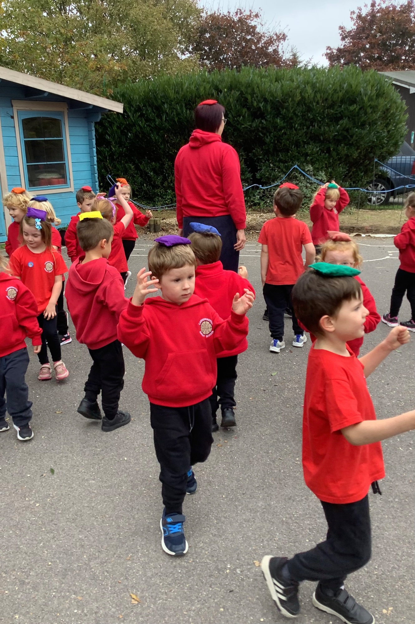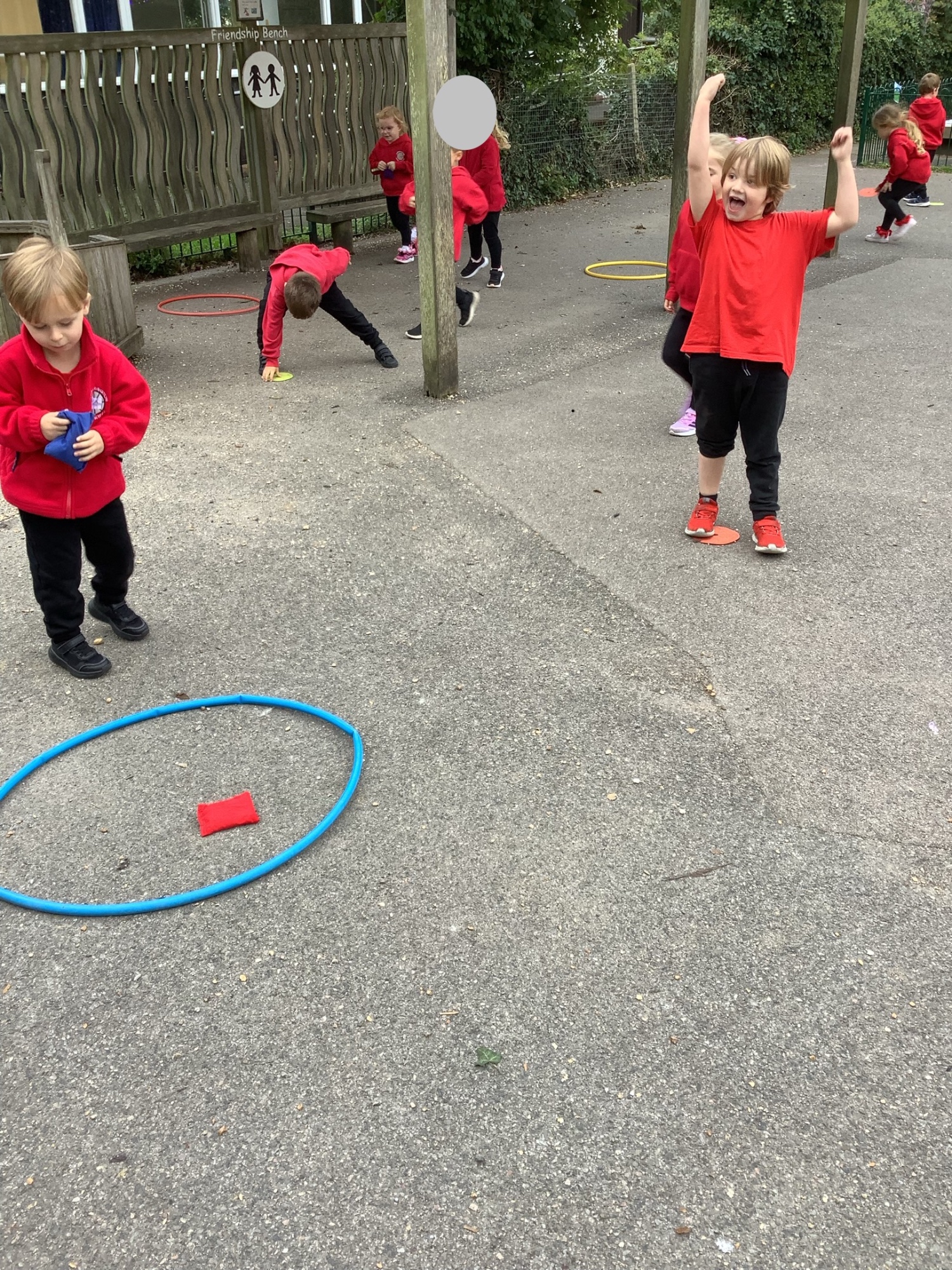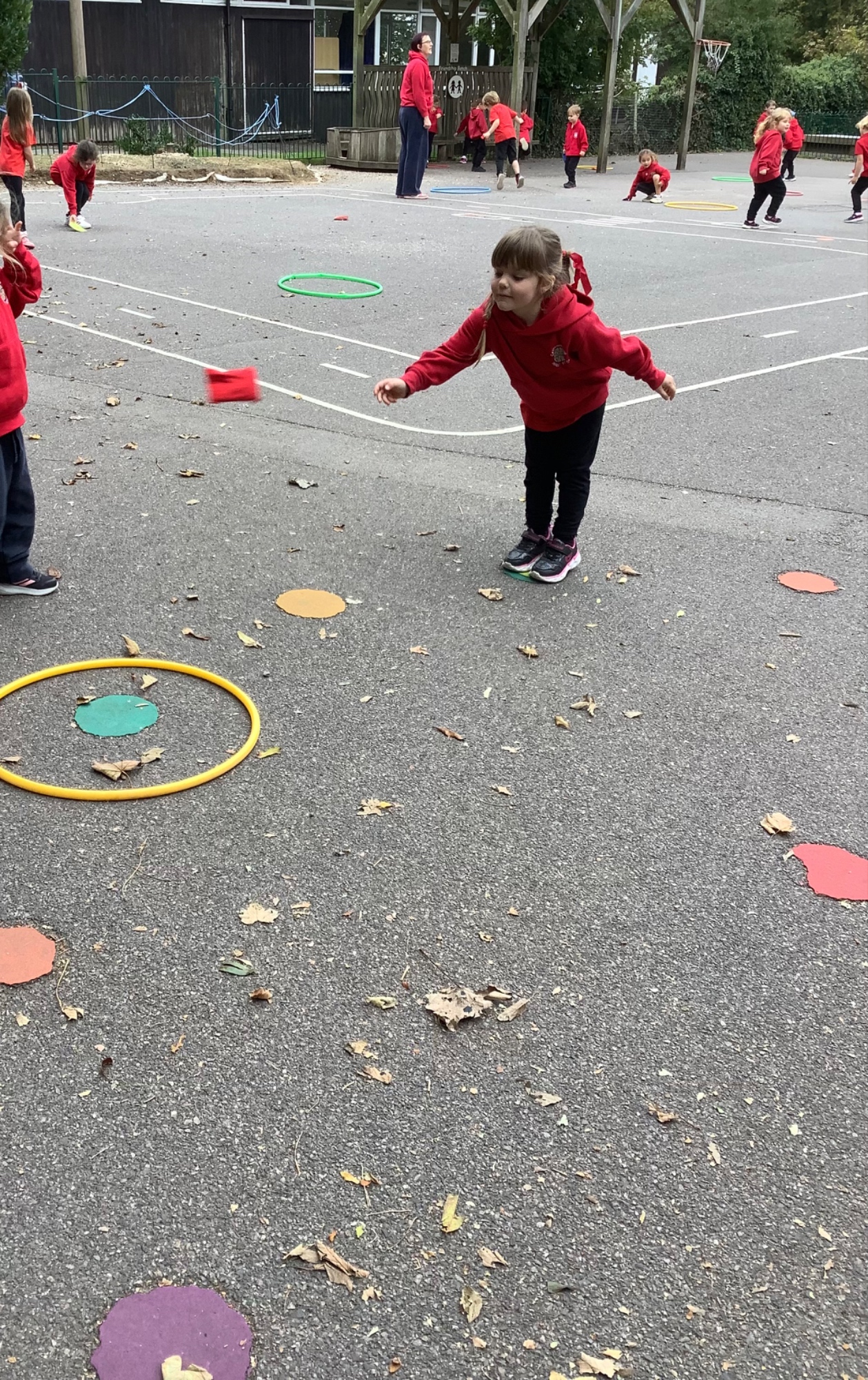In PE we balanced bean bags, passed them around different parts of our bodies and played a target practise game. We're getting very good at throwing them accurately.