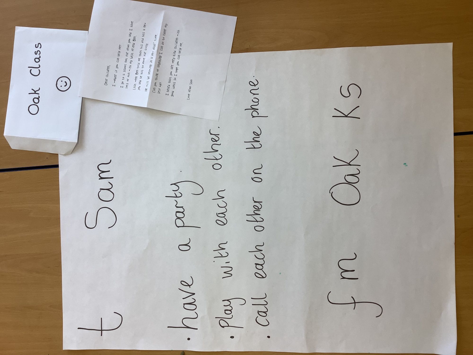 In PSHE we read a letter from a boy called Sam. He was very sad that his friend was moving away, so we wrote a letter back to him with some suggestions to help him feel better. We learned how to use our grapheme mats and were able to identify some initial and end sounds for the letter.