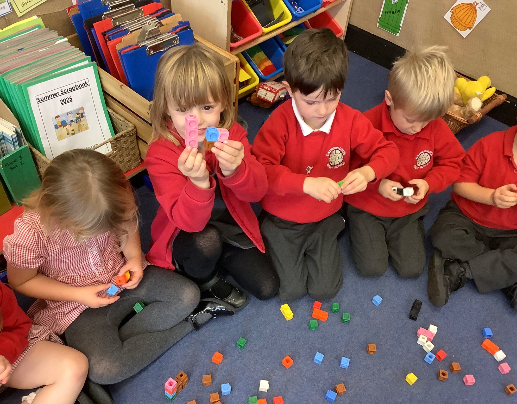 In maths we made collections of 2, 3 and 4. We found out that all numbers are made of ones and practised making numbers with ones.