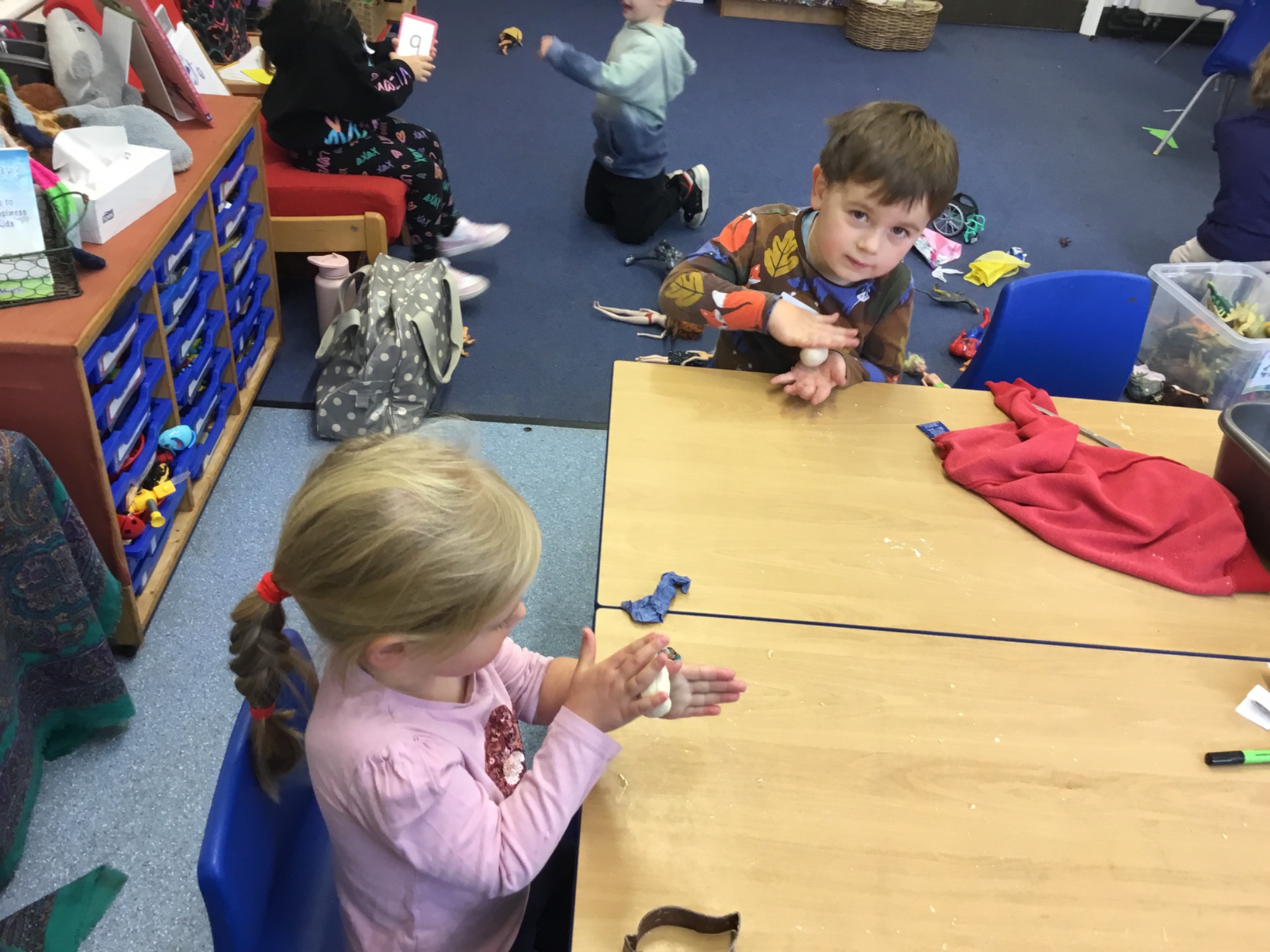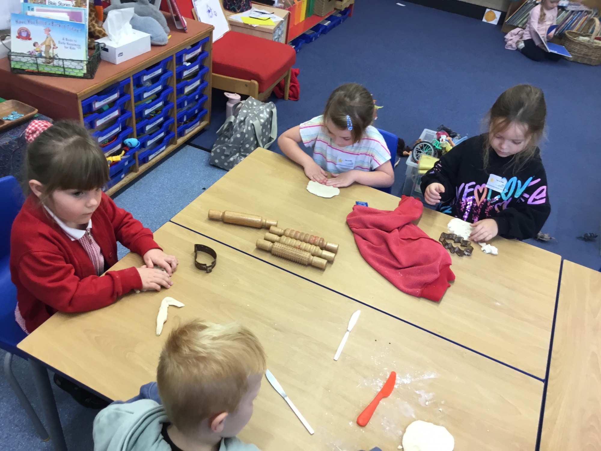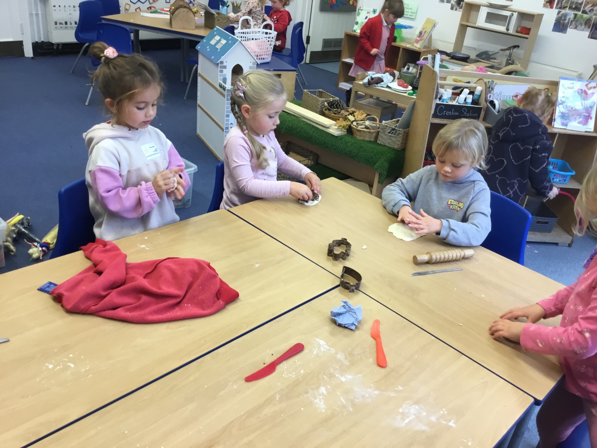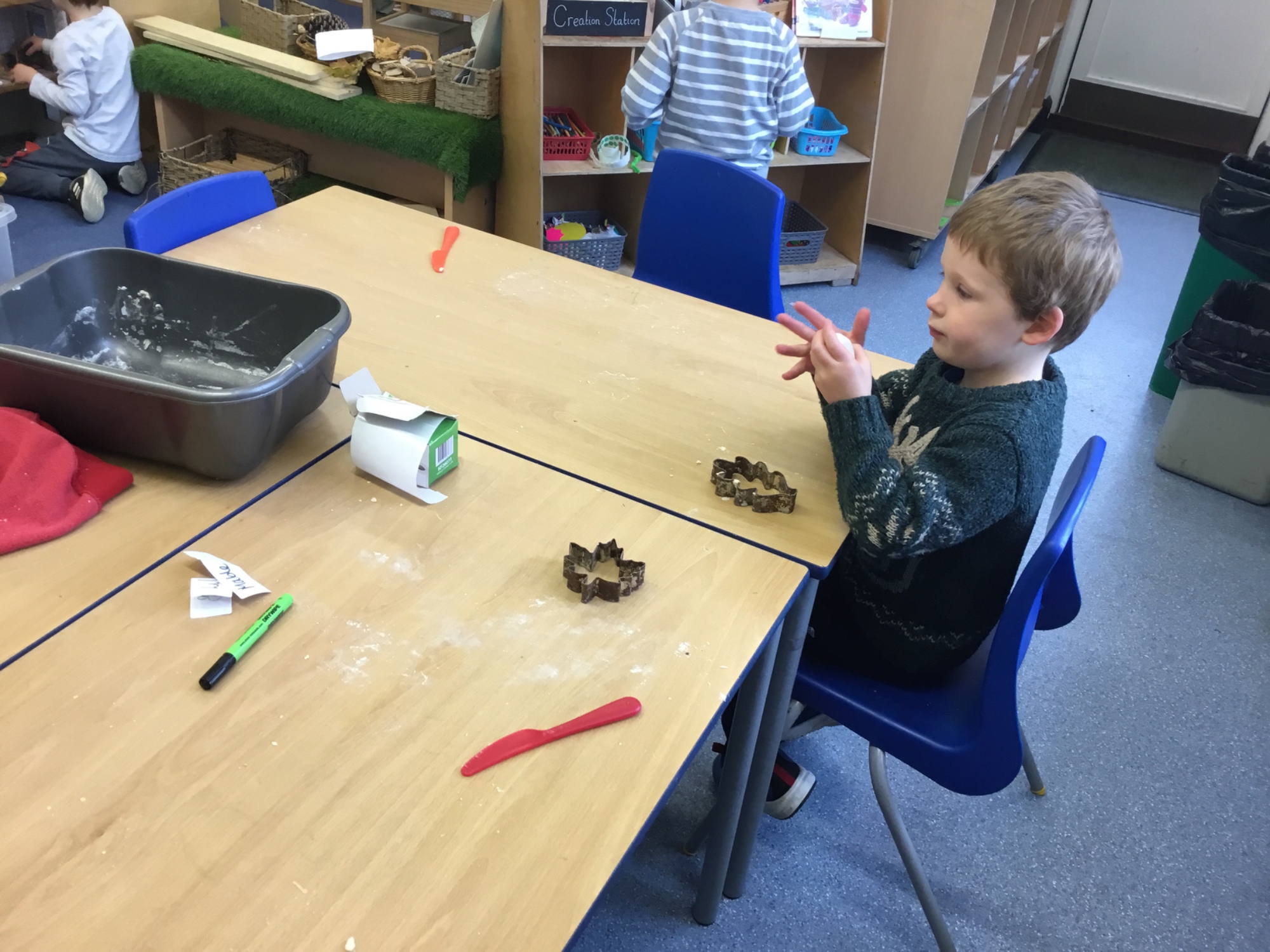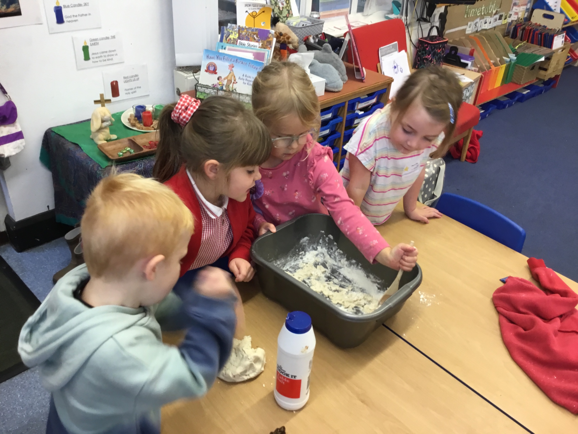 This week we learned all about the different seasons. We thought about Autumn and what changes we can expect to see as we move from Autumn to Winter. We made salt dough leaves, which we'll paint next week. Mixing the dough was really fun!