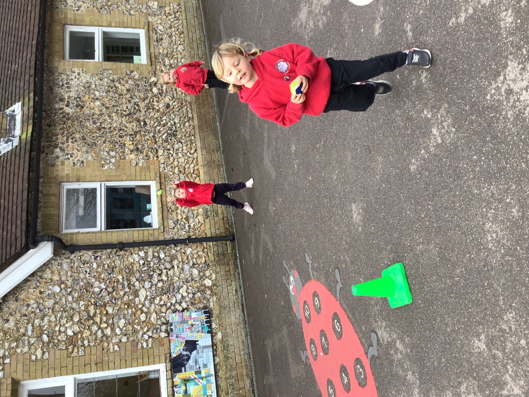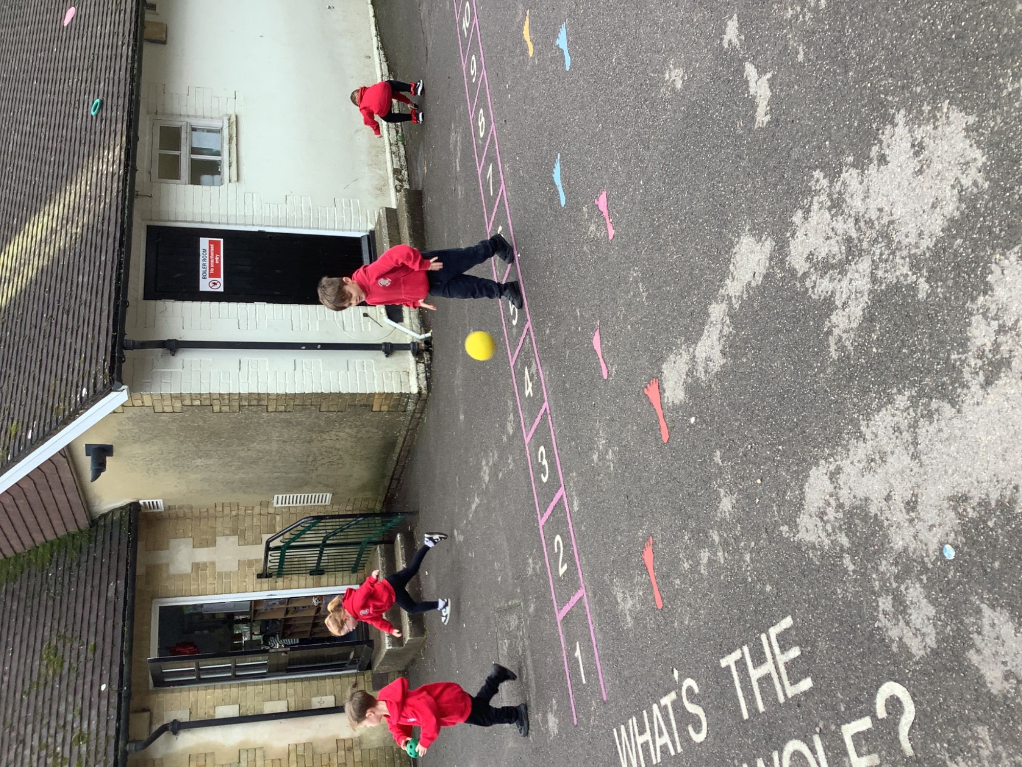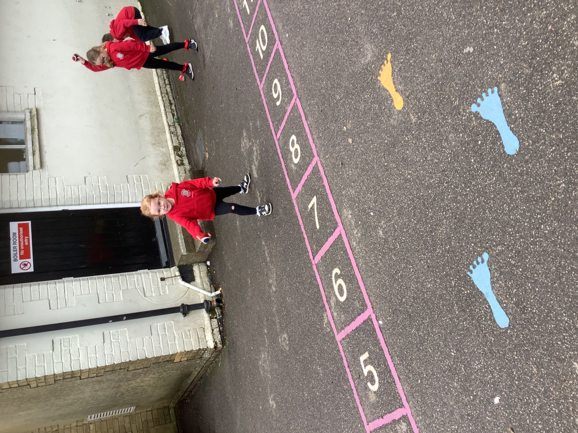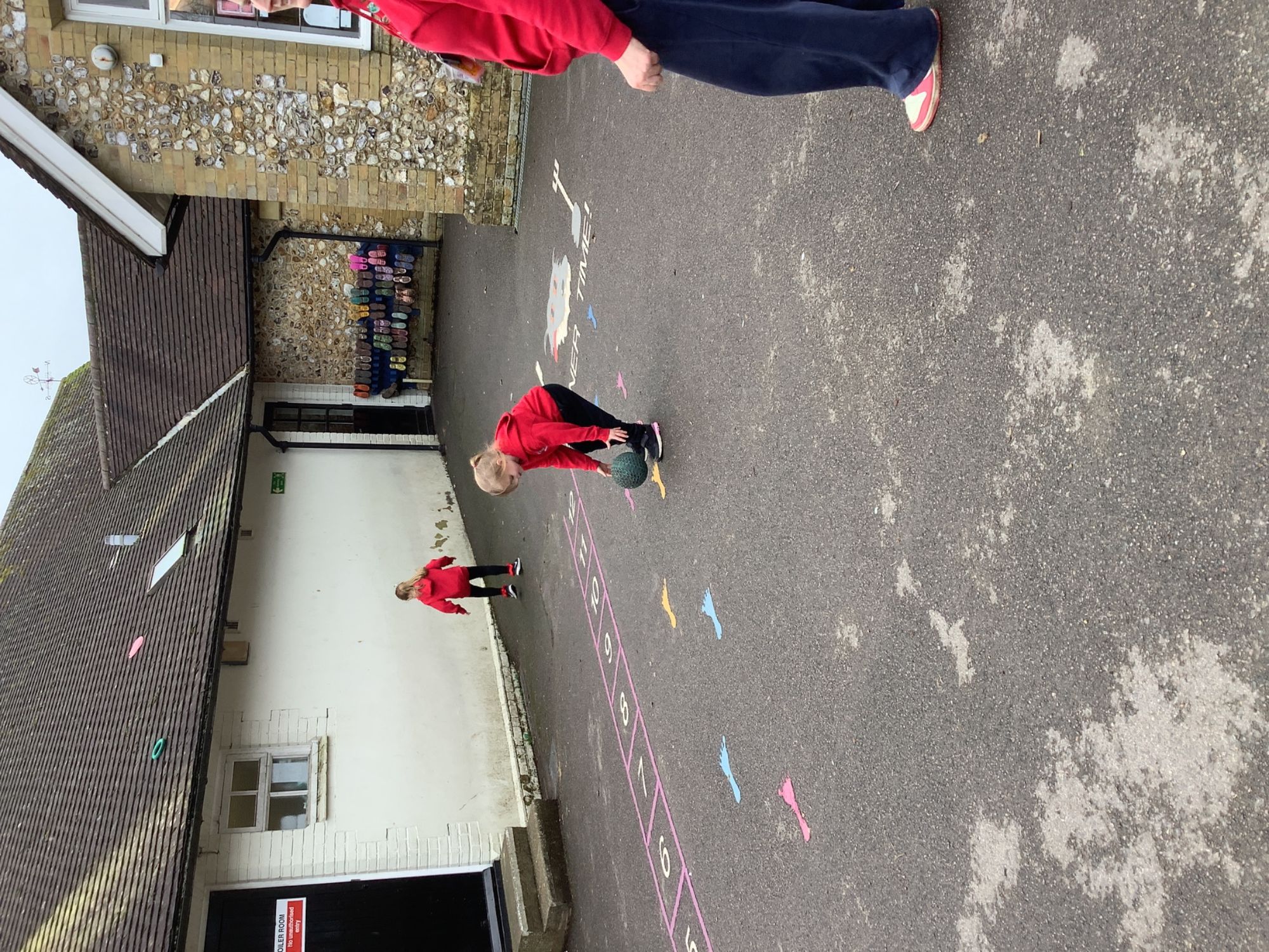 In PE we began our new unit on ball skills. We used our hands and feet to move different balls across the playground and then had a go at passing our ball to a friend.