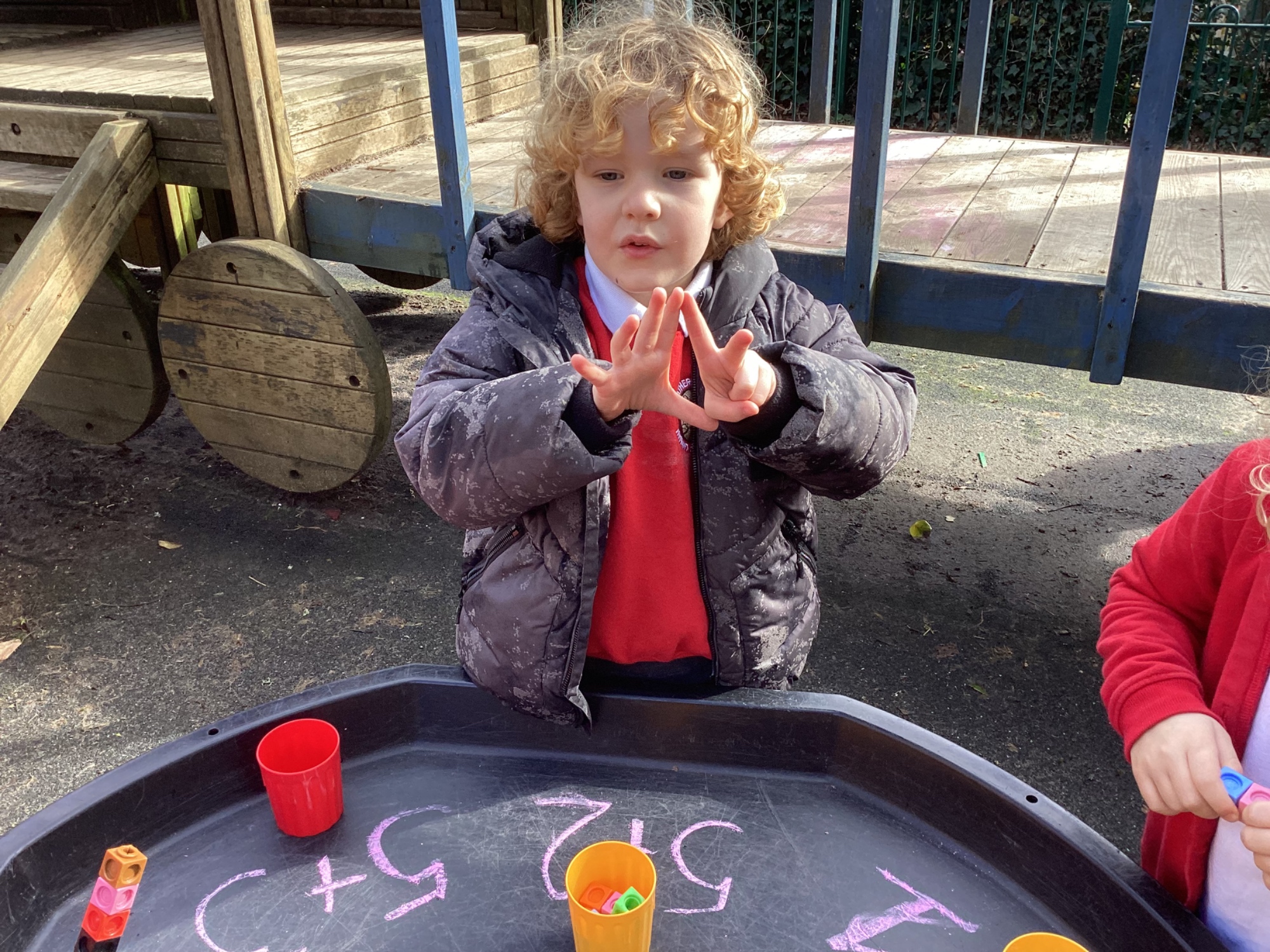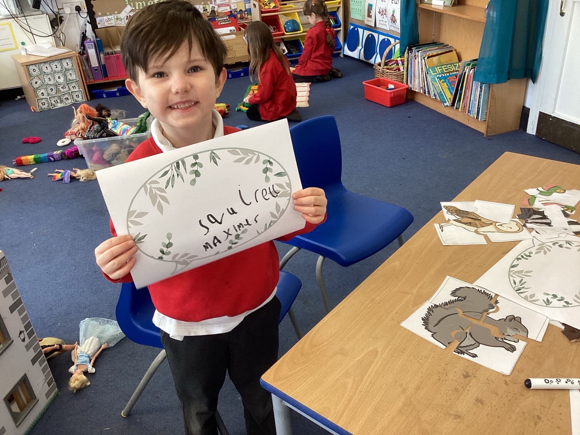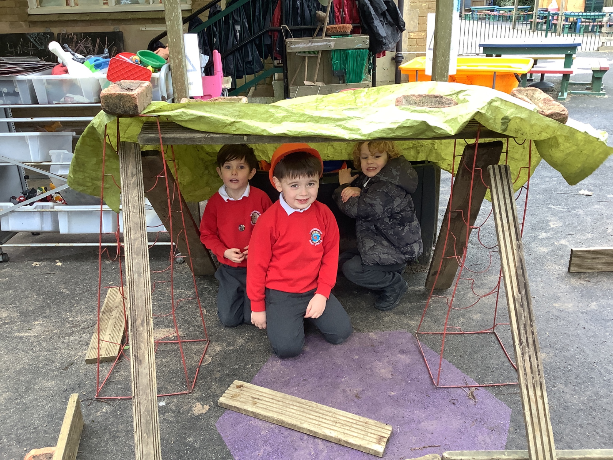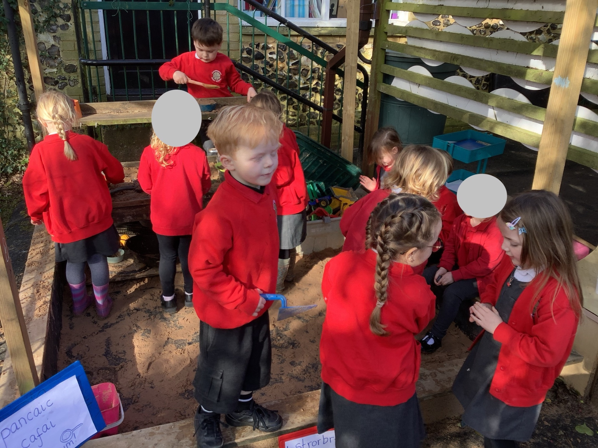 In Discovery Time we solved puzzles to find woodland animals and then wrote about the creature we found, made and sold pancakes in a Pancake Cafe, built dens, made car ramps, wrote with chalk, designed and made things with junk modelling materials and played with numbers (a lot!).