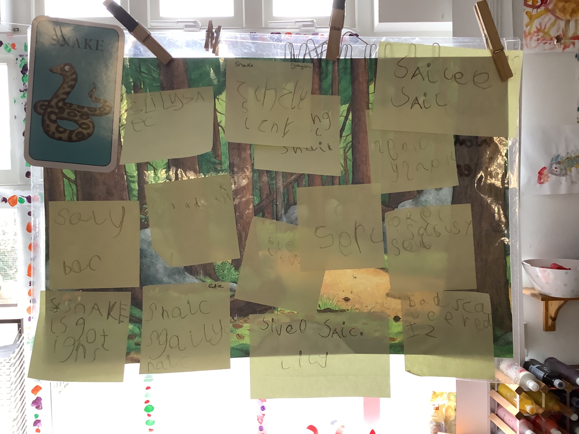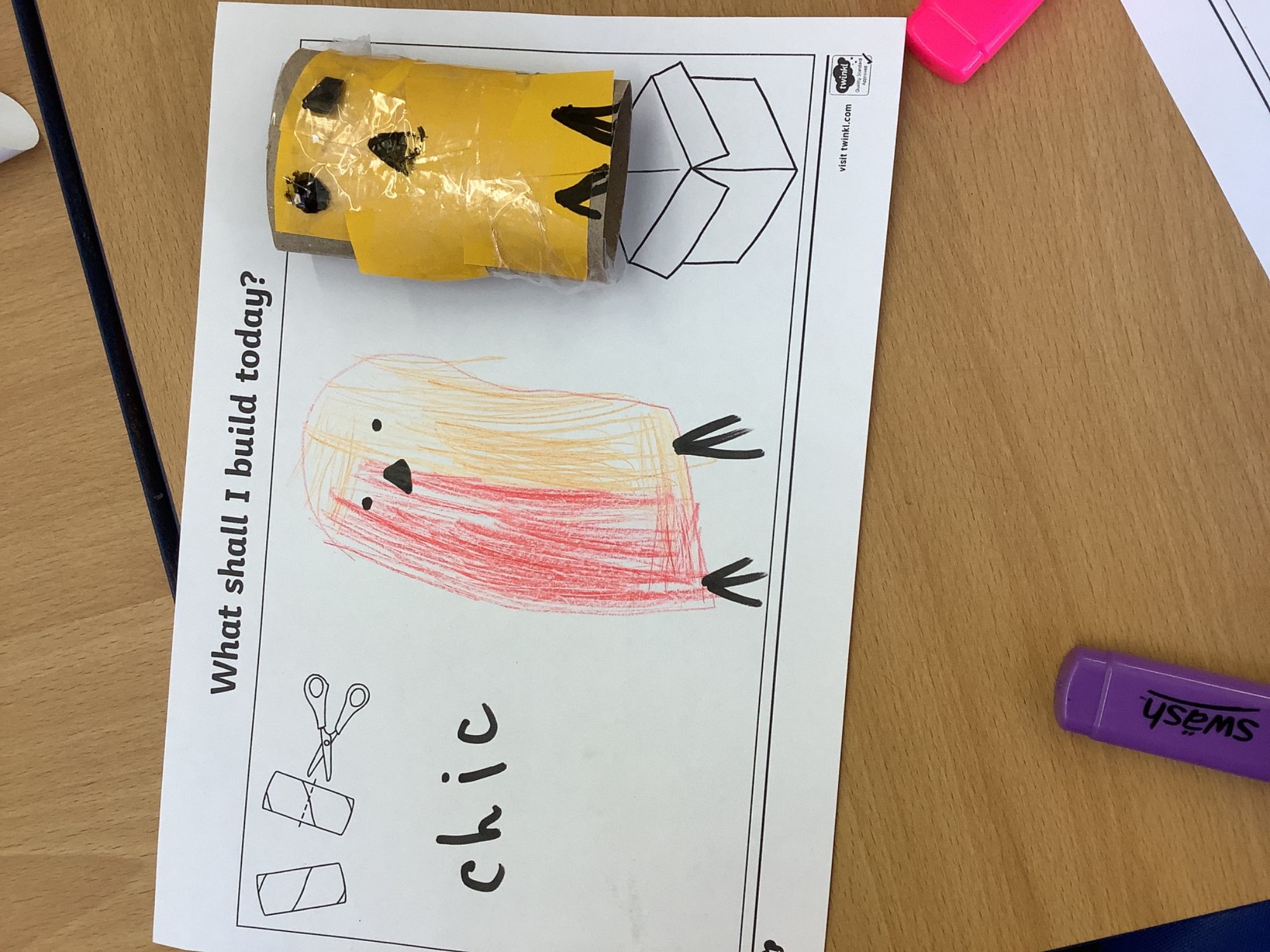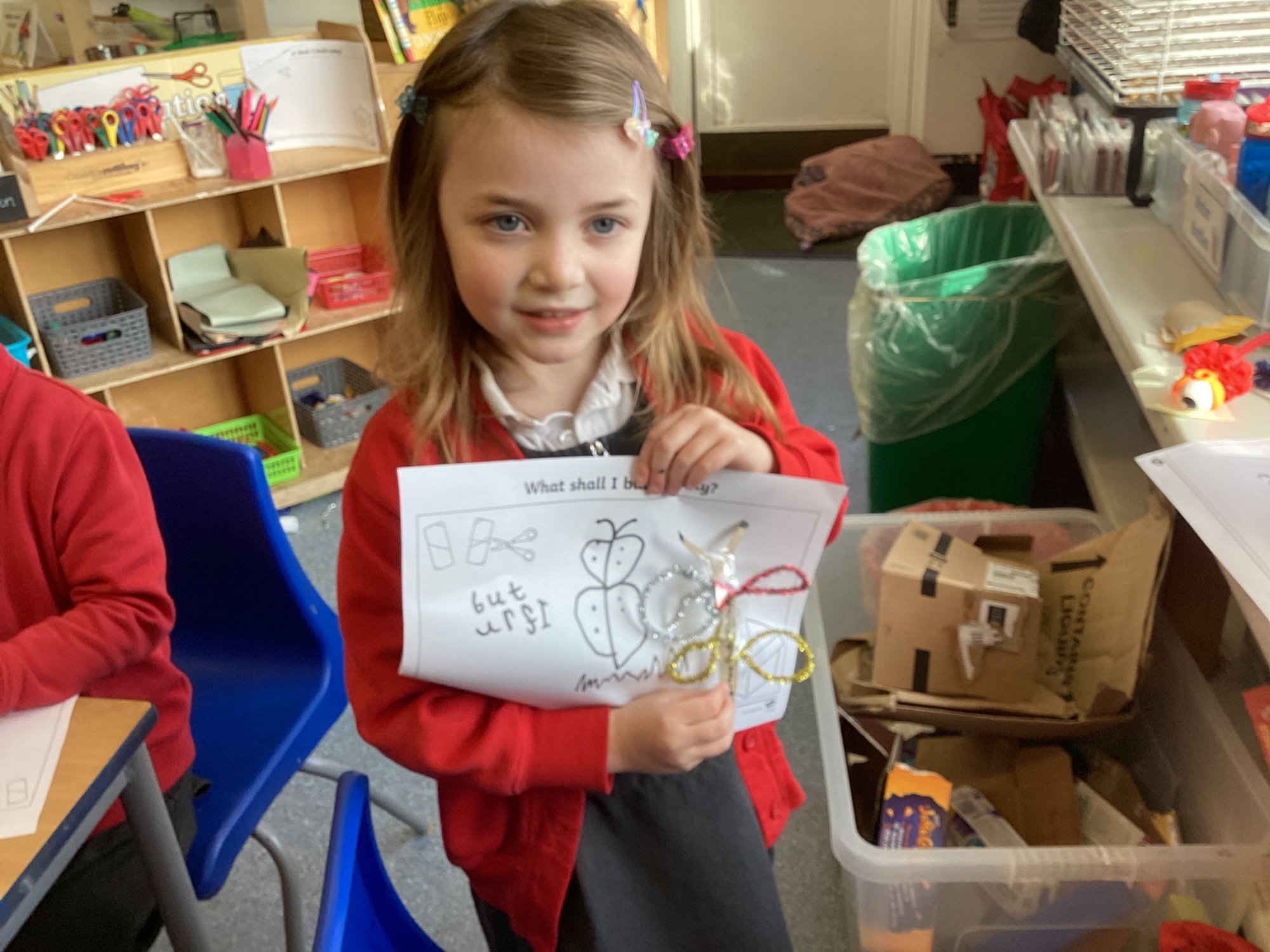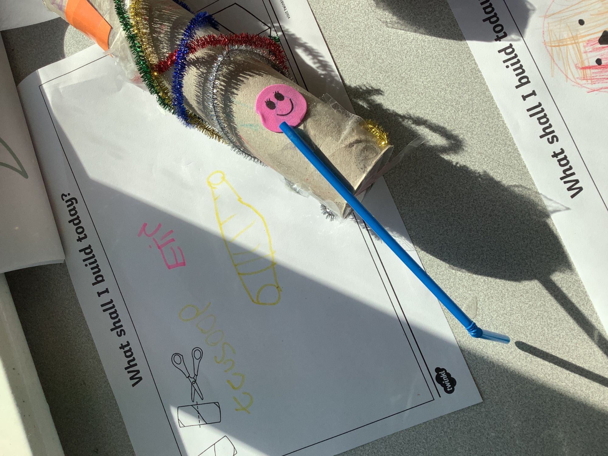 In Discovery Time we solved puzzles to find woodland animals and then wrote about the creature we found, made and sold pancakes in a Pancake Cafe, built dens, made car ramps, wrote with chalk, designed and made things with junk modelling materials and played with numbers (a lot!).