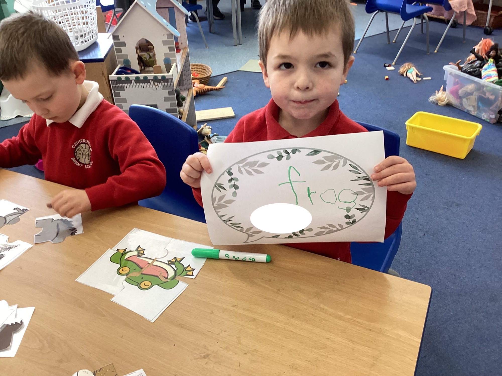 In phonics we practised reading words containing digraphs and even wrote our first dictation sentence!