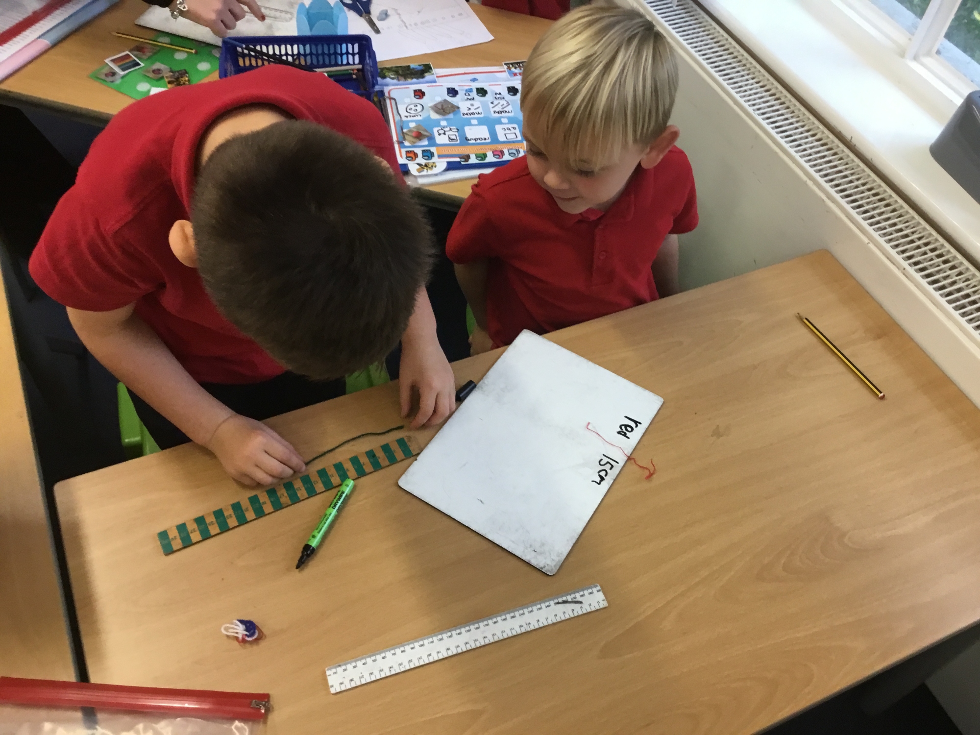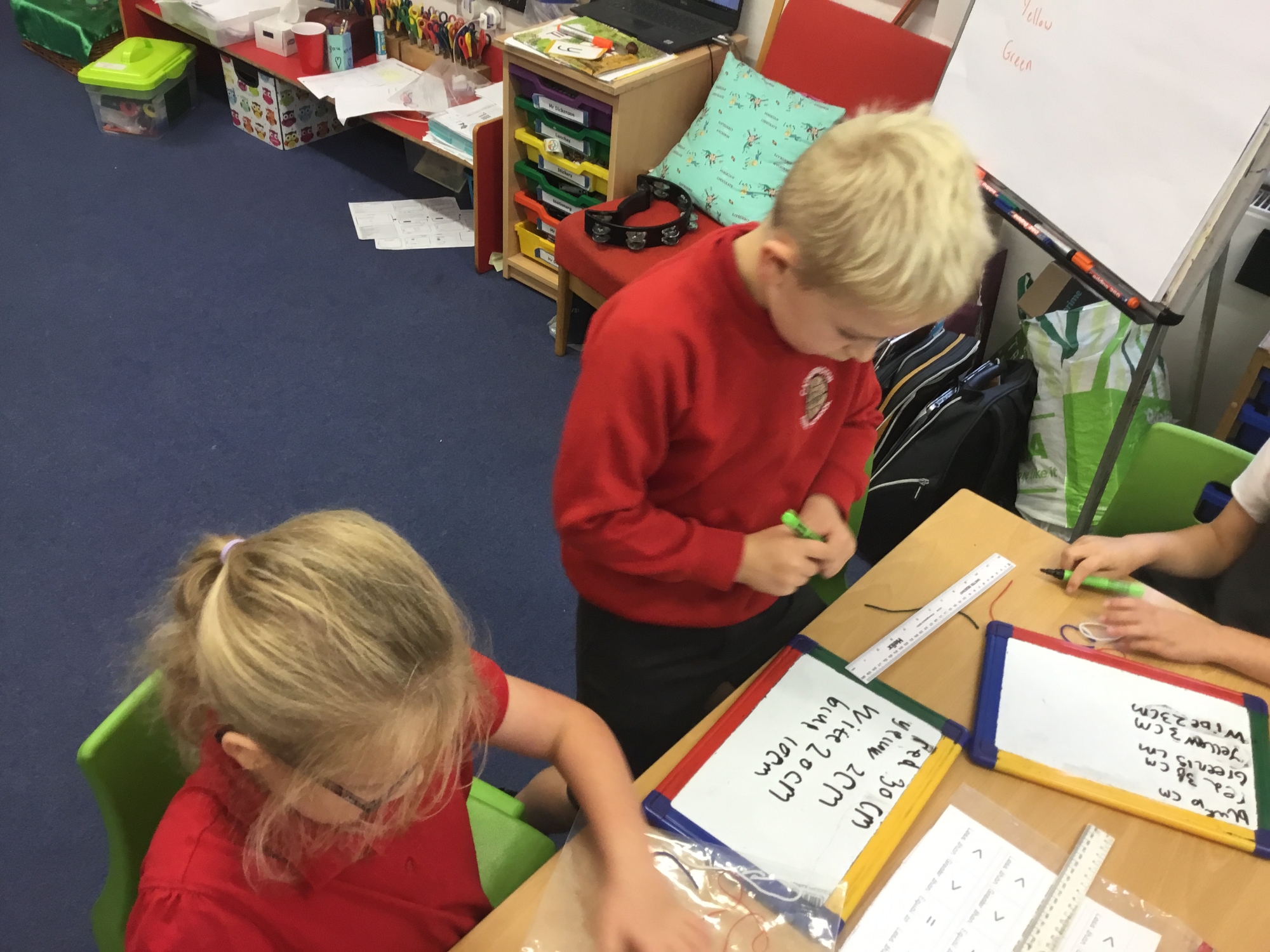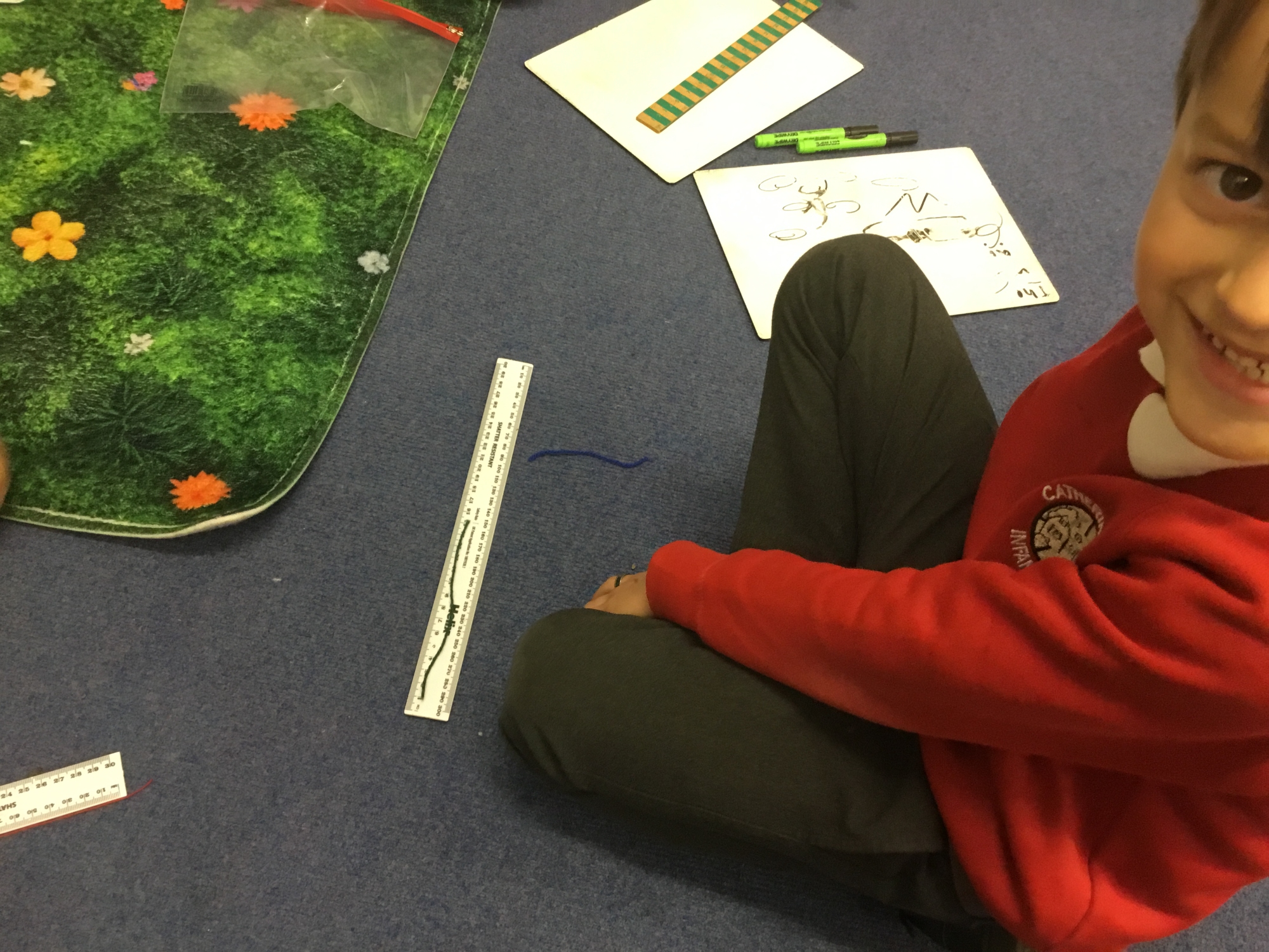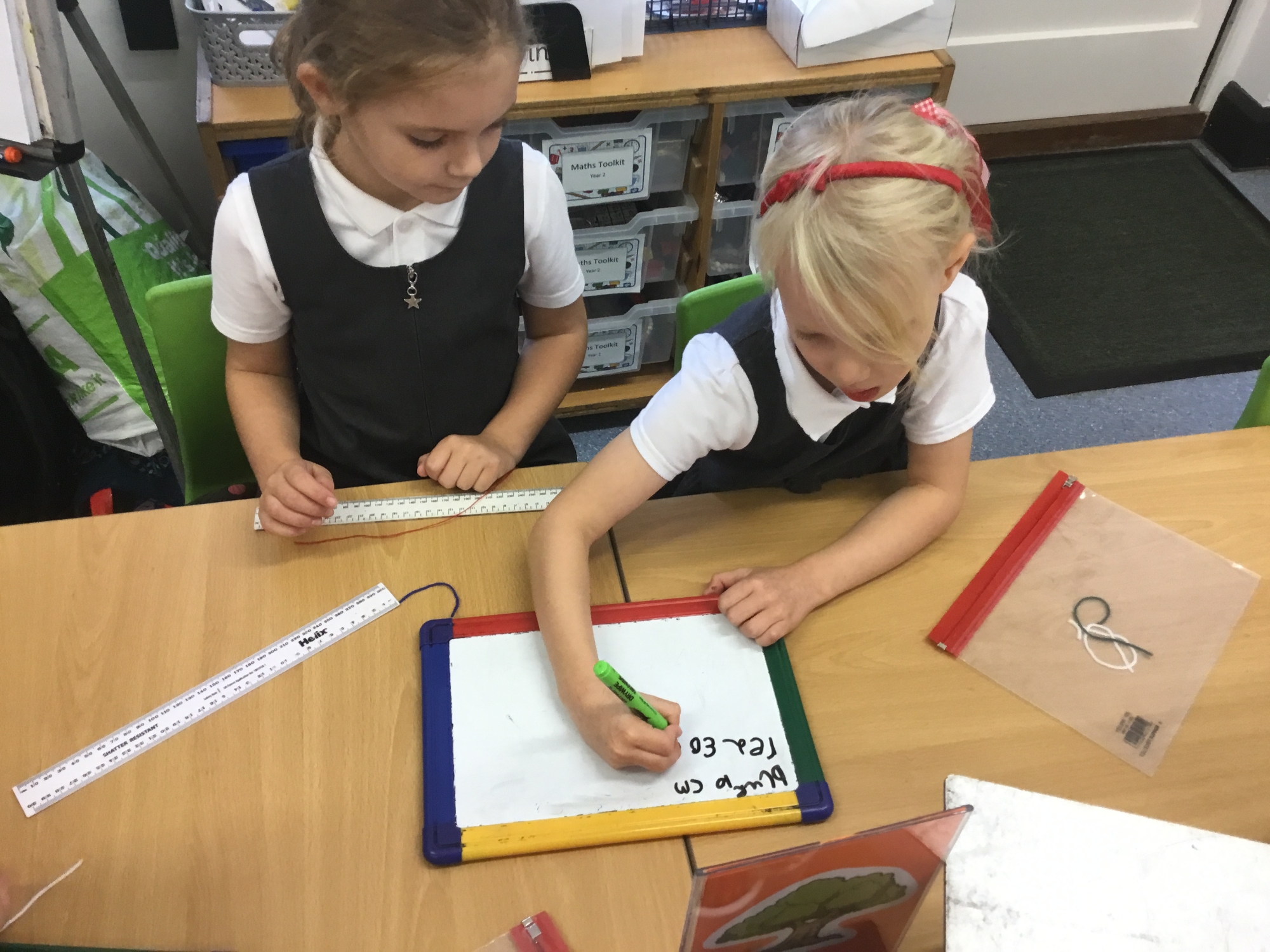 This week the children developed their knowledge of measurement by helping Miss White set up her wool shop "Wooly Whites". The children had to use their knowledge of greater than and less than symbols to order the different lengths of wool before using rulers and the metric unit of centimetres to measure each length of wool accurately.