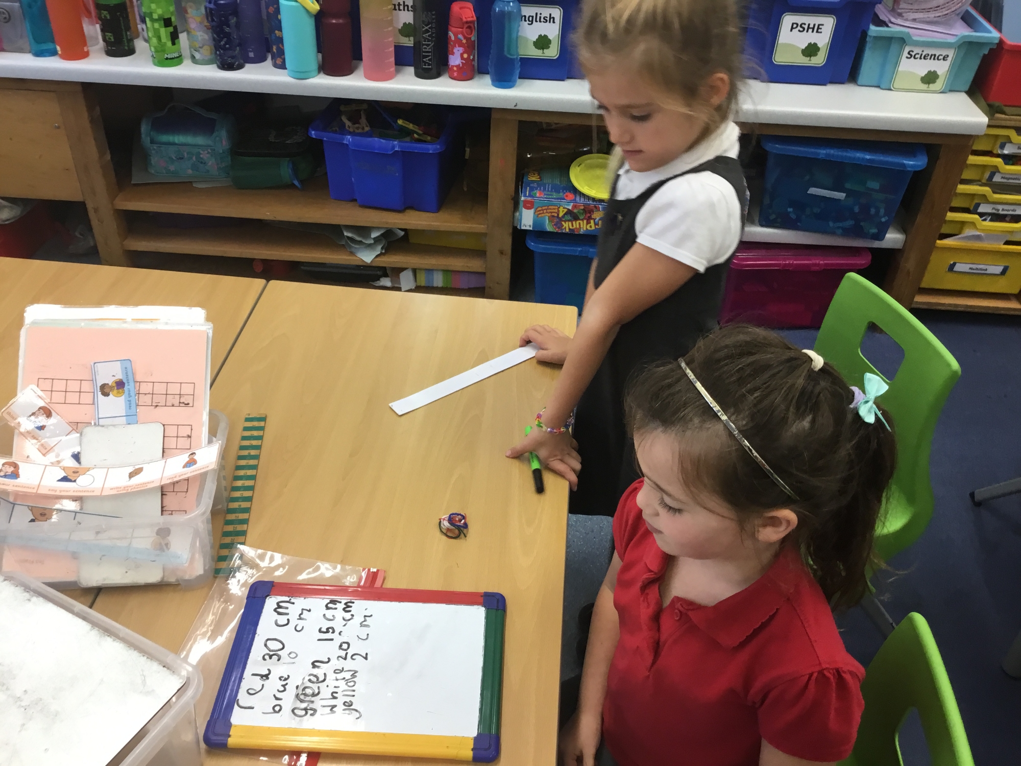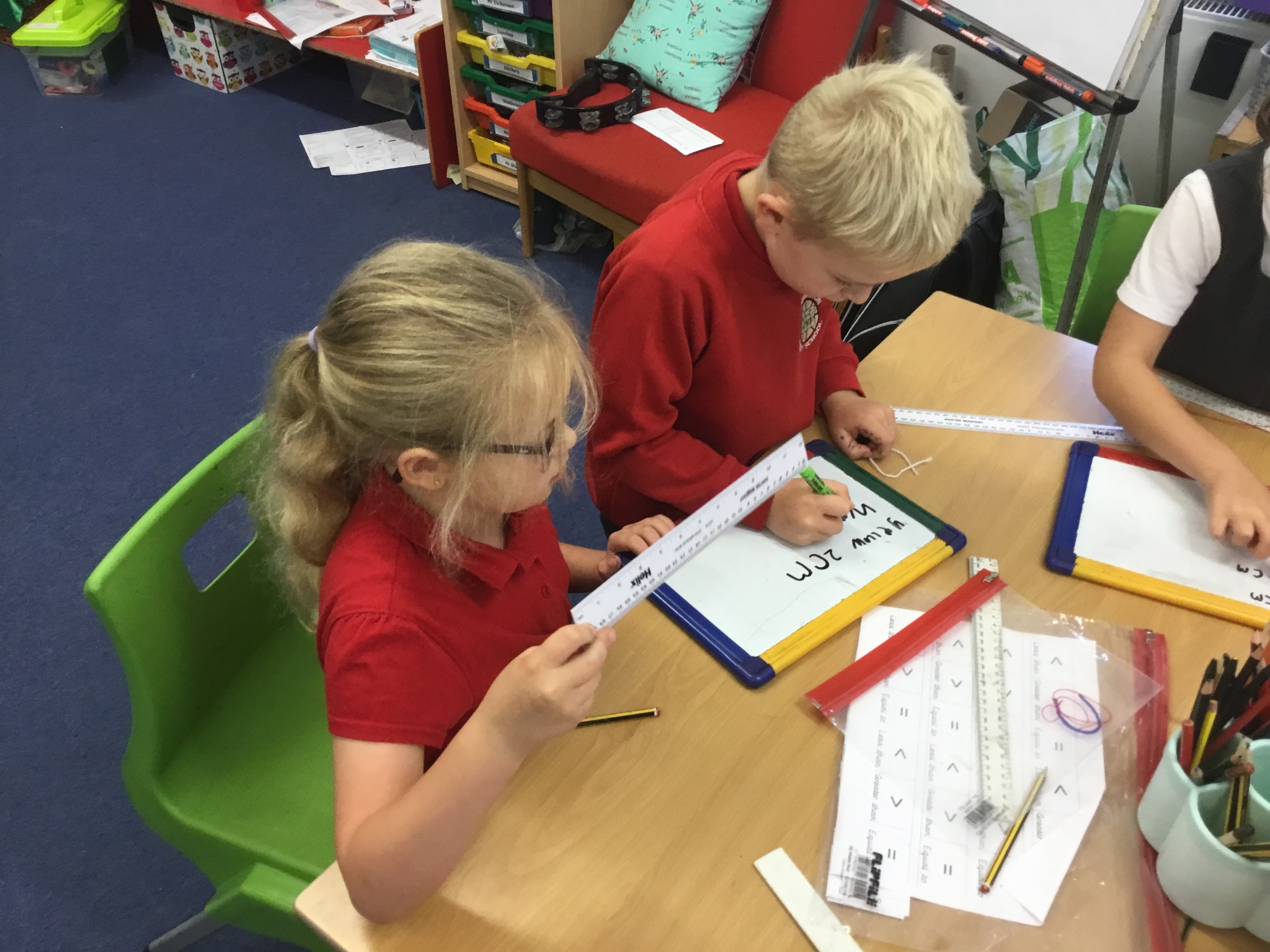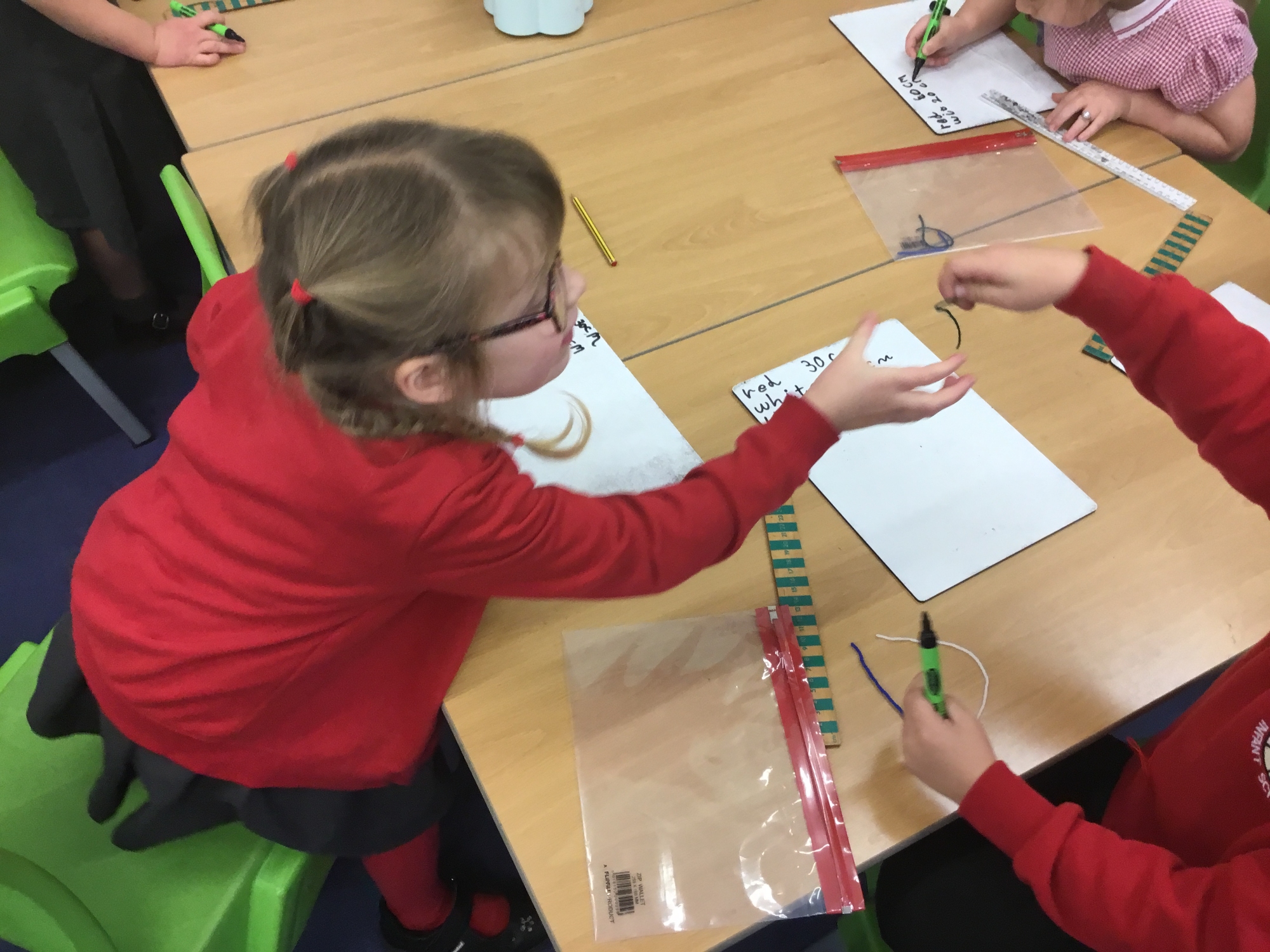 This week the children developed their knowledge of measurement by helping Miss White set up her wool shop "Wooly Whites". The children had to use their knowledge of greater than and less than symbols to order the different lengths of wool before using rulers and the metric unit of centimetres to measure each length of wool accurately.