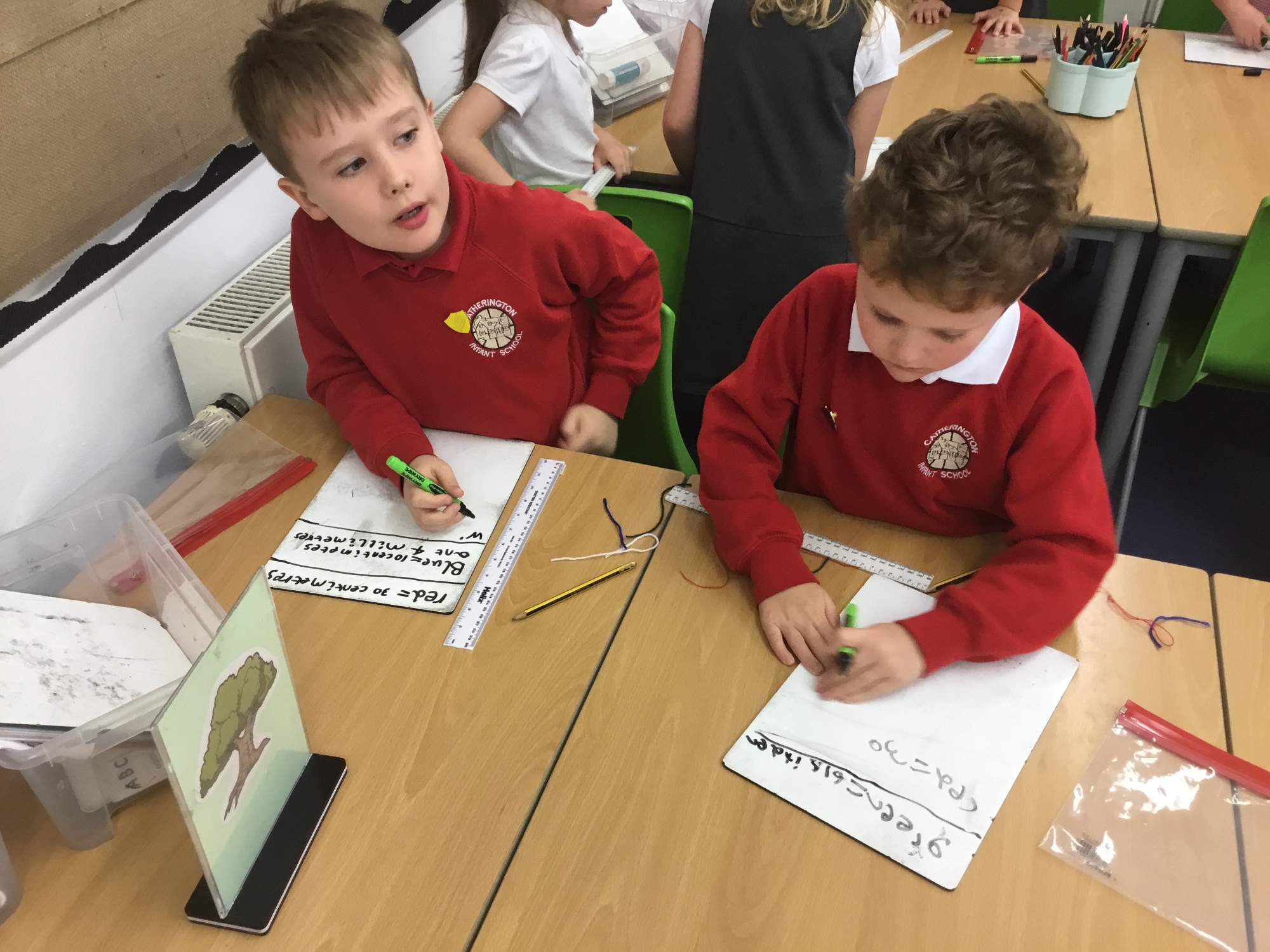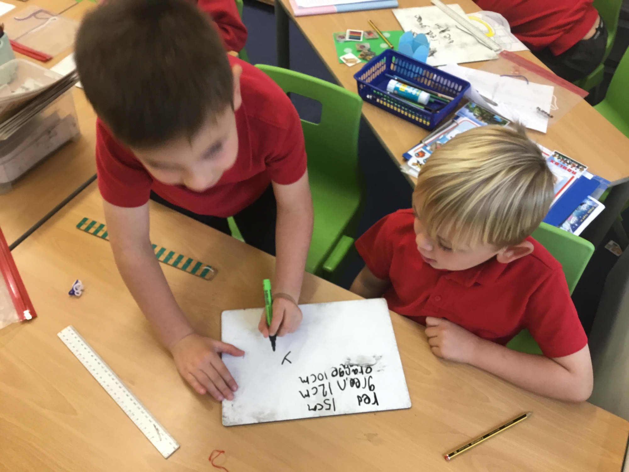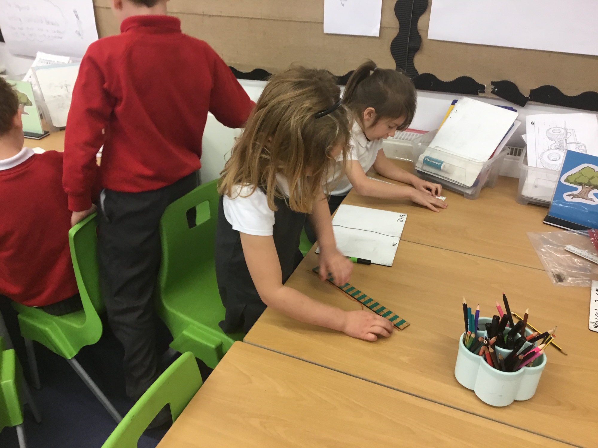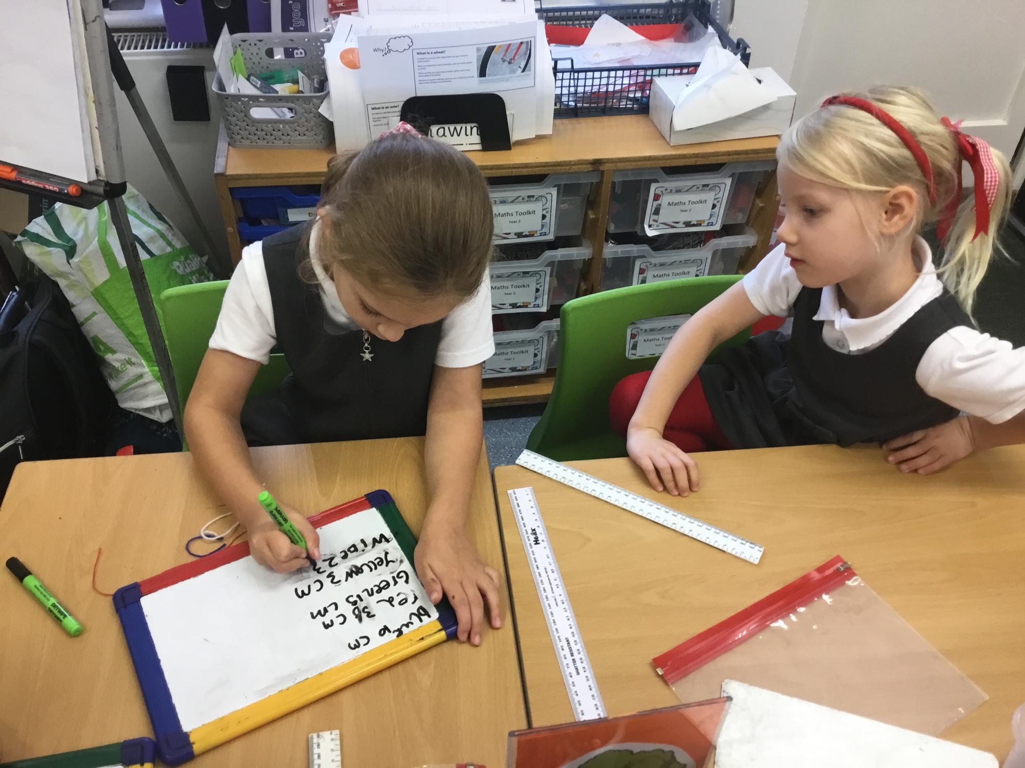This week the children developed their knowledge of measurement by helping Miss White set up her wool shop "Wooly Whites". The children had to use their knowledge of greater than and less than symbols to order the different lengths of wool before using rulers and the metric unit of centimetres to measure each length of wool accurately.