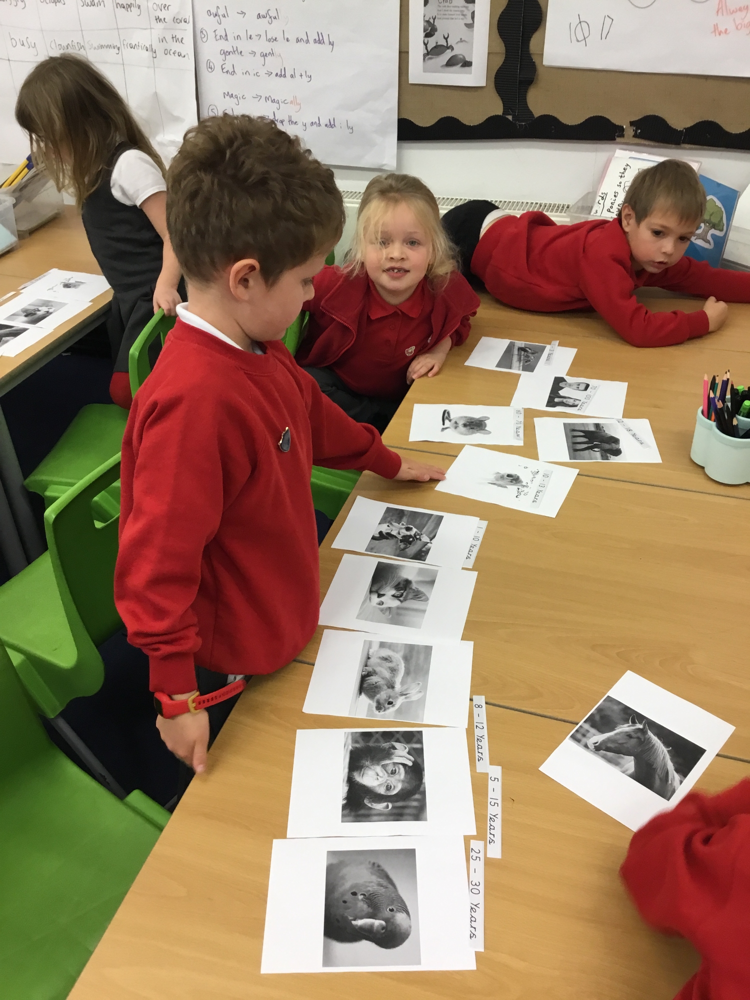 This was the question the children investigated this week. We look at a timeline and plotted where some of our pets had lived upto before comparing and sorting different animals according to how long we thought their lifespans were.