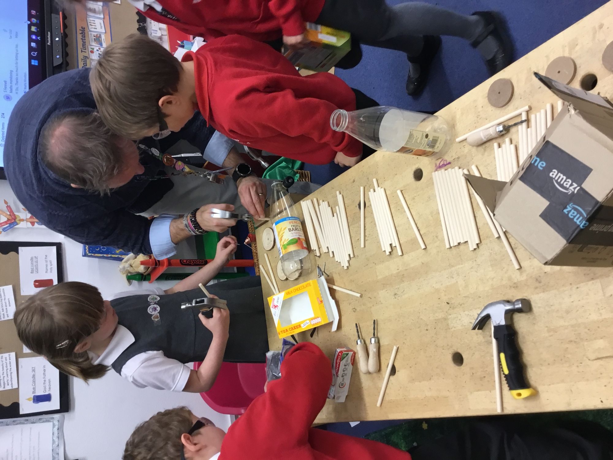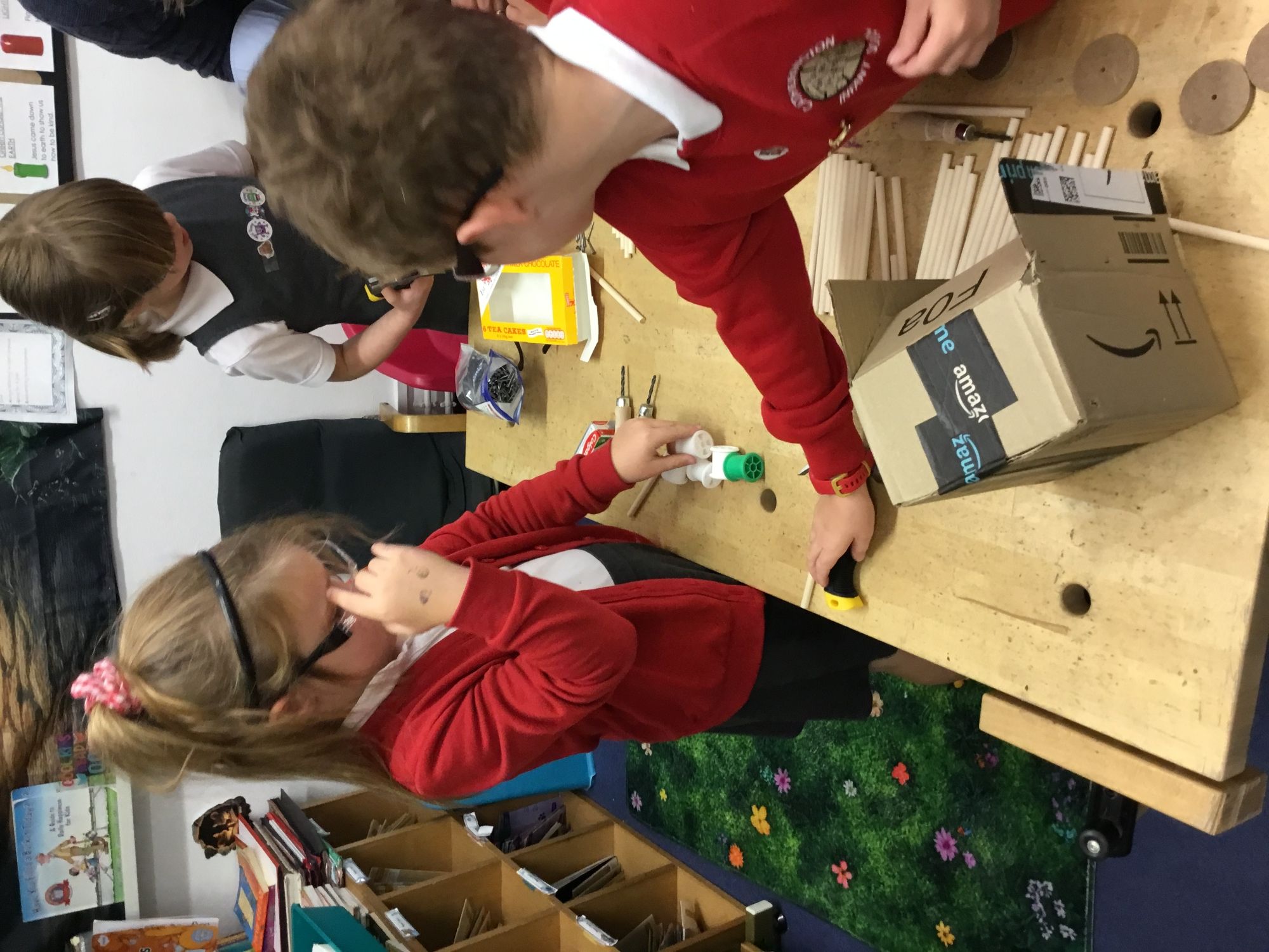 This week we put our knowledge of wheels and axles into practise by using our designs to actually make our carriers.