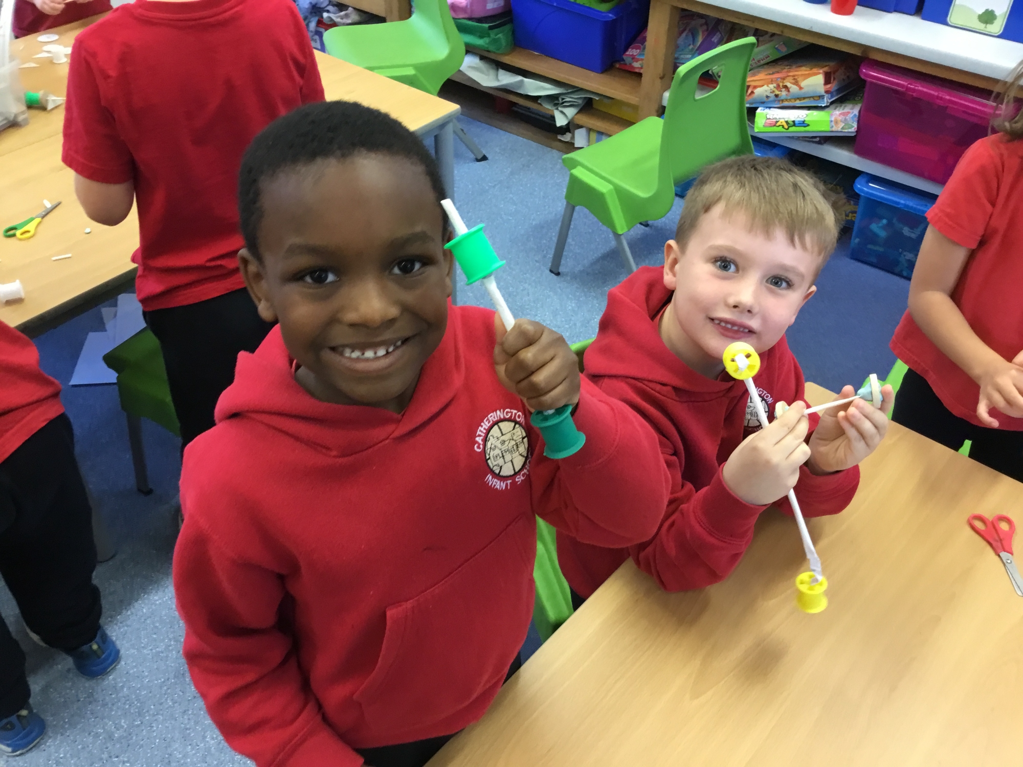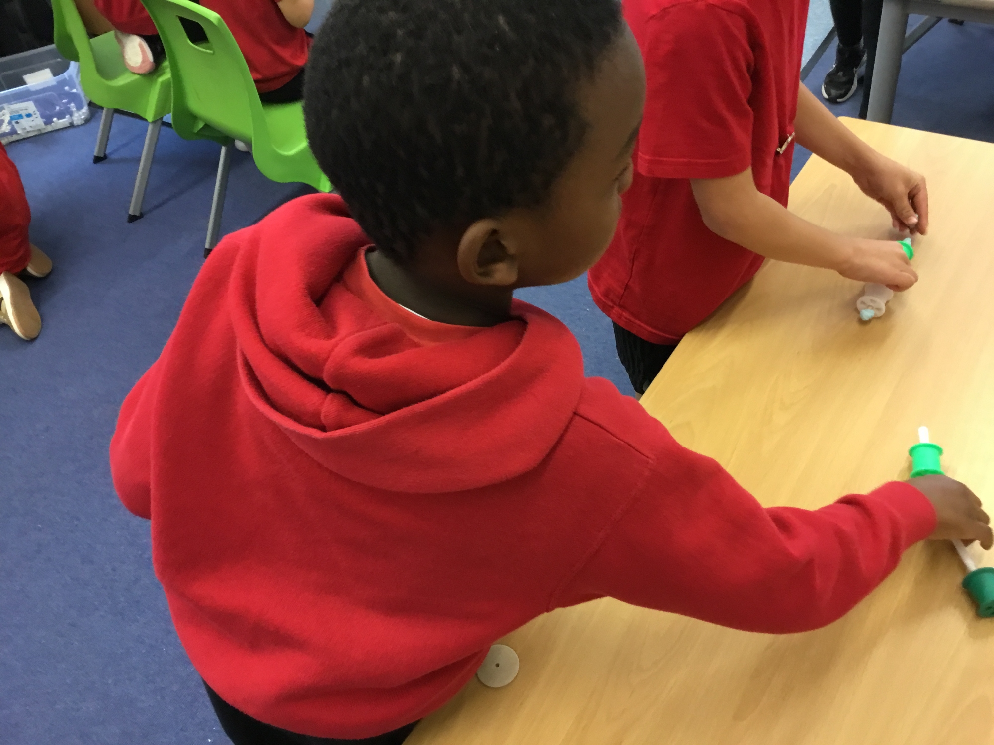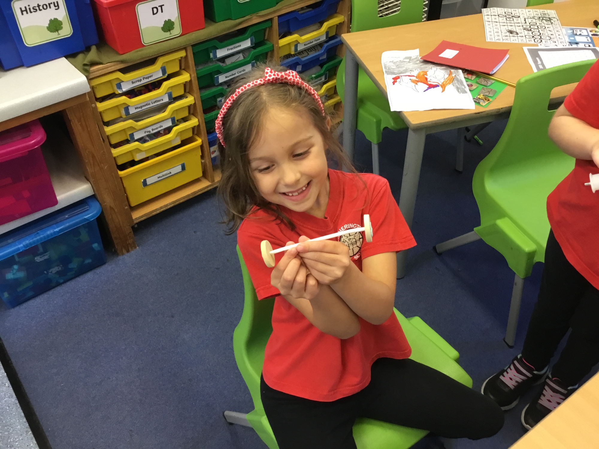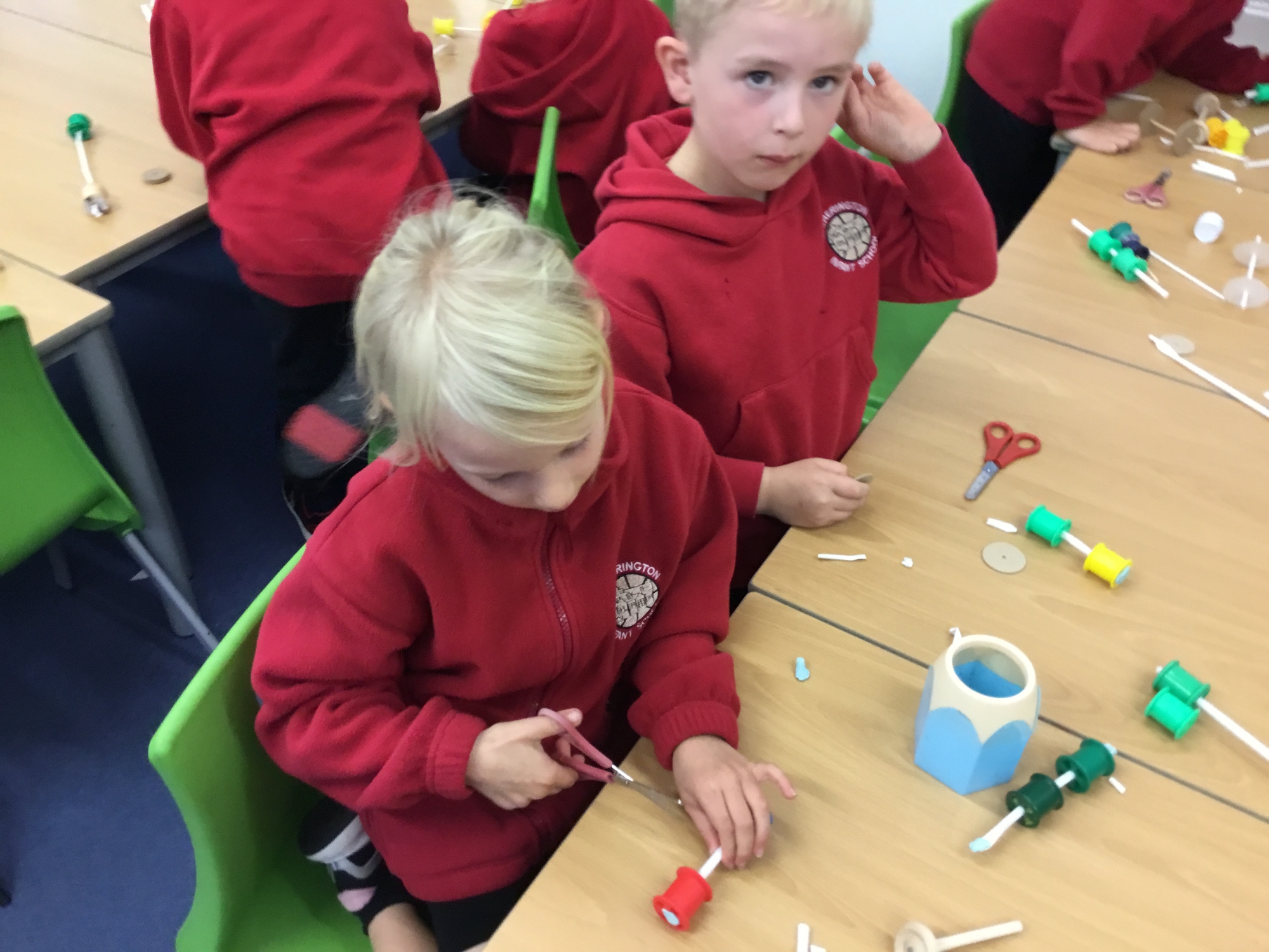 This week the children recapped their woodwork skills of how to use a vice to hold a piece of wood and then how to use a hammer and nails safely to help them make wheels and axles. We explored which materials and joining techniques we could use to make fixed and free moving wheels and axles. We experimented to see which was the best wheel type and axle to meet the criteria of transporting a pencil pot.
