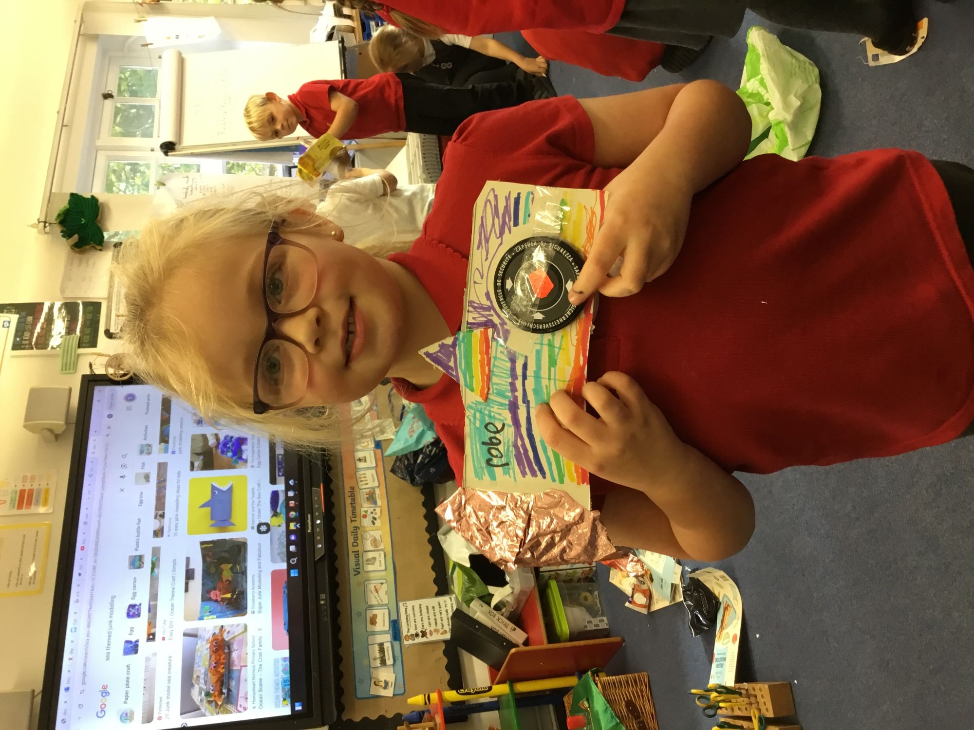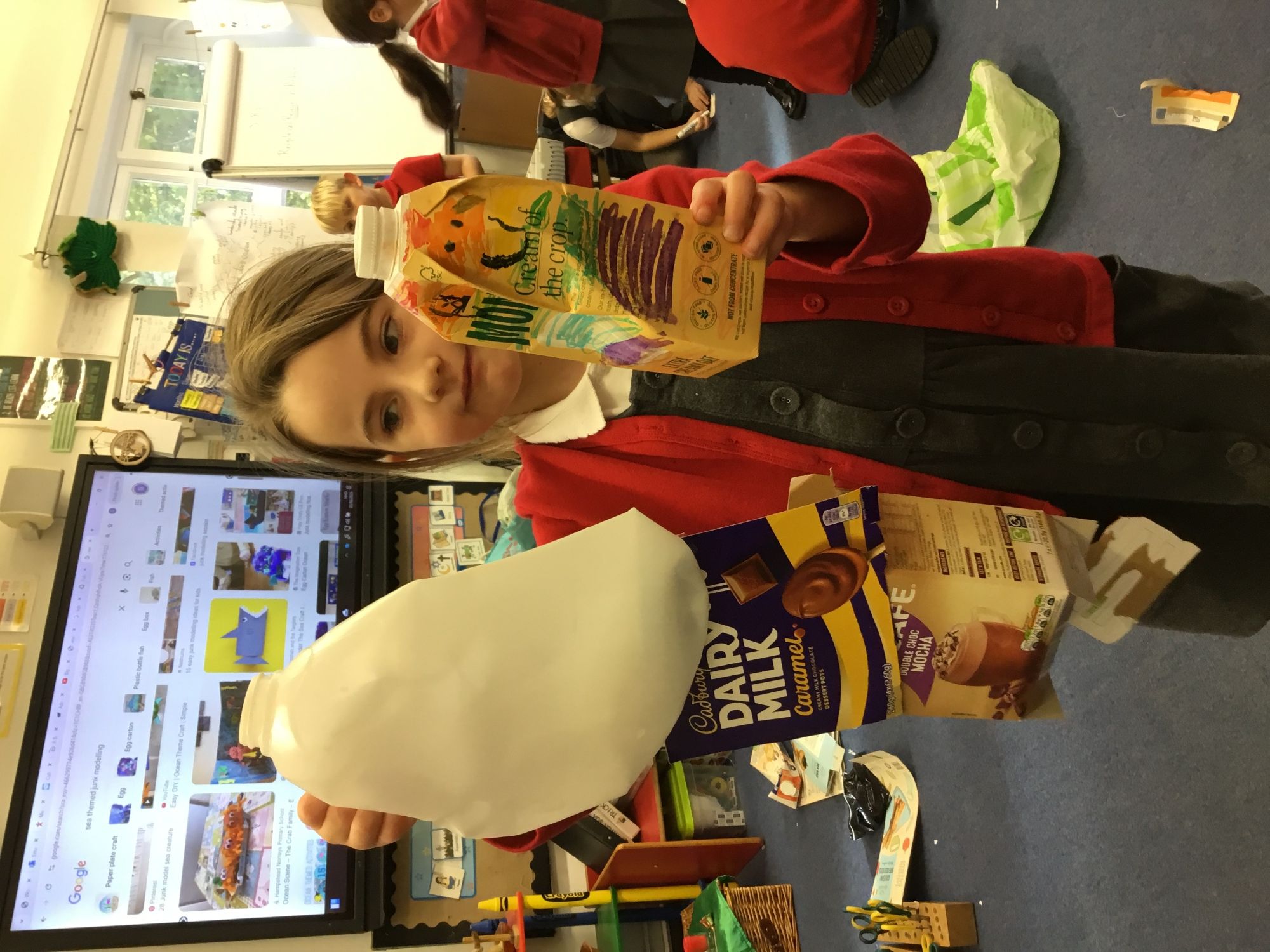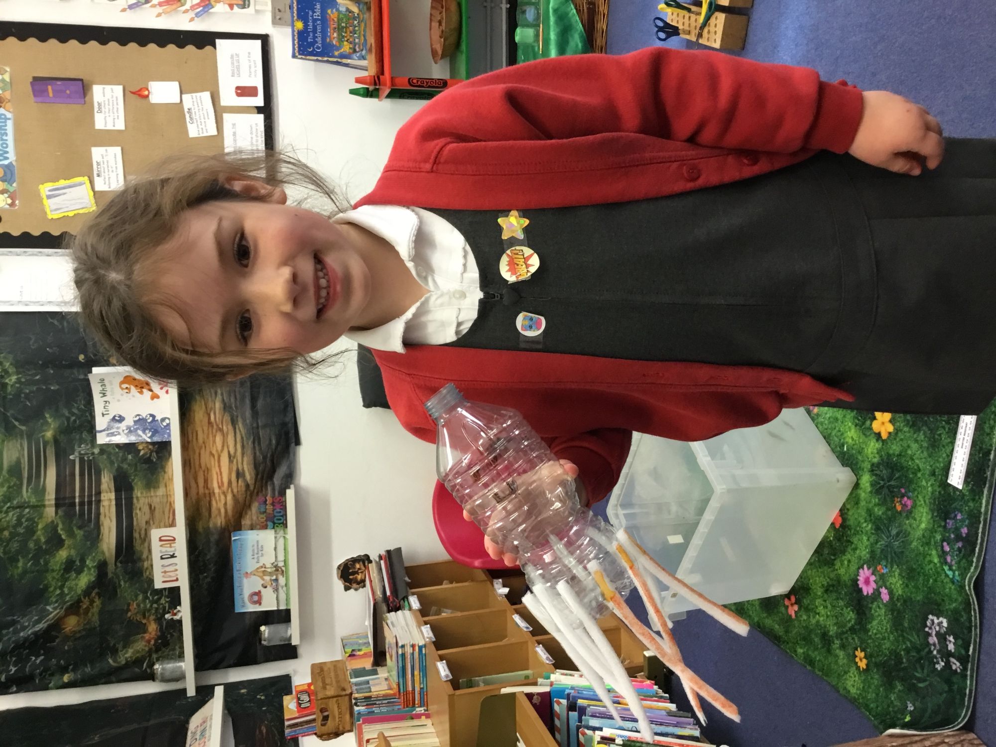 This week was our themed week on the impact of plastic pollution on our environment and world. The children did research and then created posters to promote stopping the plastic pollution. They then resused recycable material to produce sea creature sculptures.