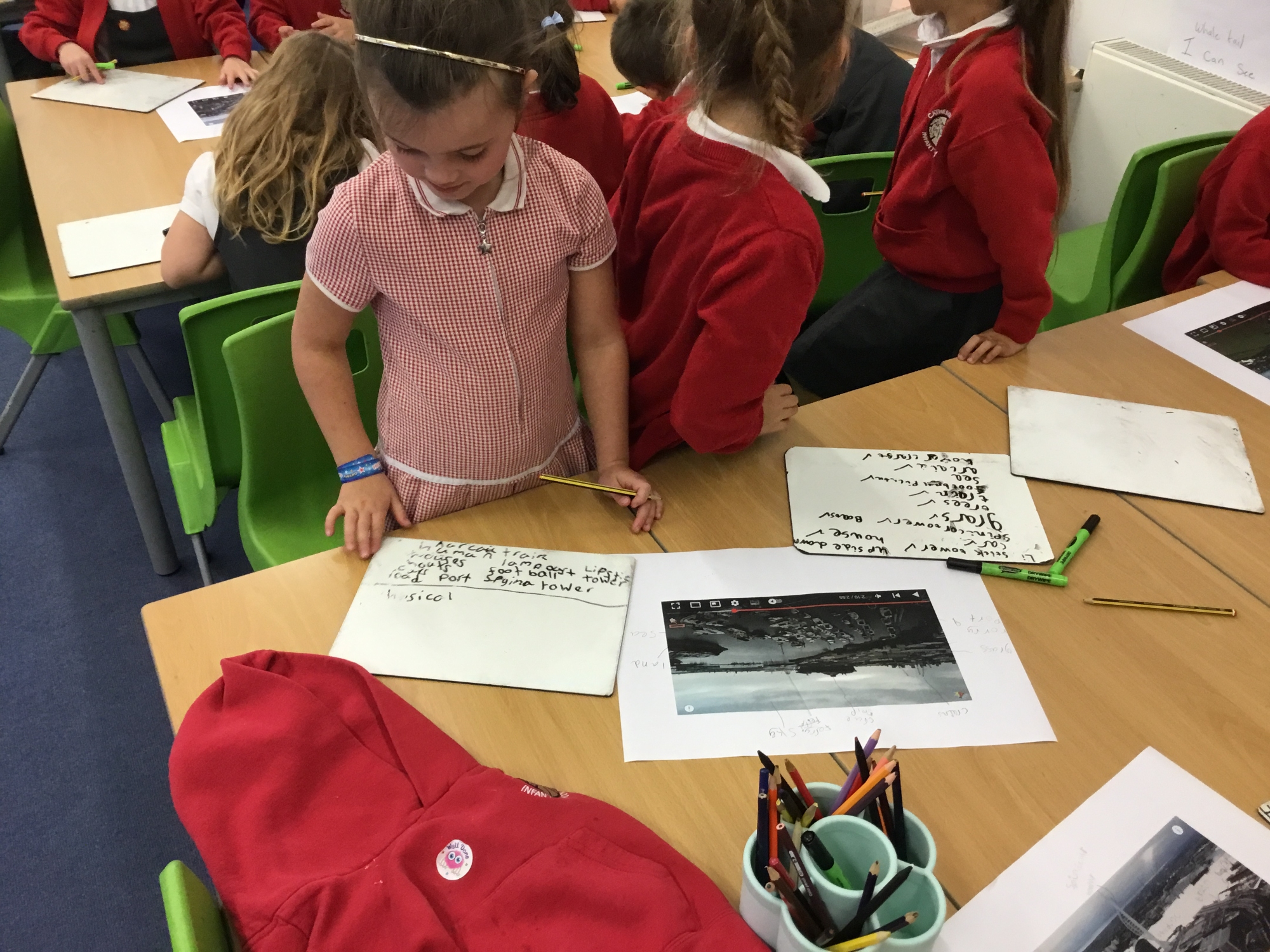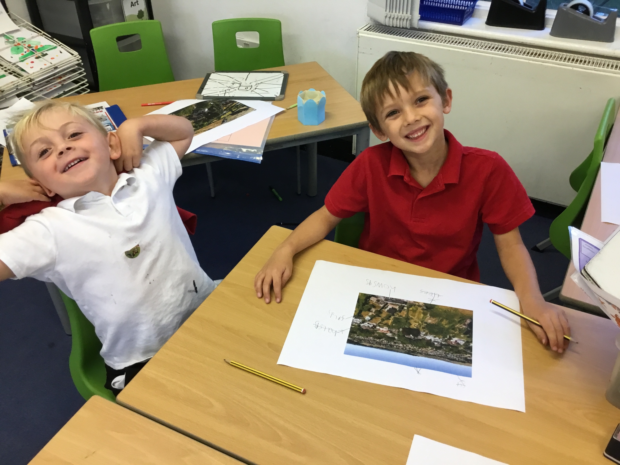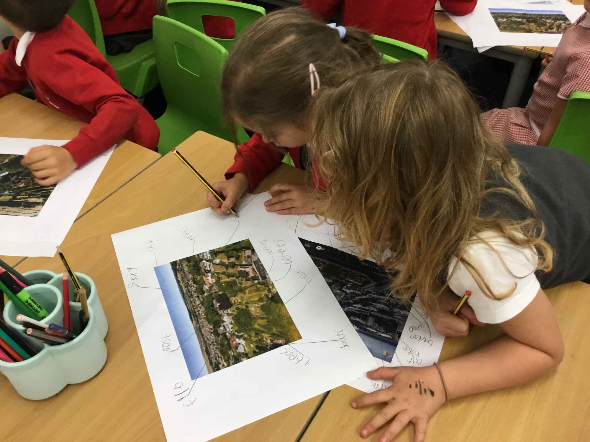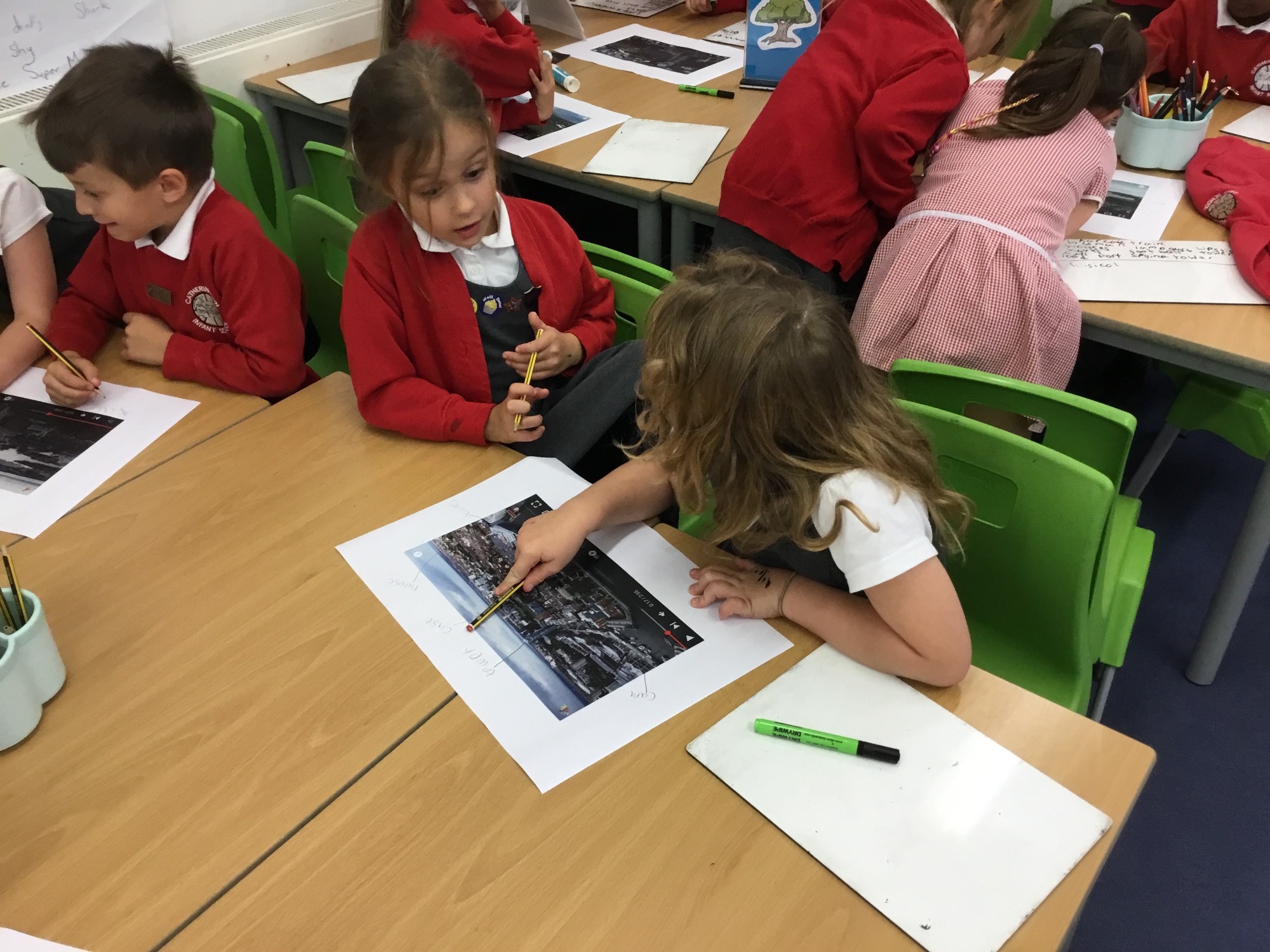 To help compare our village of Catherington and the city of Portsmouth the children watched drone footage of Portsmouth and compared aerial photos of Portsmouth and Catherington to identify and recognise human features of both areas.