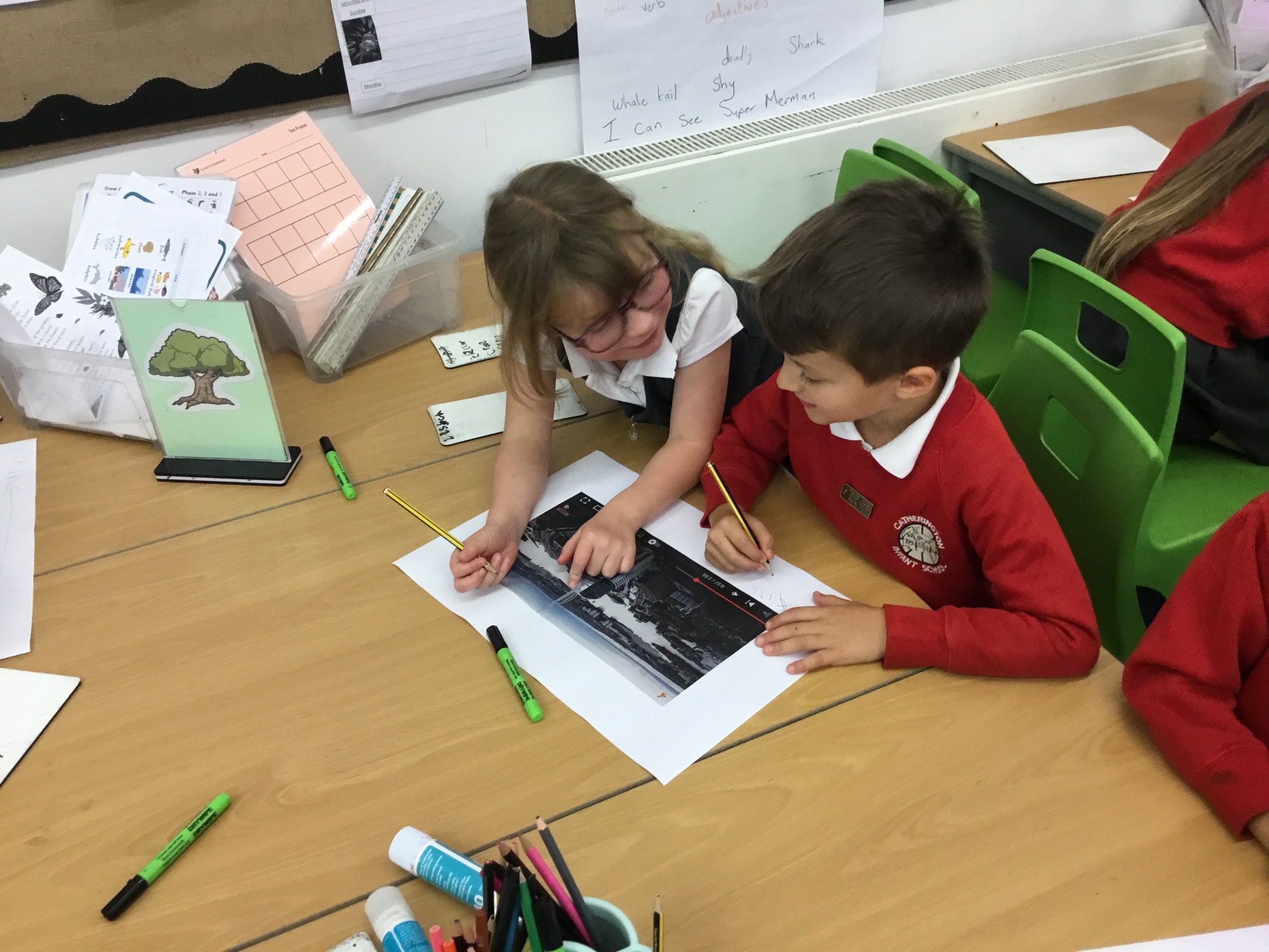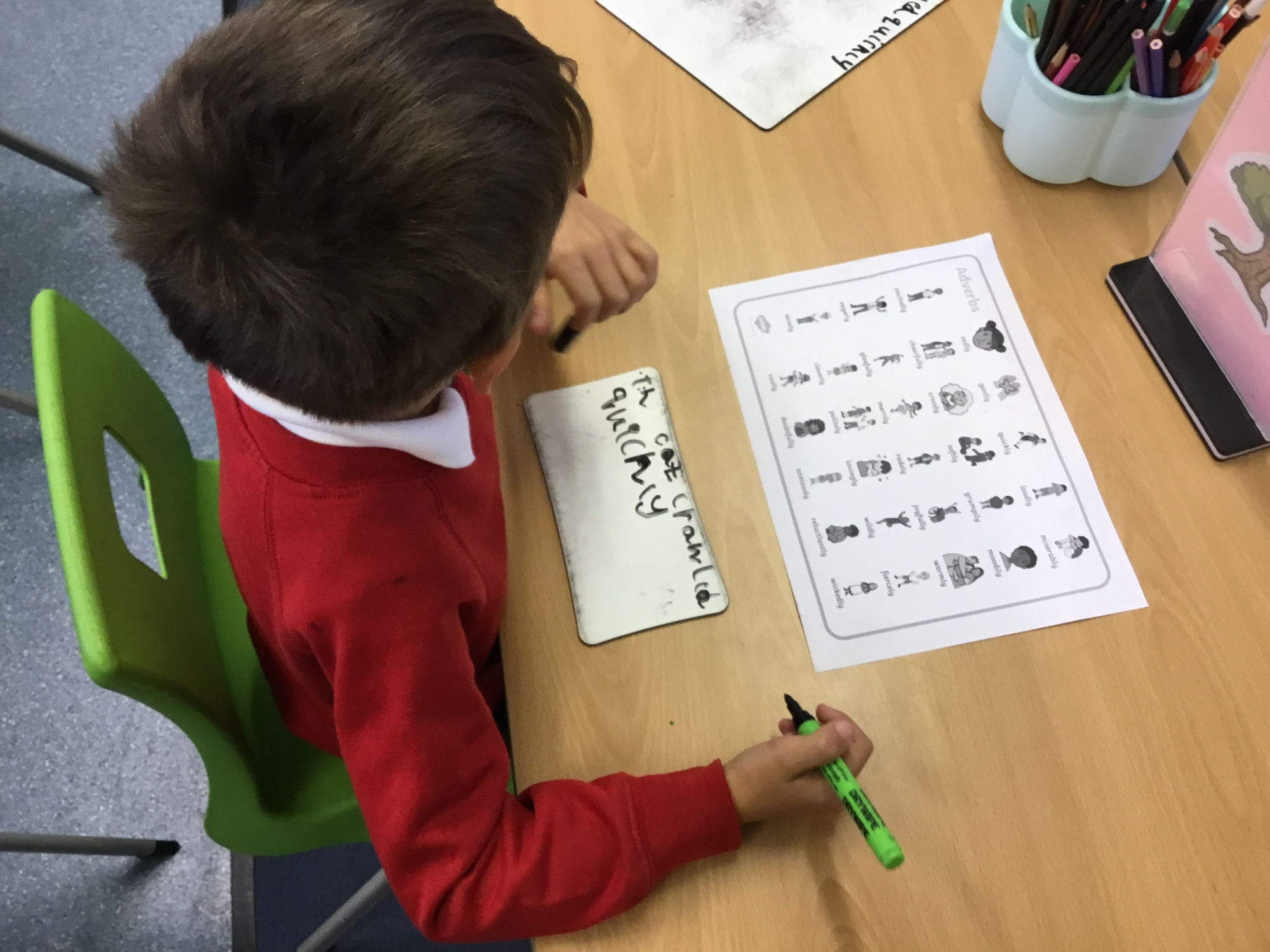 This week the children worked on creating sentences using adverbs to help them describe what their chosen sea creatures were doing. We explored the different spelling rules we have to use when we want to change an adjective into an adverb by adding the suffix "ly".