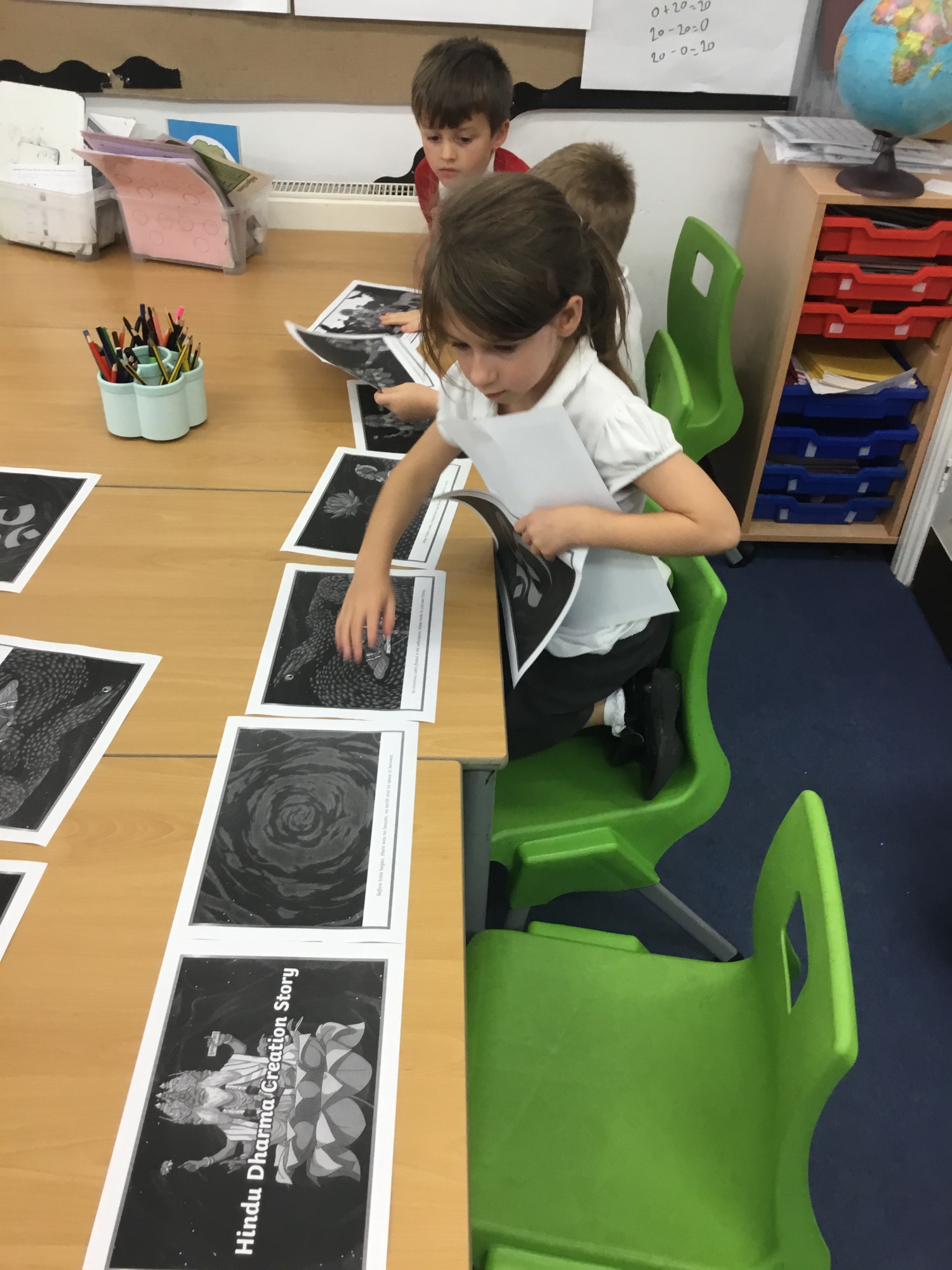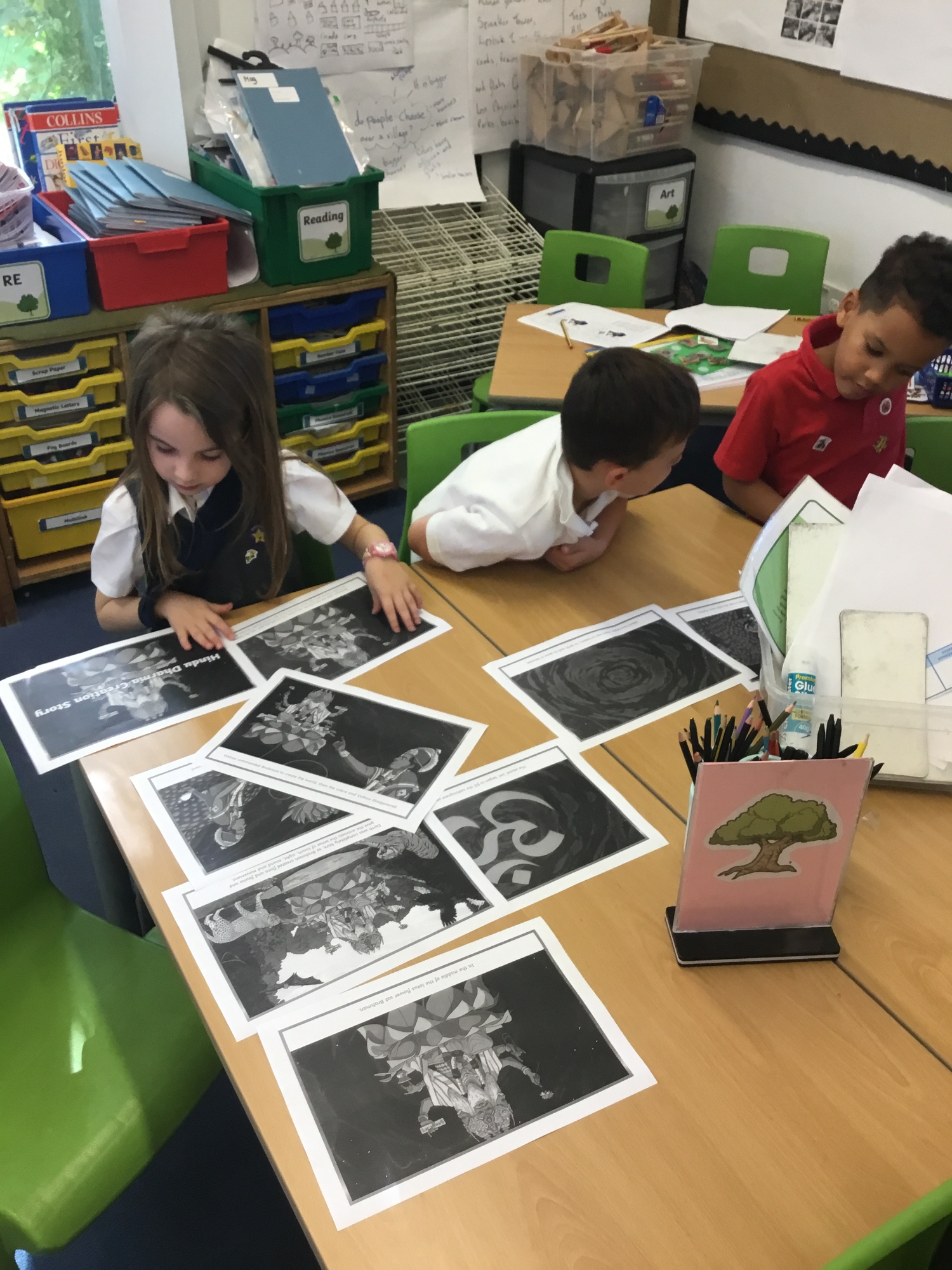 This week the children developed their understanding of "creation" by learning about the Hindu creation story. The children watched the story before taking on the challenge of sequencing the pictures in the right order. The children then chose parts of the story they liked and thought were importantant, recreated the picture and shared why they had chosen their selected pictures.