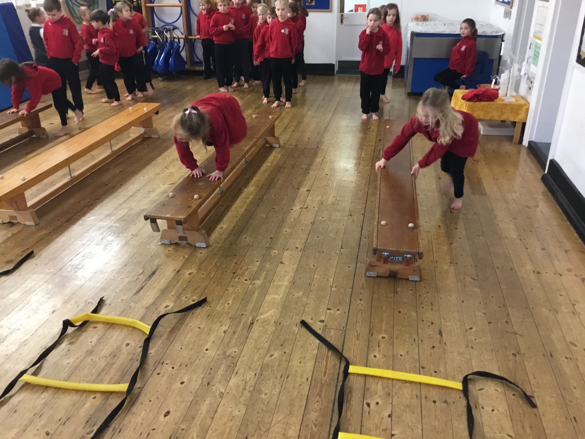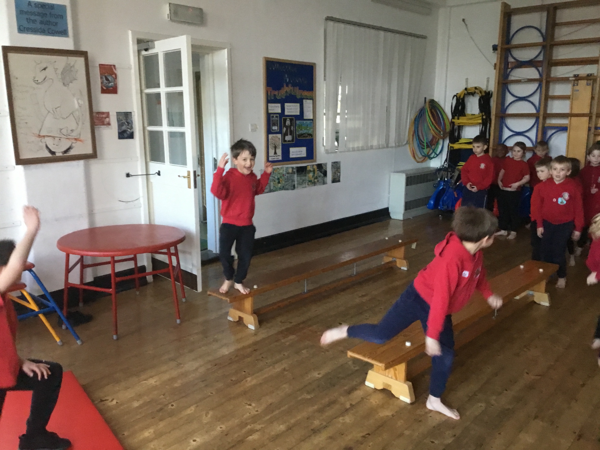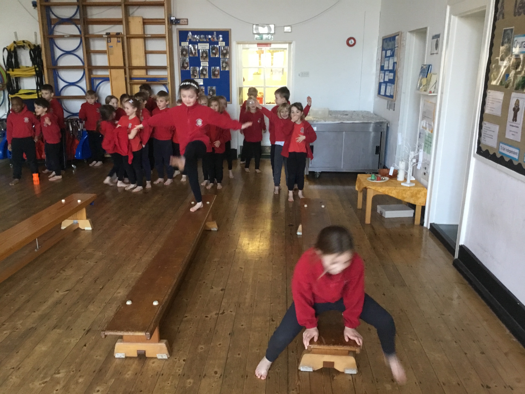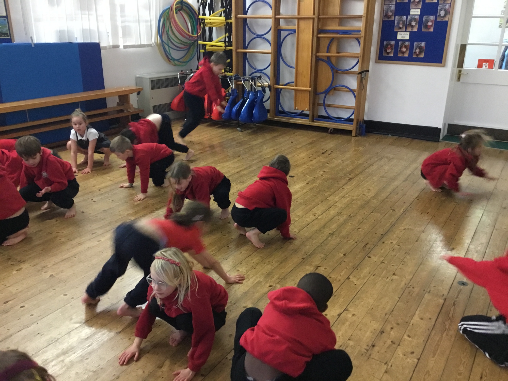 This week, the children developed their knowledge of pivoting and the use of the tuck position to enhance their travelling pathways. The children were able to incorporate zig-zagging movement through the use of pivoting. We then looked at how the tuck position could be used to lead into doing bunny jumps and horse kicks. The children then incorporated these movements into their pathways.
