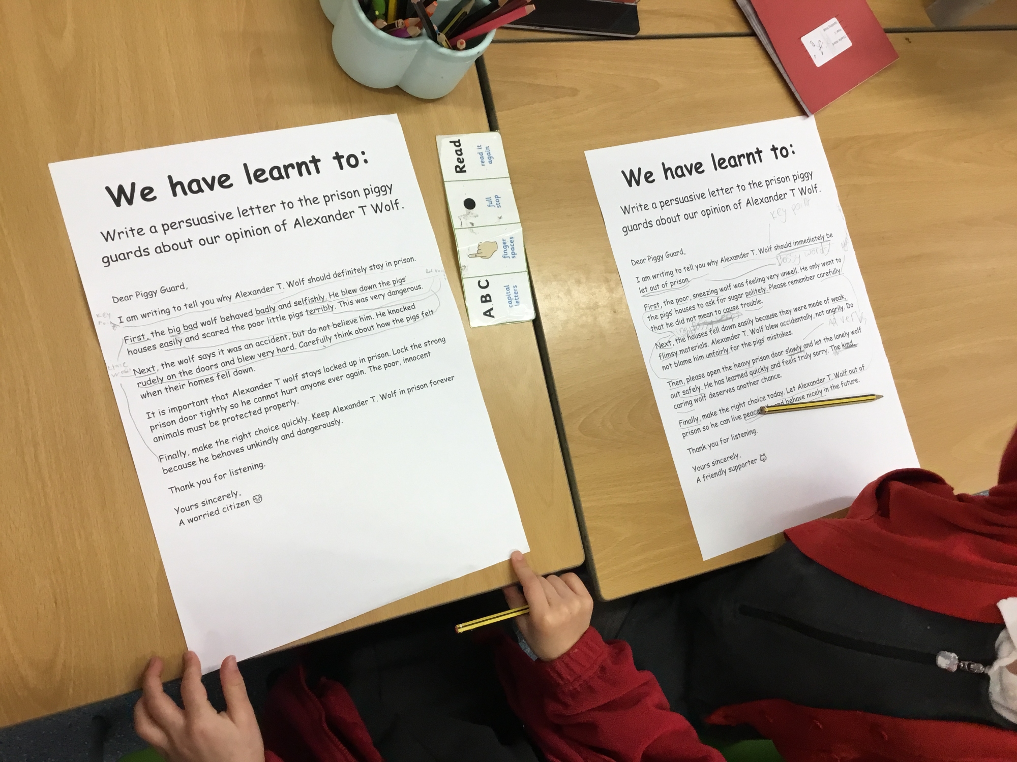 This week the children have been working on planning, editing and publishing their persuasive letters to the Pig Prison where Alexander T Wolf is being held. The children have really captured the language needed to be persuasive and will be learning how to present their cases at the start of next week.