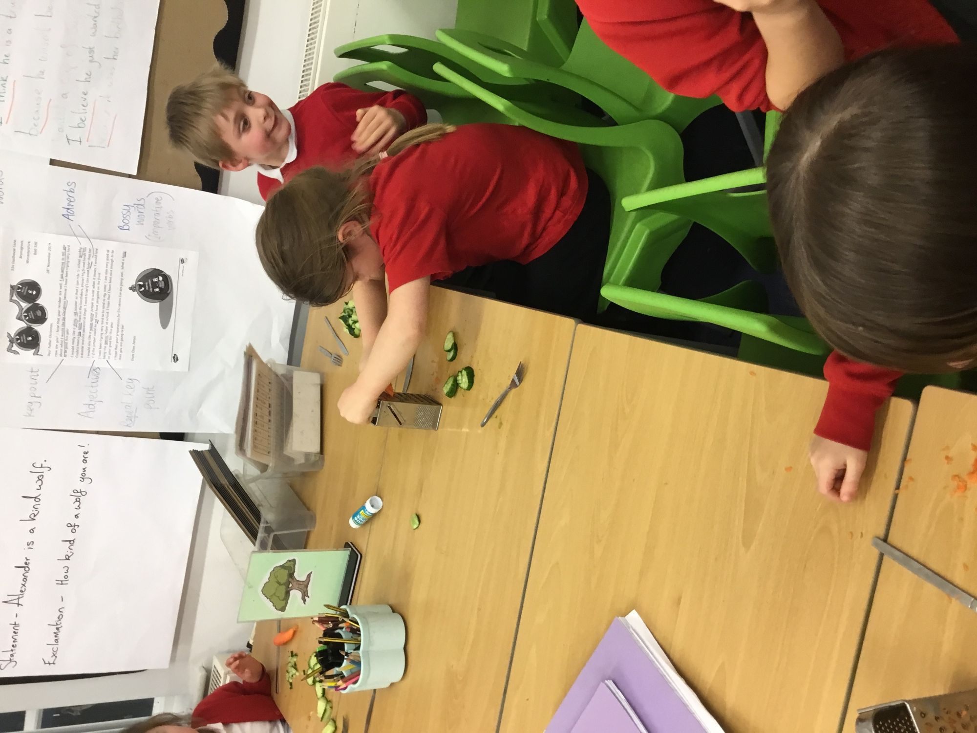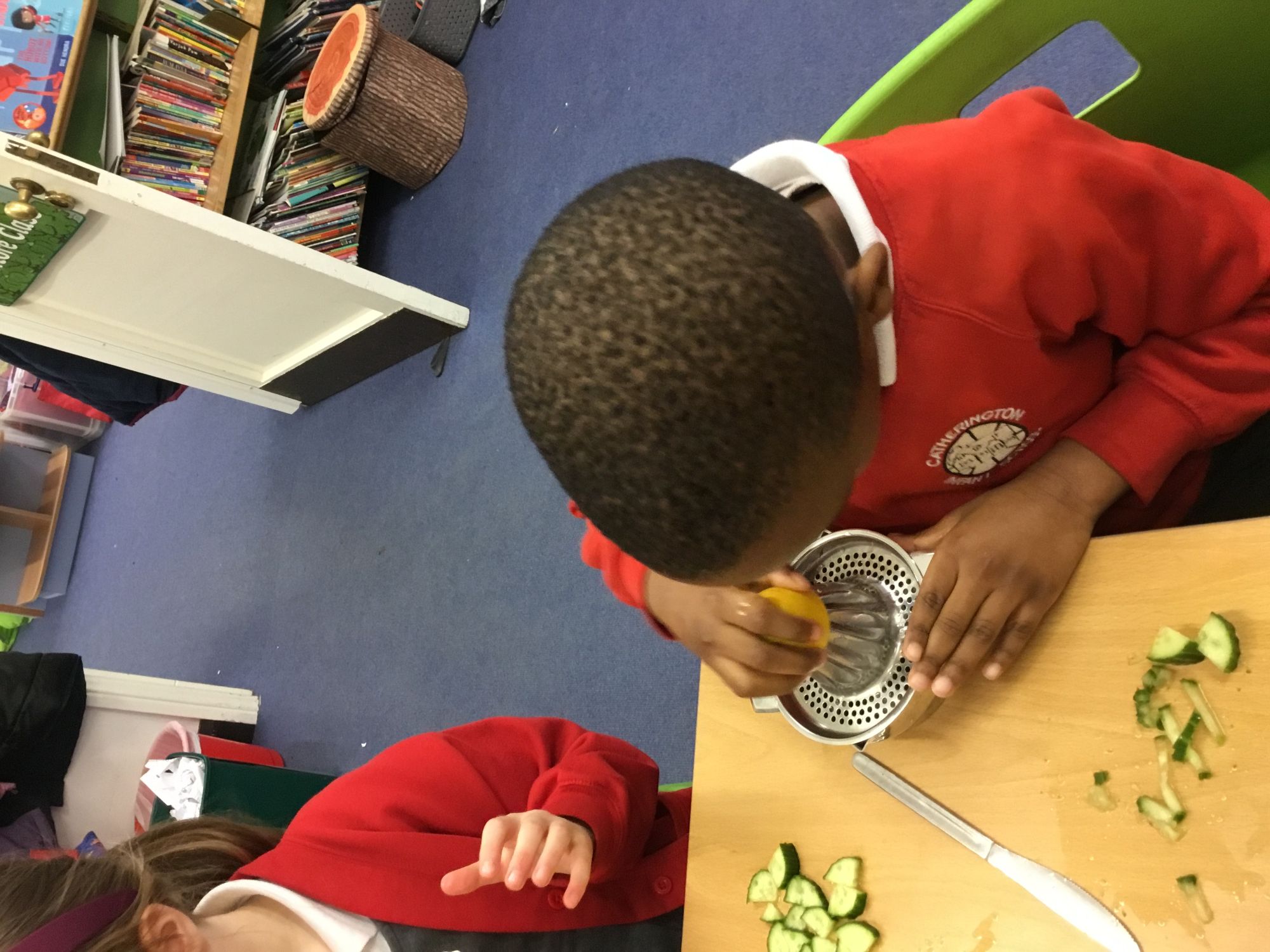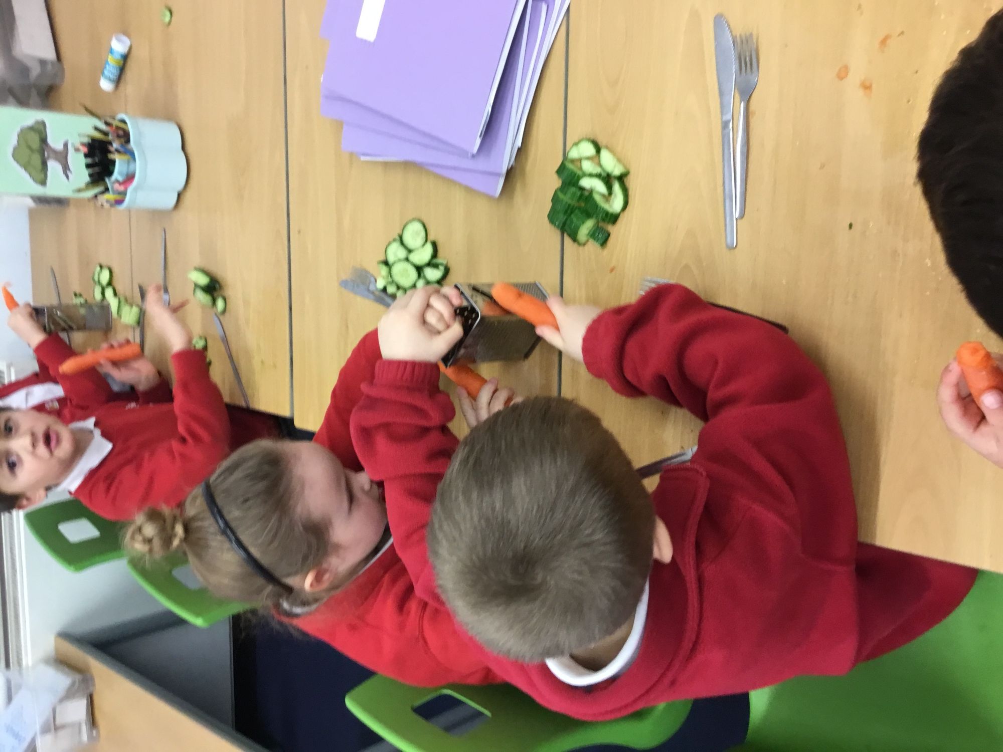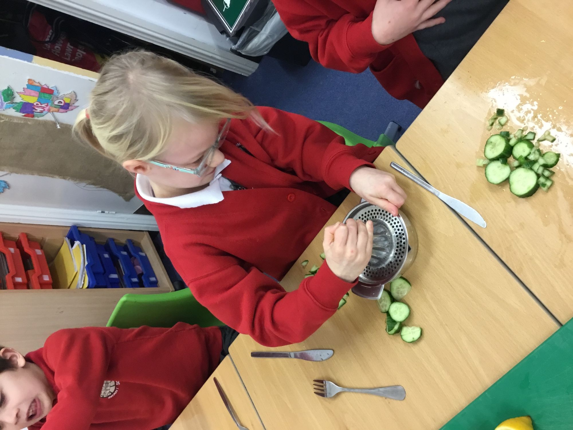 This week, the children developed their knowledge and skills by processing food. We recapped how to cut safely using the bridge, the claw, and the fork technique before learning how to dice, grate and juice different foods.