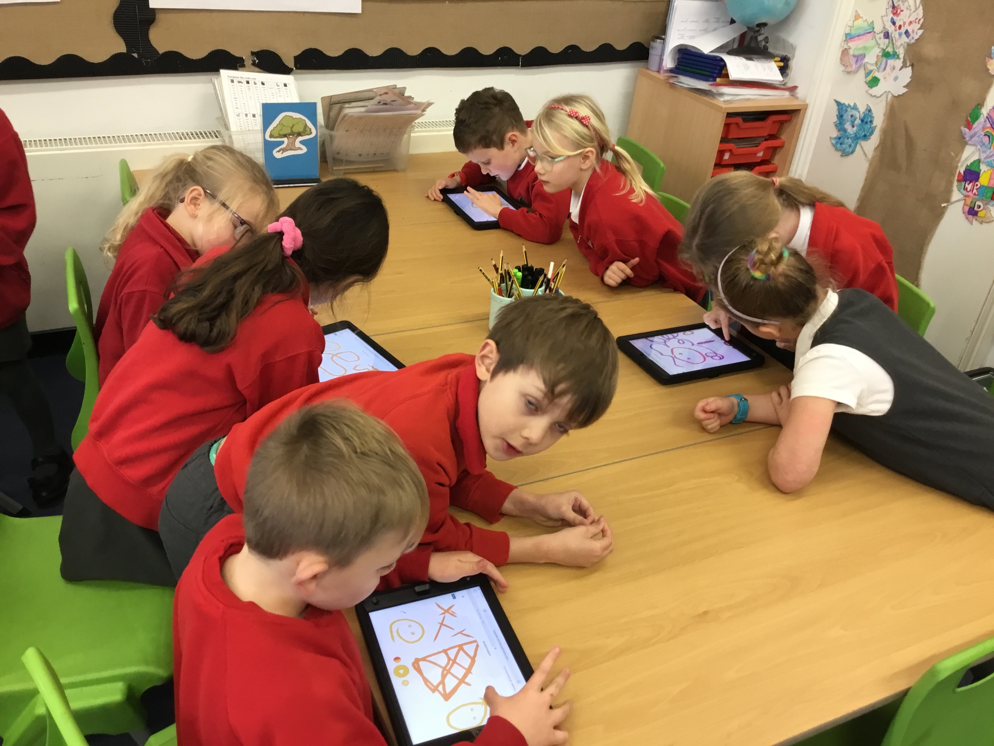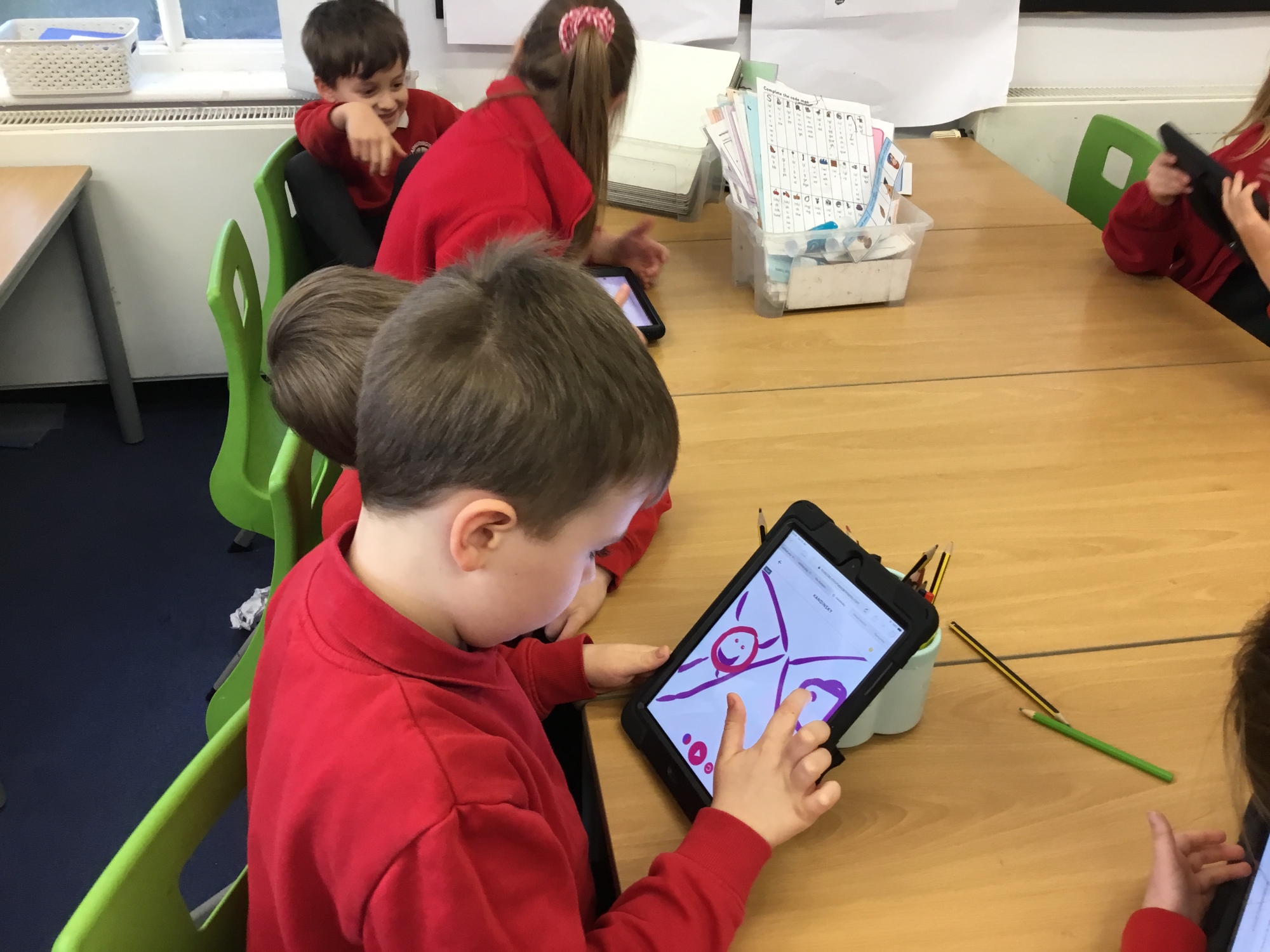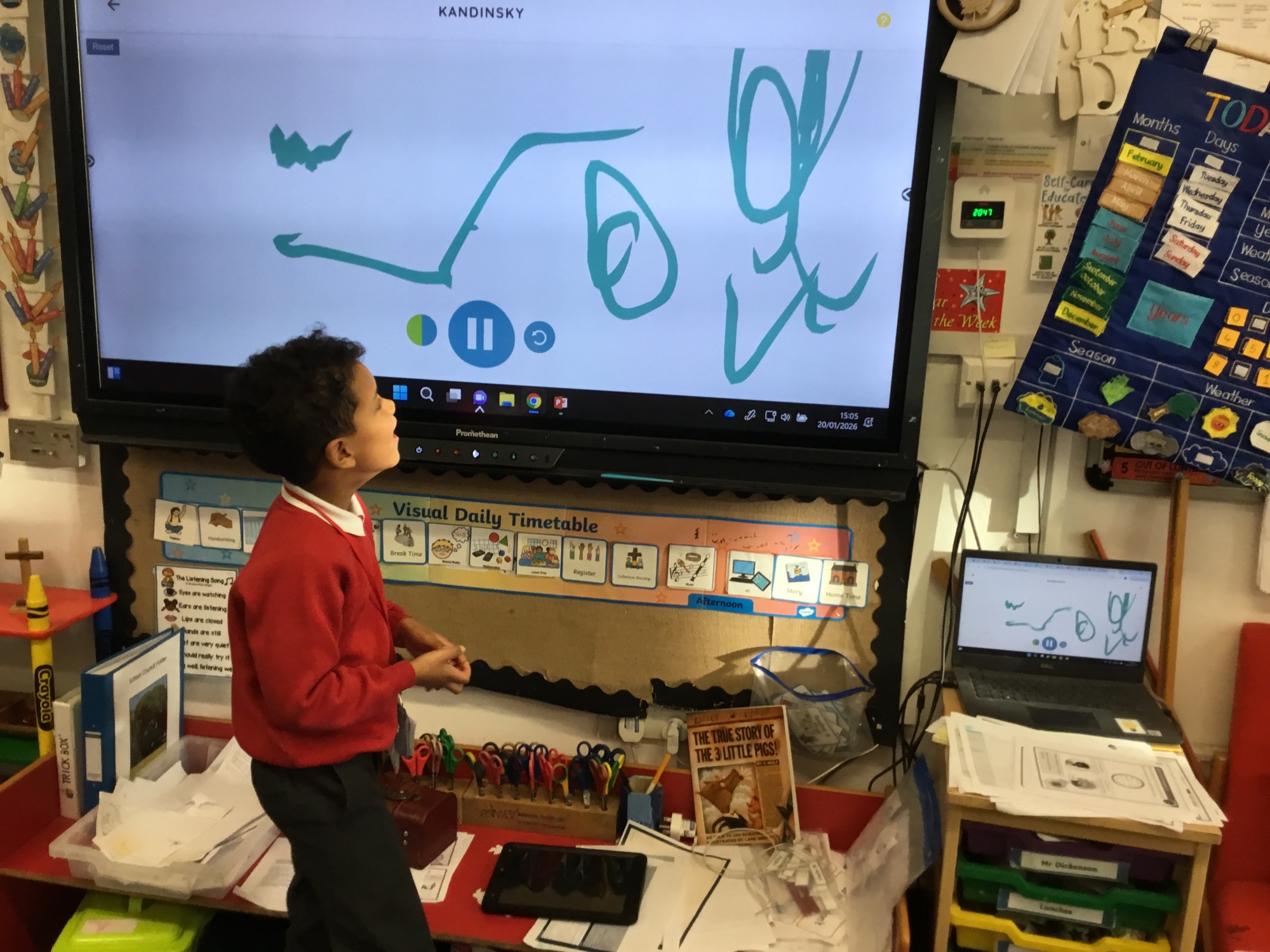 In computing this week, the children used Chrome music lab to explore how music can be used to convey emotions. The children drew their own pictures whilst listening to Gustav Holst's Neptune and then explored how placing different patterns and shapes composed different compositions.