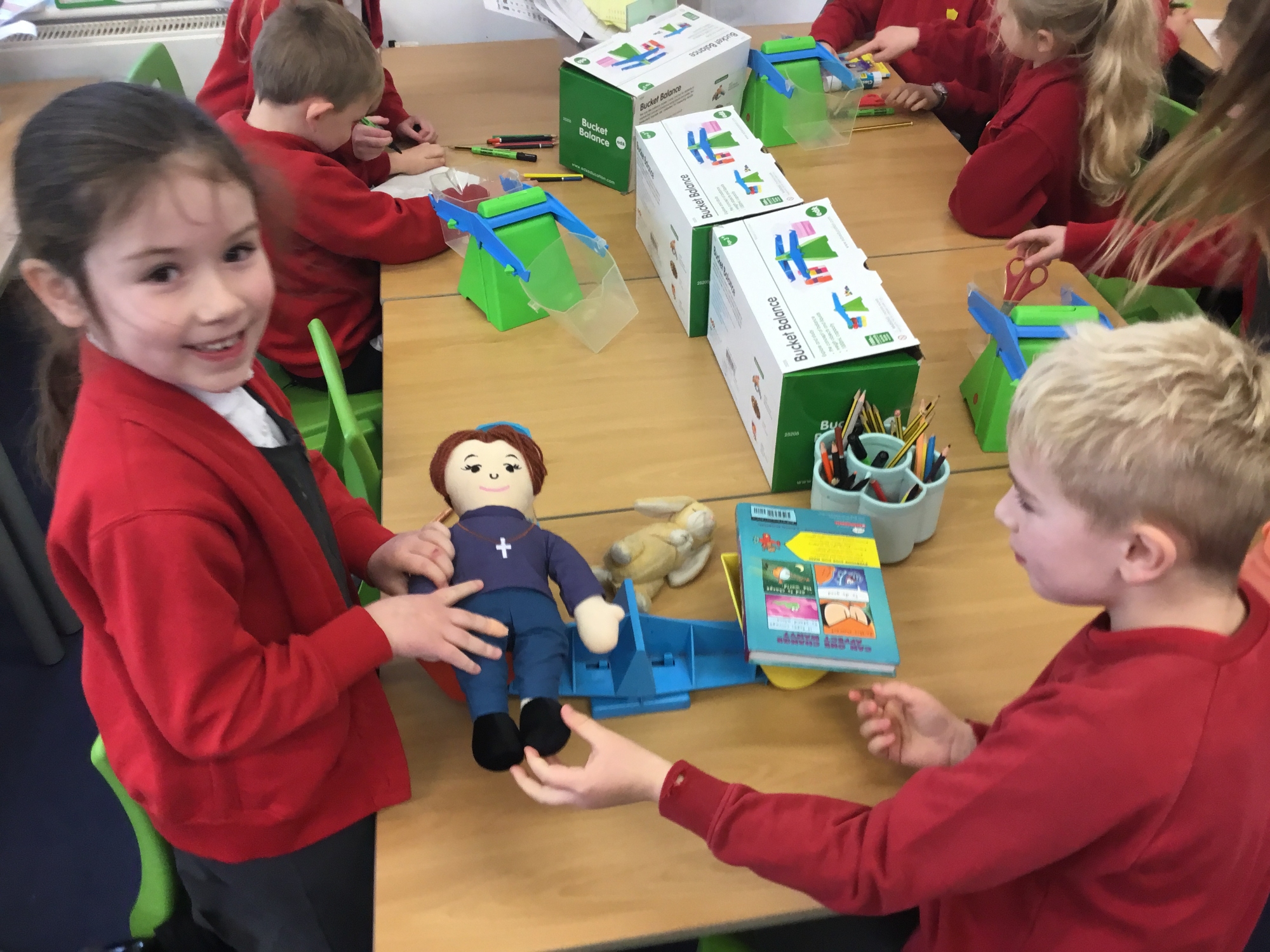This week we developed our knowledge of measurement by learning to estimate and measure mass using the standard units of grams and kilograms. The children used balancing scales to work out the weight of classroom objects. The children also learnt how to read measurement scales to work out the weight being shown of other items.
