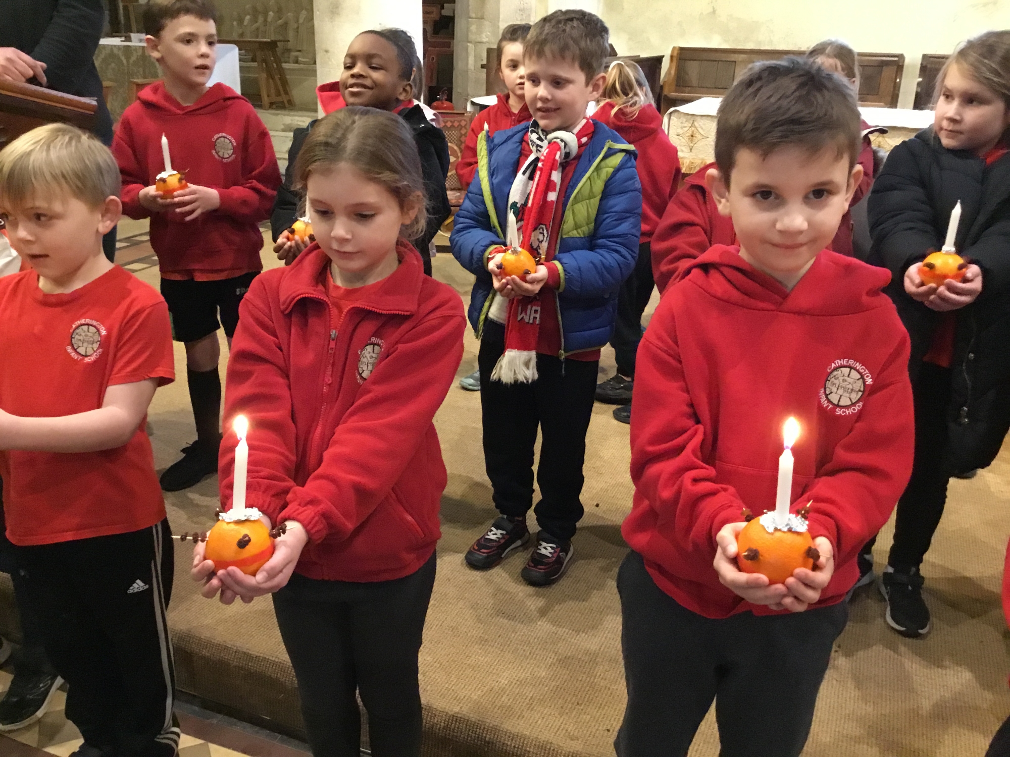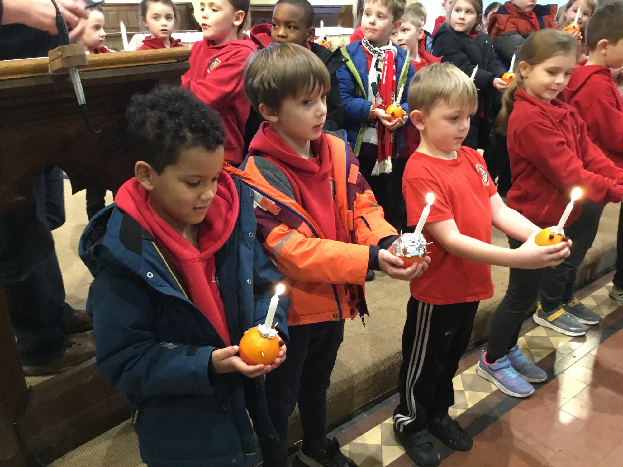 On Wednesday, the children enjoyed learning about and making their own Christingles. The children learnt what each part signified as they made them. We then took them to the church, where the children stood at the front and lit their Christingles.
